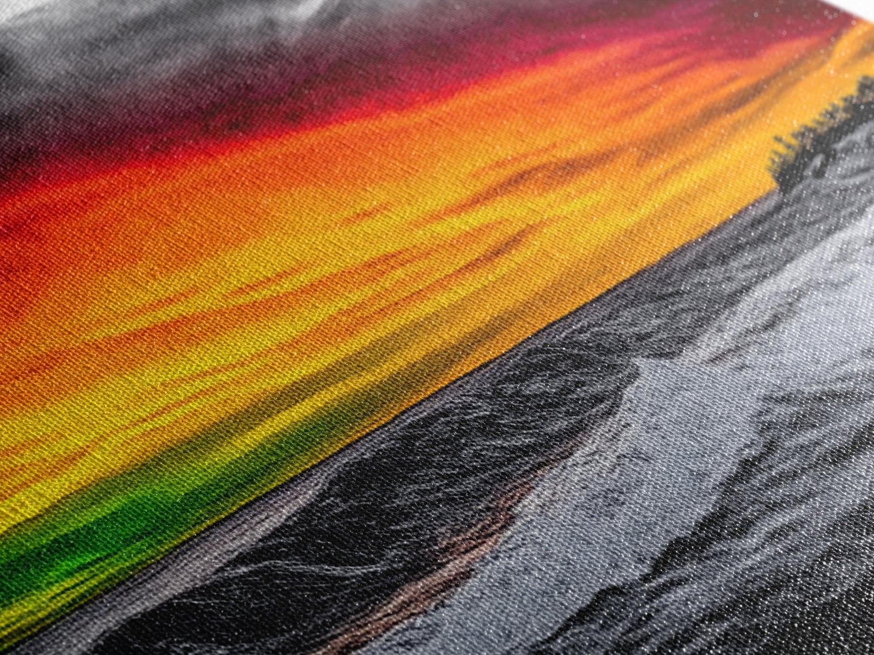 Most of our canvases are made in the USA, with the exception of canvases ordered with the light oak unstained frames, and any large canvases (24x48, 30x60, 16x48 and 20x60) ordered WITH a frame. These are temporarily made in and shipped from Europe, while we try to find a more consistent supplier in the USA.