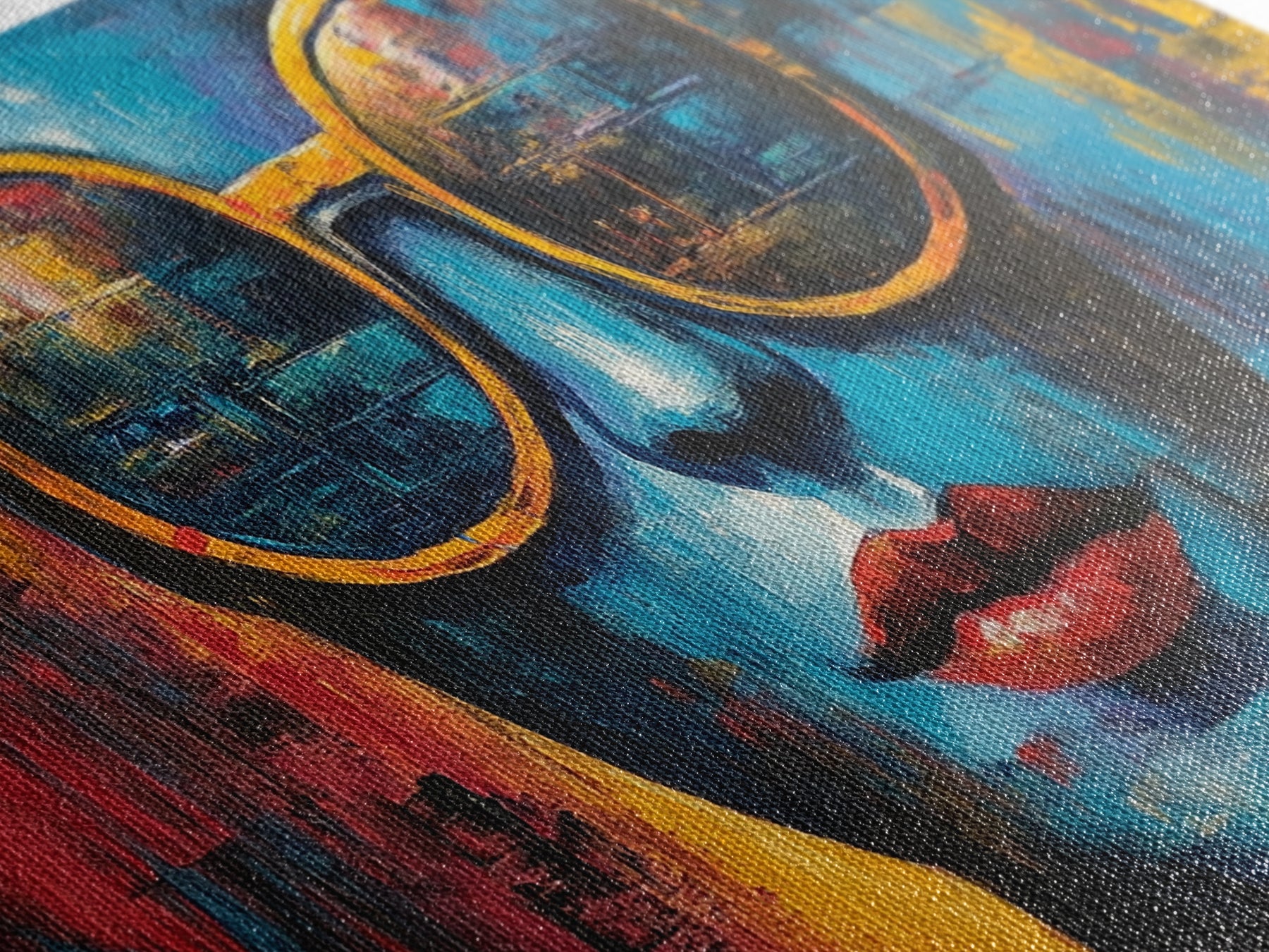 Bold Sunglasses Portrait, graffiti wall art, moody art, chicano art, abstract portrait, pop art decor, gift idea her, Canvas Print