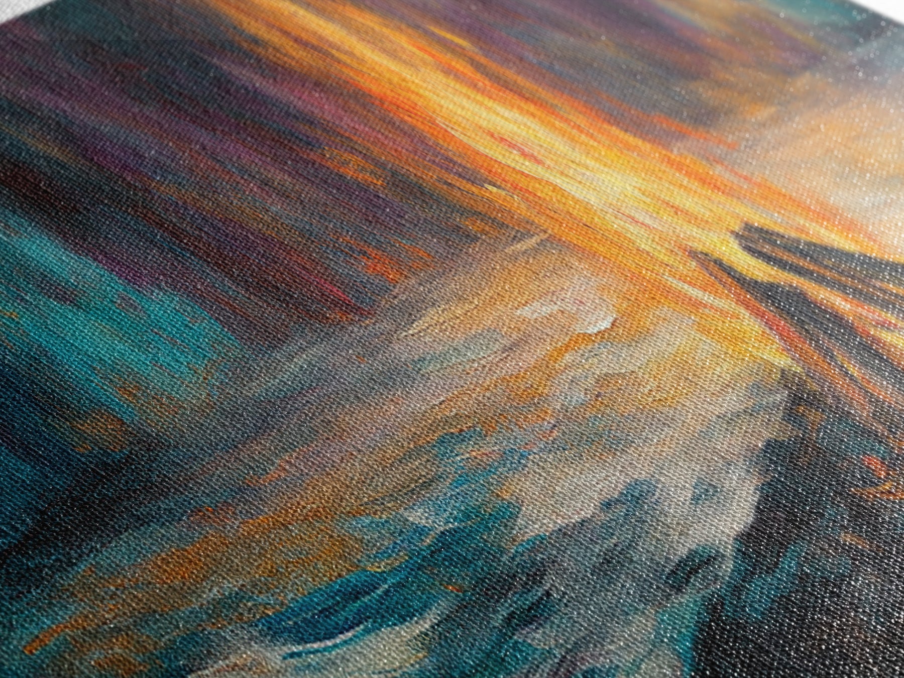 Most of our canvases are made in the USA, with the exception of canvases ordered with the light oak unstained frames, and any large canvases (24x48, 30x60, 16x48 and 20x60) ordered WITH a frame. These are temporarily made in and shipped from Europe, while we try to find a more consistent supplier in the USA.