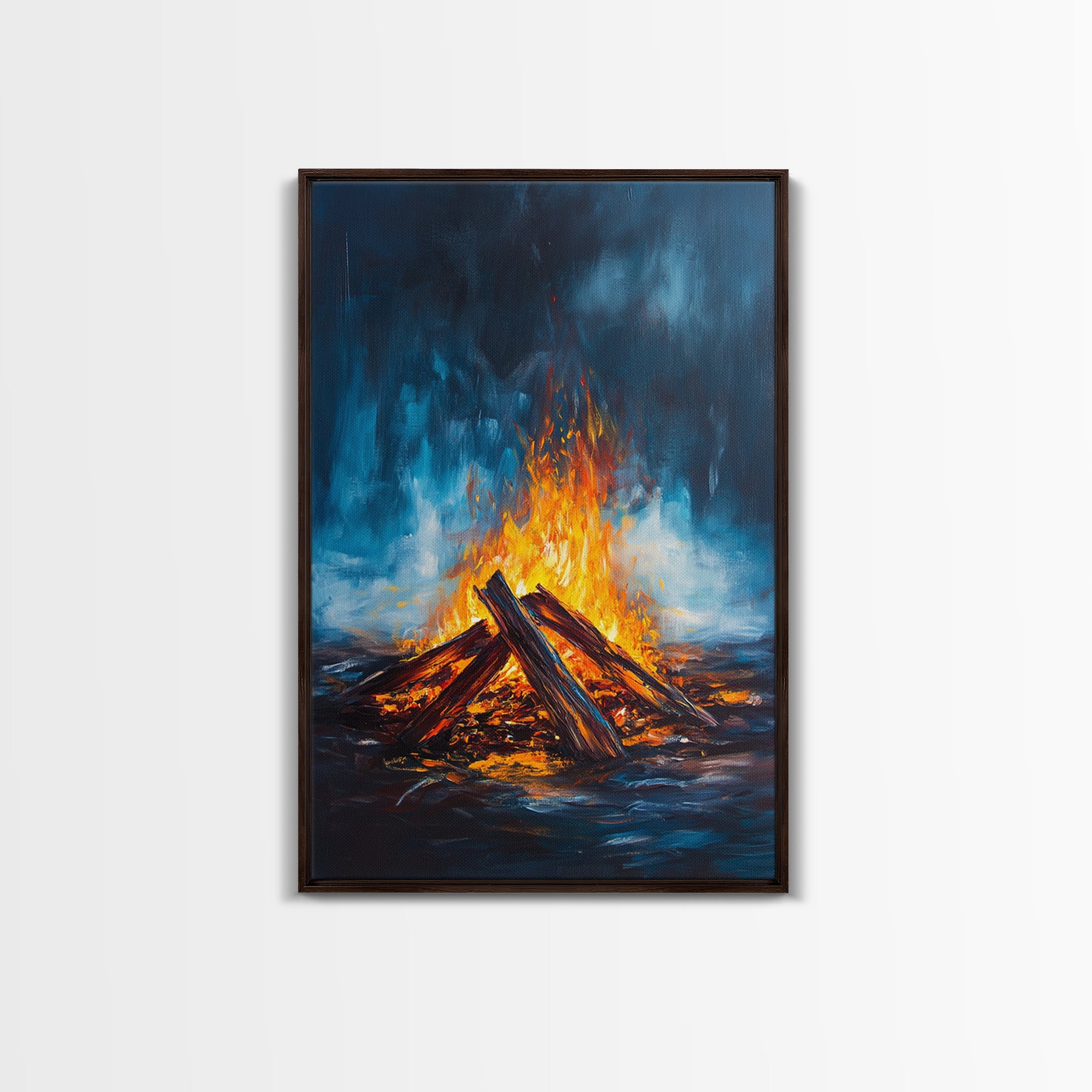 Bonfire Night, Moody Art, Rustic Decor, Canvas Print, Fire Art, Dark Romance Painting, Fall Wall Art, Cozy Living Room Art, Gift Idea