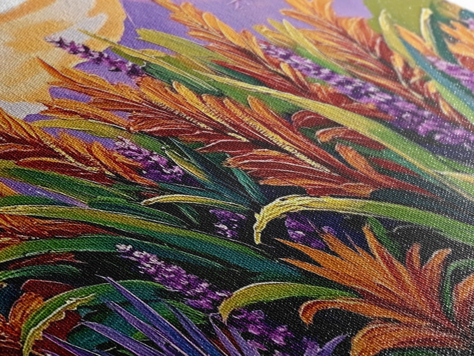 Most of our canvases are made in the USA, with the exception of canvases ordered with the light oak unstained frames, and any large canvases (24x48, 30x60, 16x48 and 20x60) ordered WITH a frame. These are temporarily made in and shipped from Europe, while we try to find a more consistent supplier in the USA.