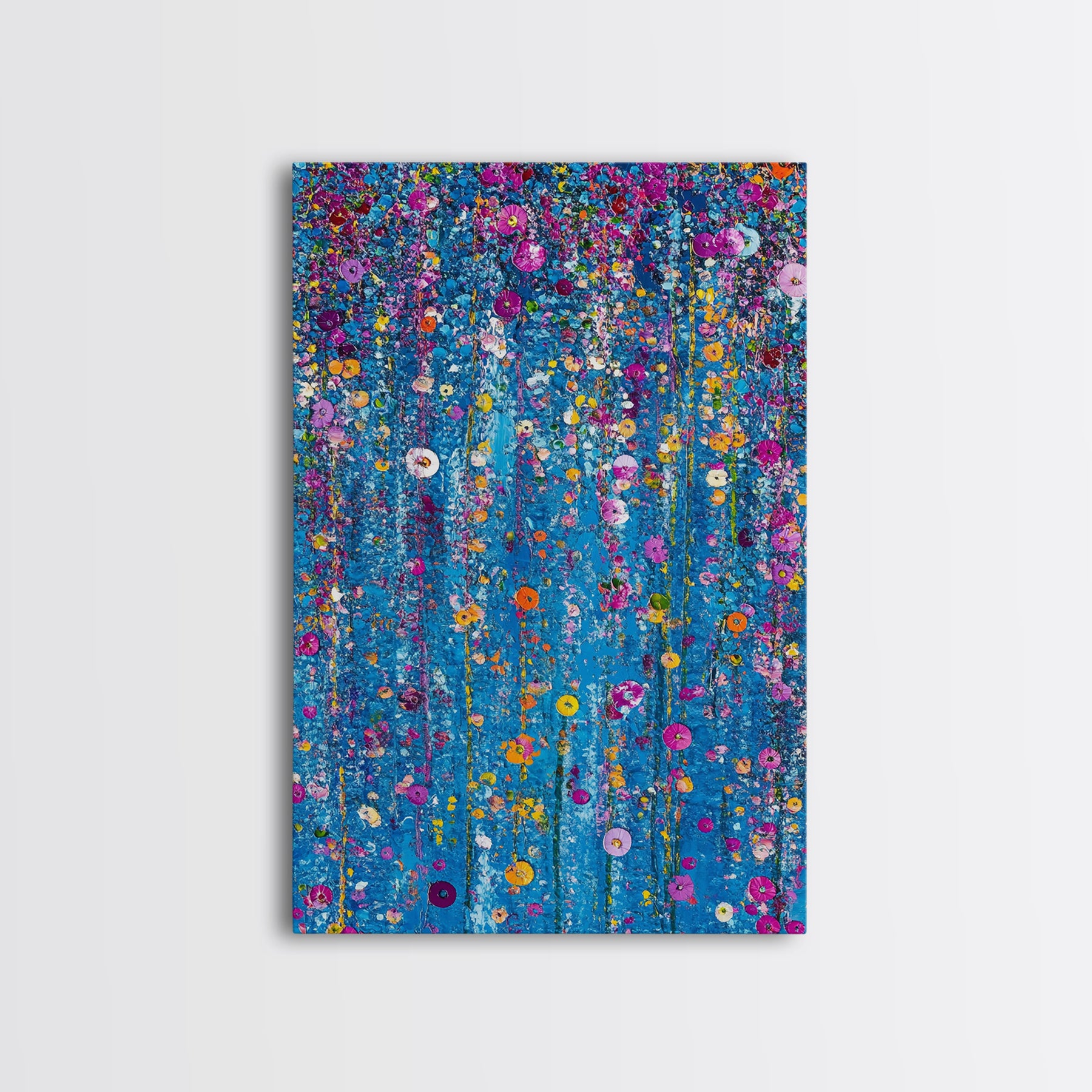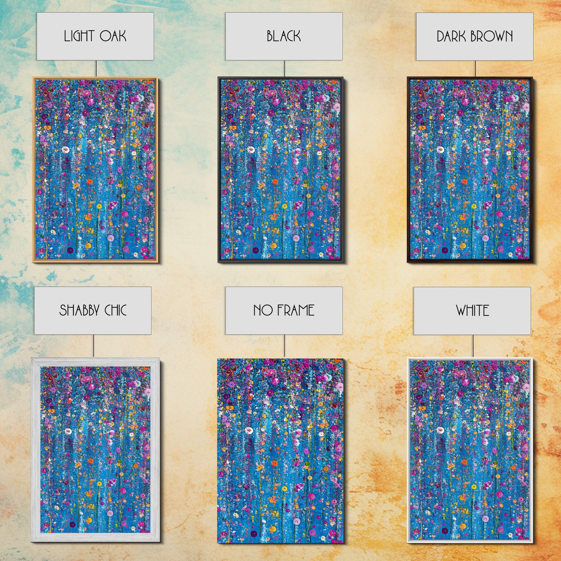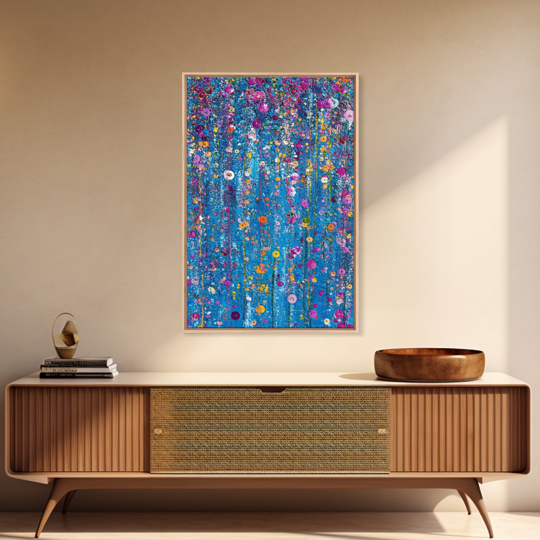 Botanical Wall Art Framed Canvas Print, Bright Blue Wild Flower Painting Print, Flower Painting, Girls Room Decor, Gift For Her