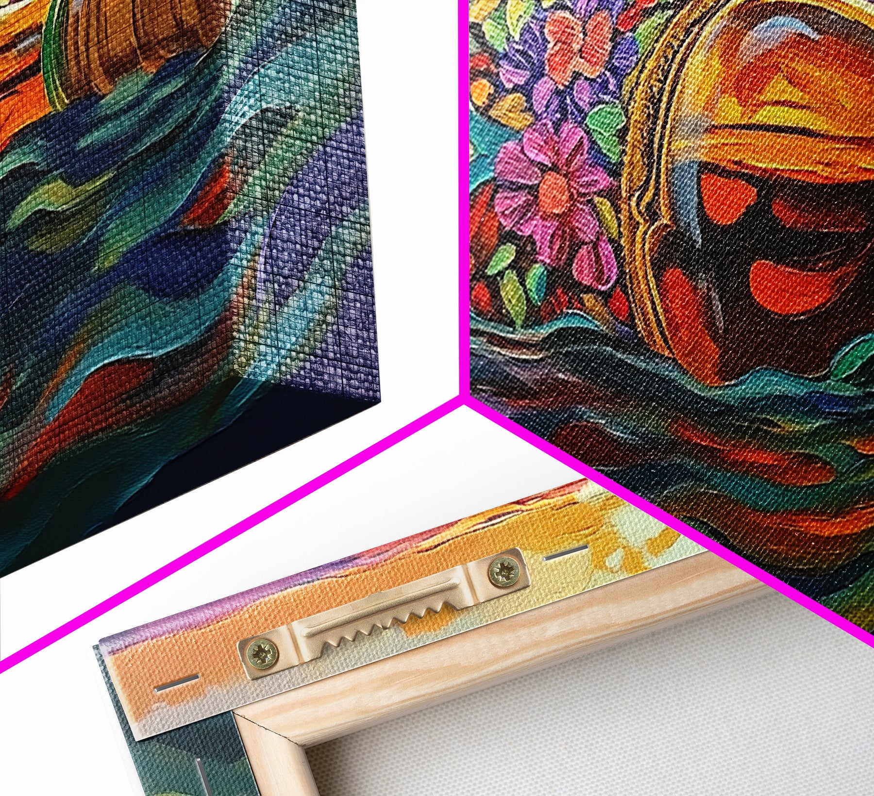 *Optional frames add a total of 1.5 inches to each dimension, for example a 10x20 canvas with a frame will be 11.5 by 21.5 inches total. All framed canvas are 1.5" total depth.