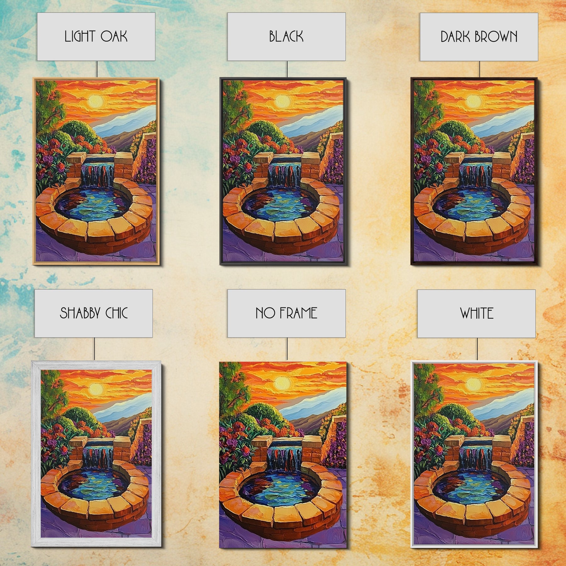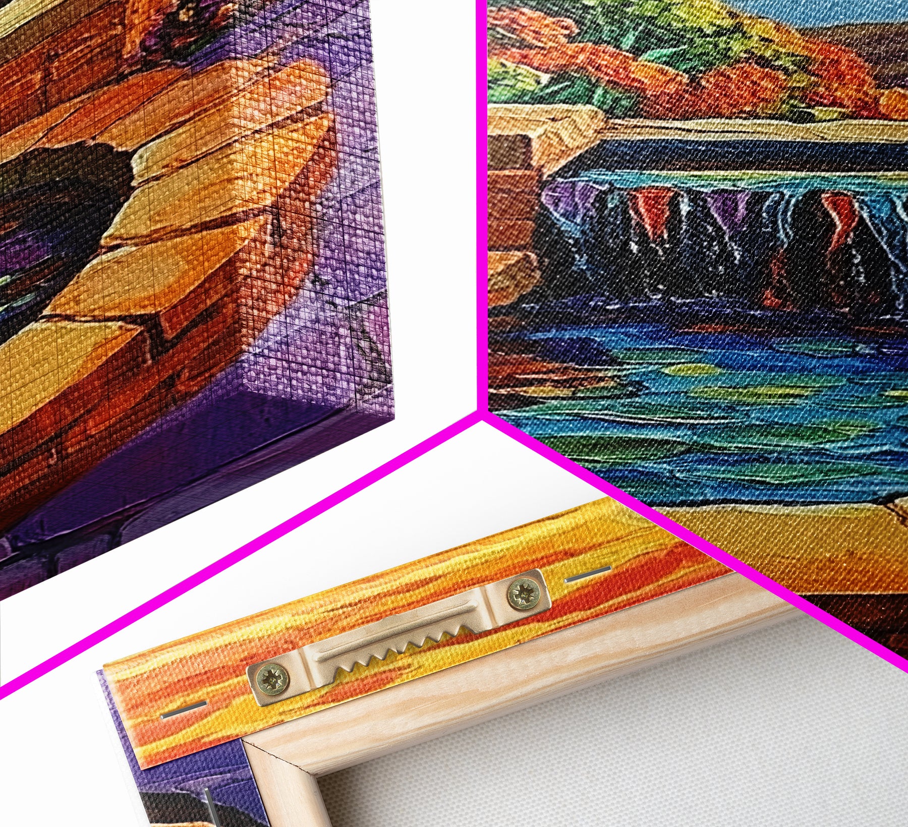 *Optional frames add a total of 1.5 inches to each dimension, for example a 10x20 canvas with a frame will be 11.5 by 21.5 inches total. All framed canvas are 1.5" total depth.