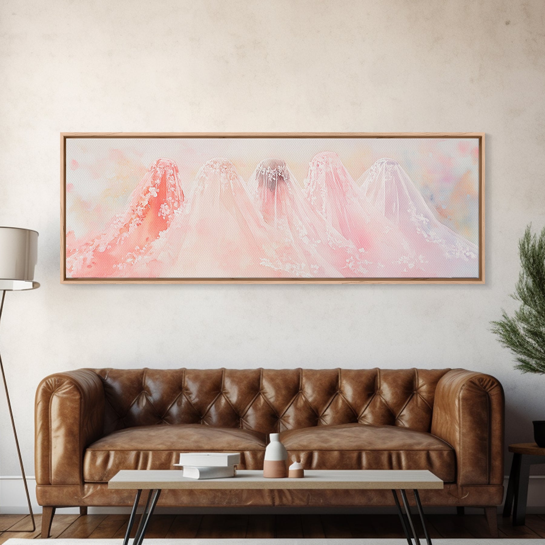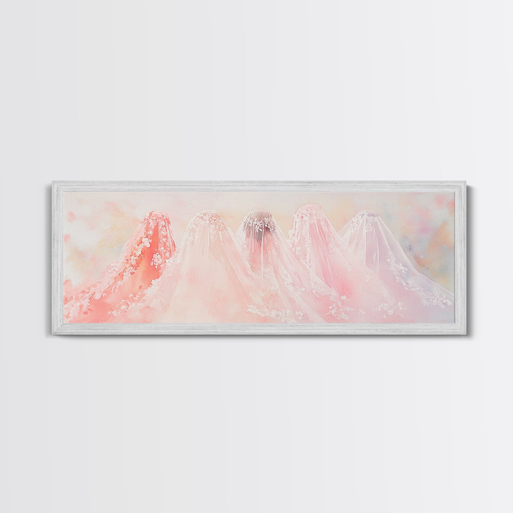 Bridal Veil Light Pink Wall Art Framed Canvas Print Horizontal Wedding Rustic Decor Extra Wide Artwork Bedroom Art