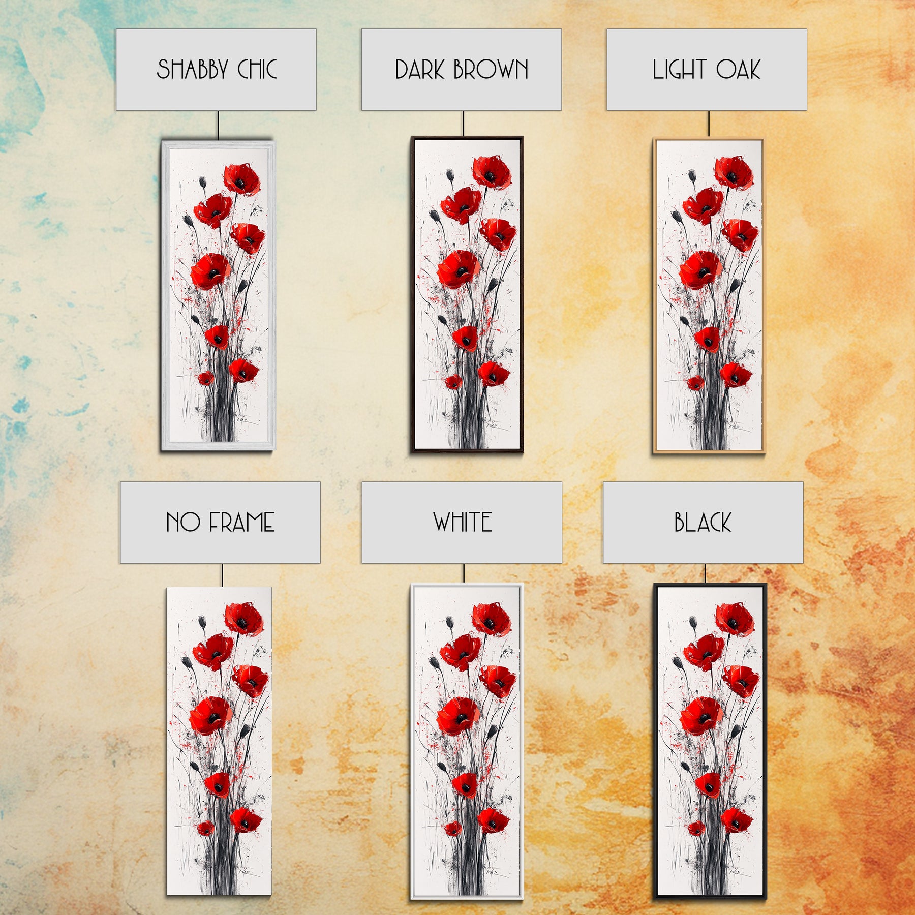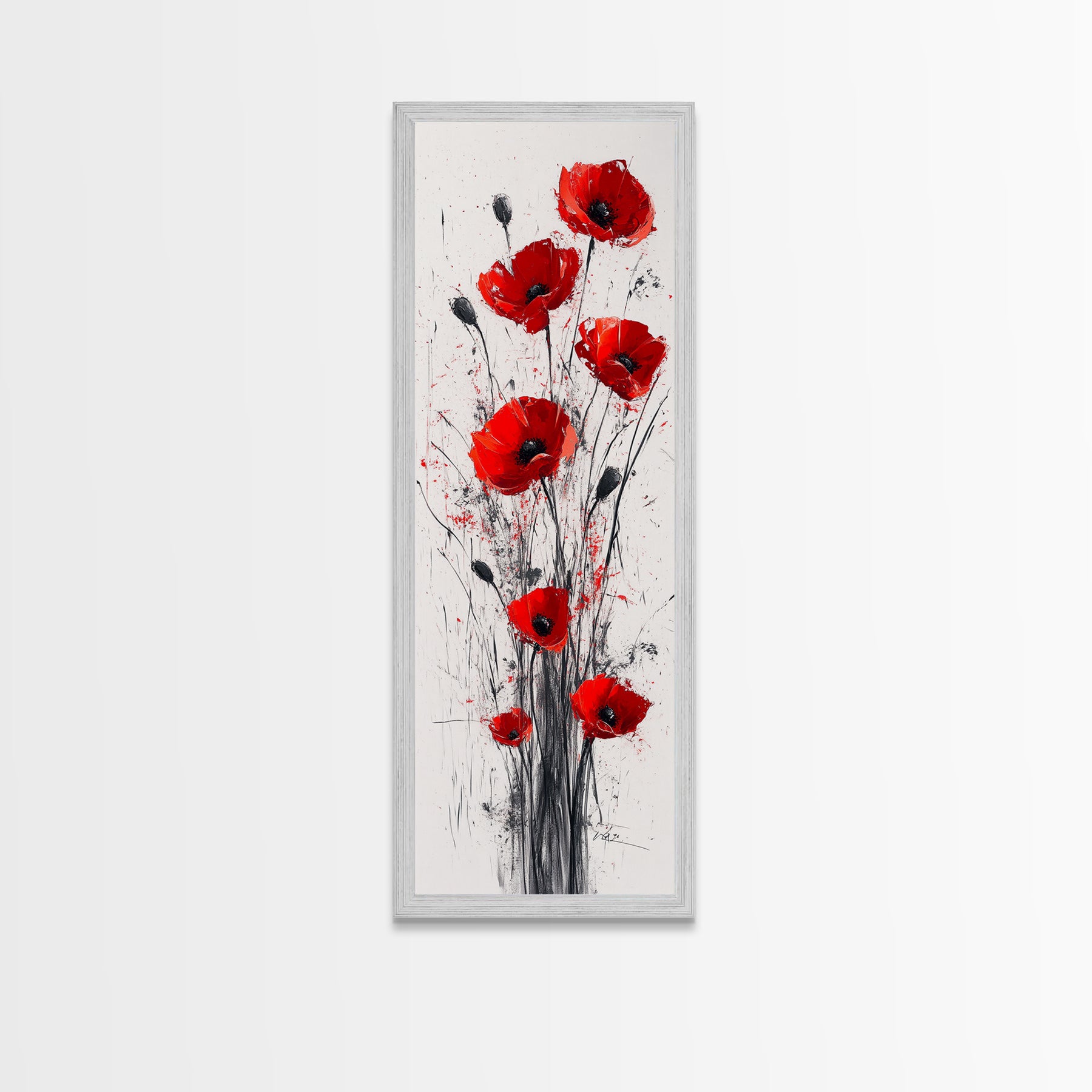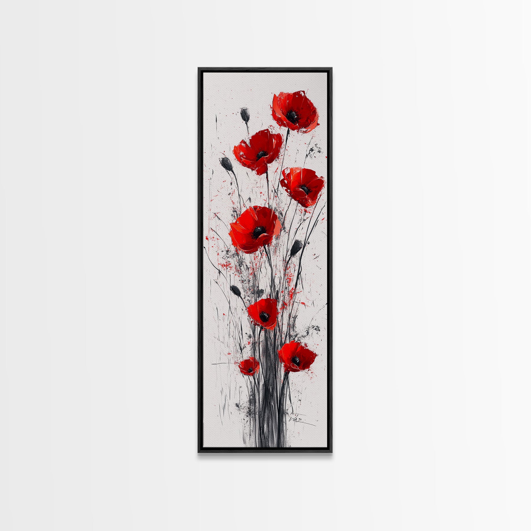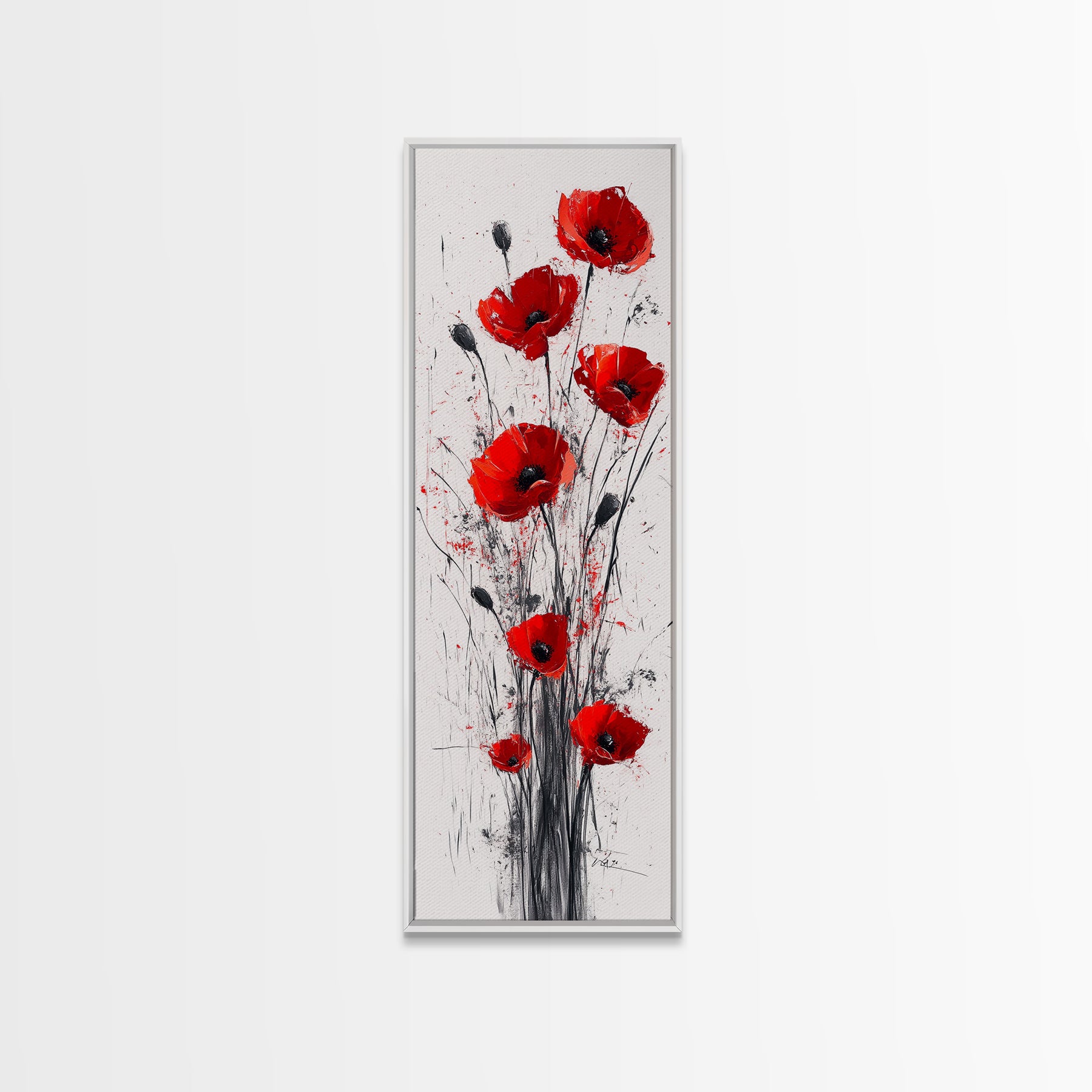 Bright Red Poppy Flower Art Framed Canvas Print Wildflower Painting Botanical Prints Modern Office Rustic Farmhouse Art