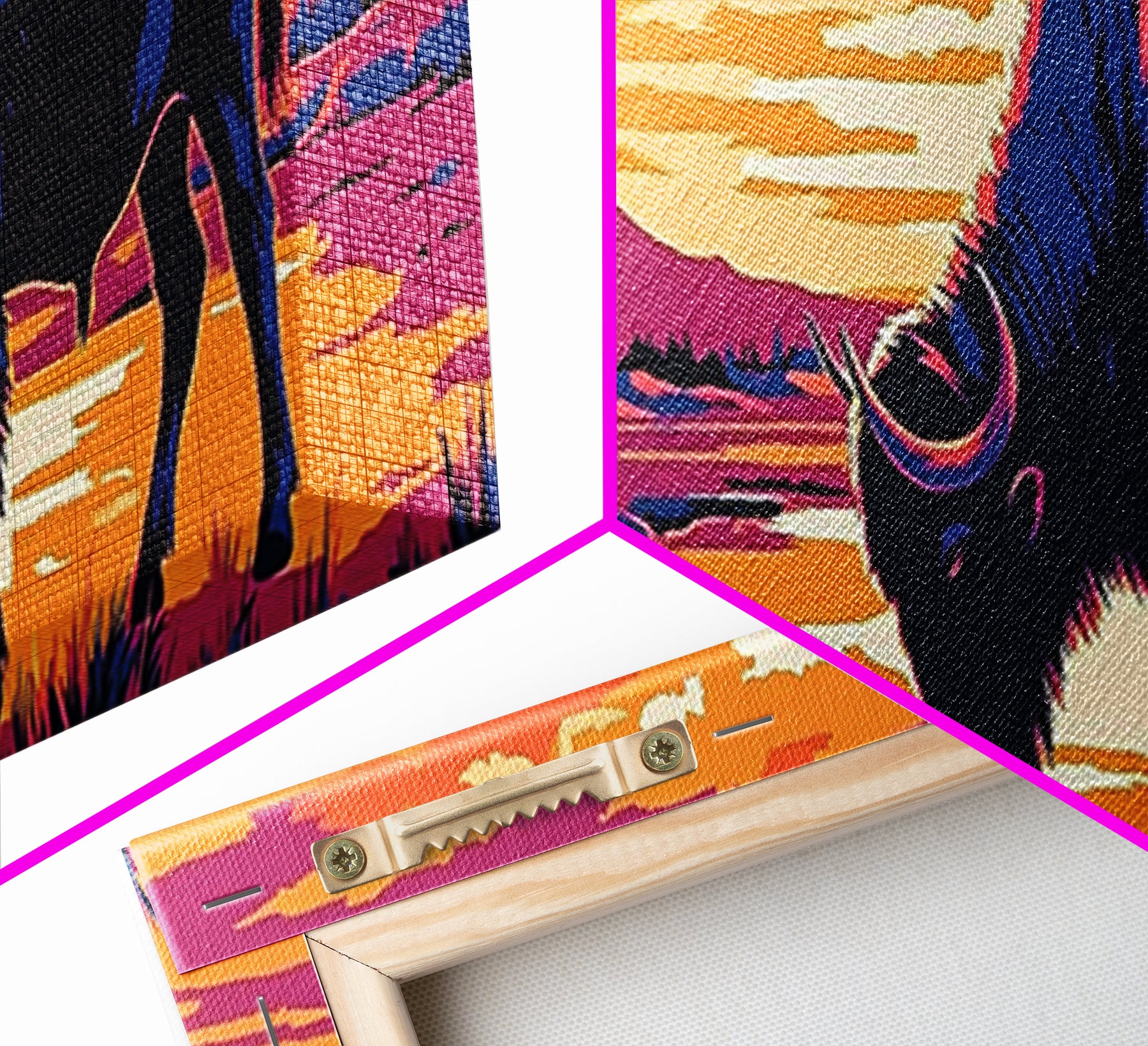 Hello and thank you for taking the time to view our modern high quality giclée artwork! We offer both posters and stretched canvas prints. Our posters are printed on Ultra Matte 60 lb / 230 GSM high quality photo paper, with a thickness of 10 mil. Our canvases are printed on museum grade 350 GSM canvas material with ECO friendly archival grade ink, then hand stretched and stapled over premium, FSC certified and shrink resistant frames. Designed and built to last a lifetime.