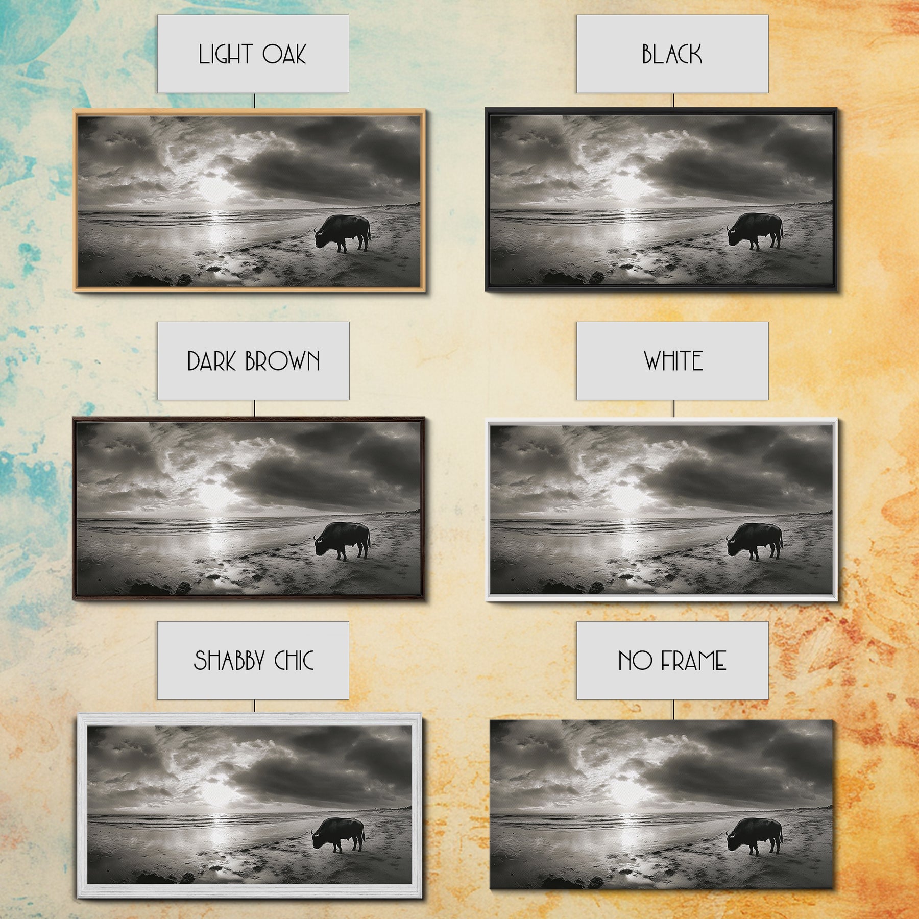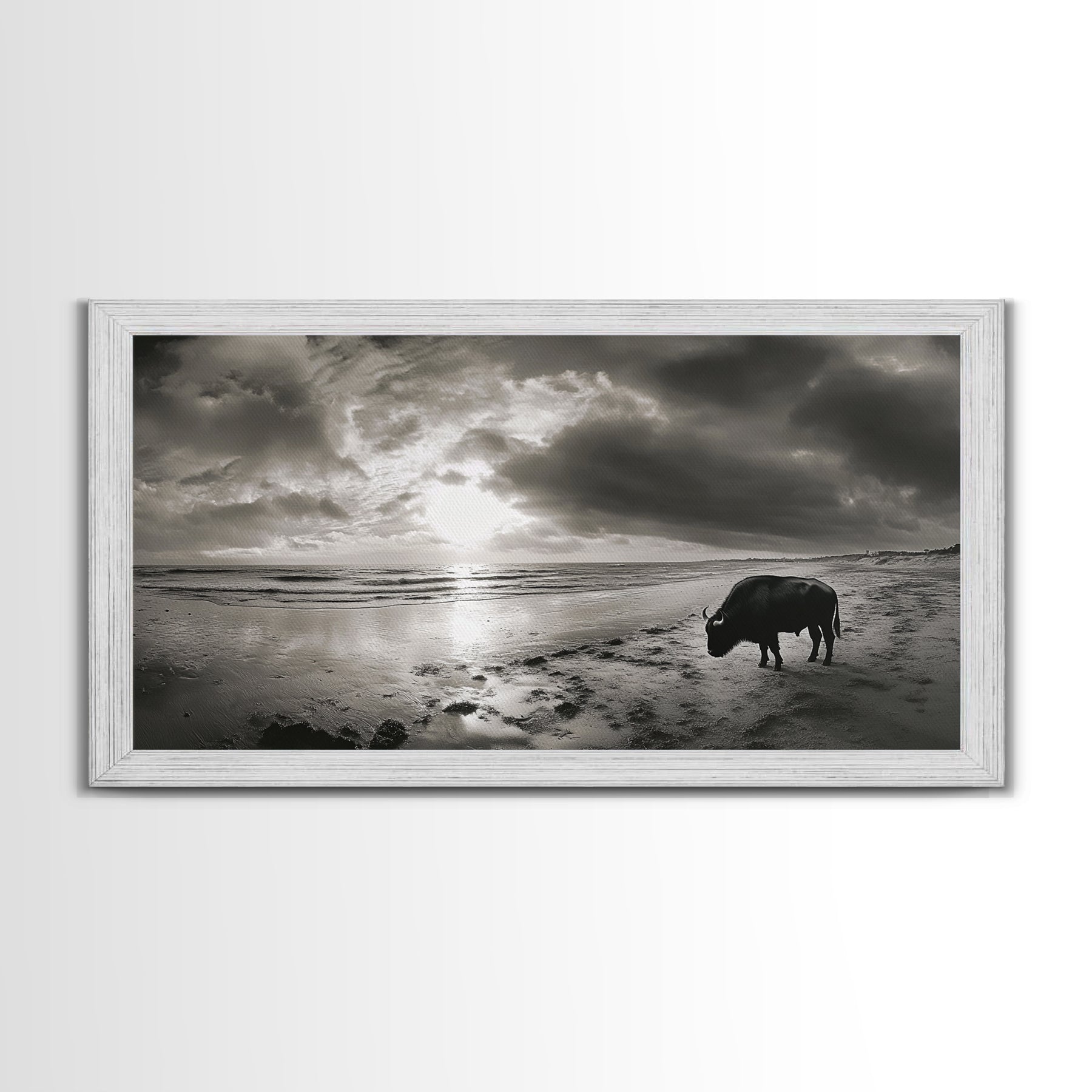 Buffalo, seascape painting, coastal landscape art, rustic decor, farmhouse art, panoramic painting, extra wide art, framed canvas print