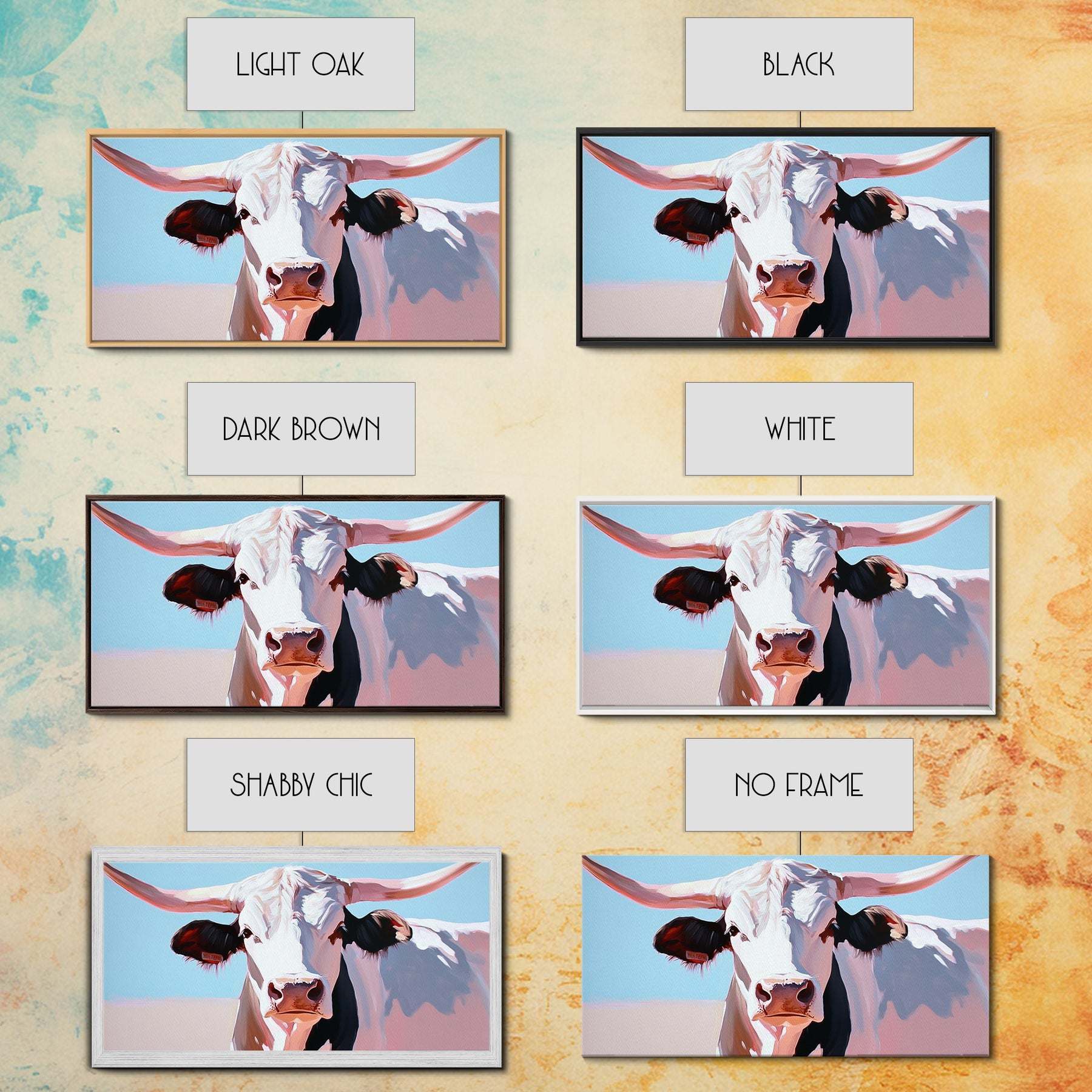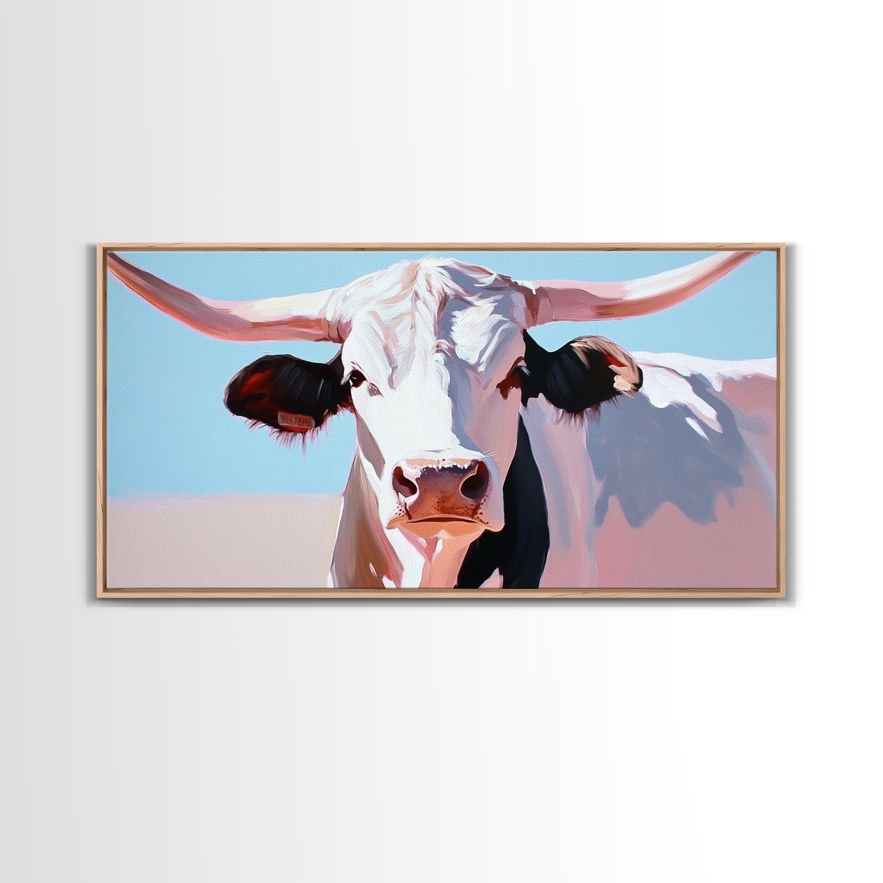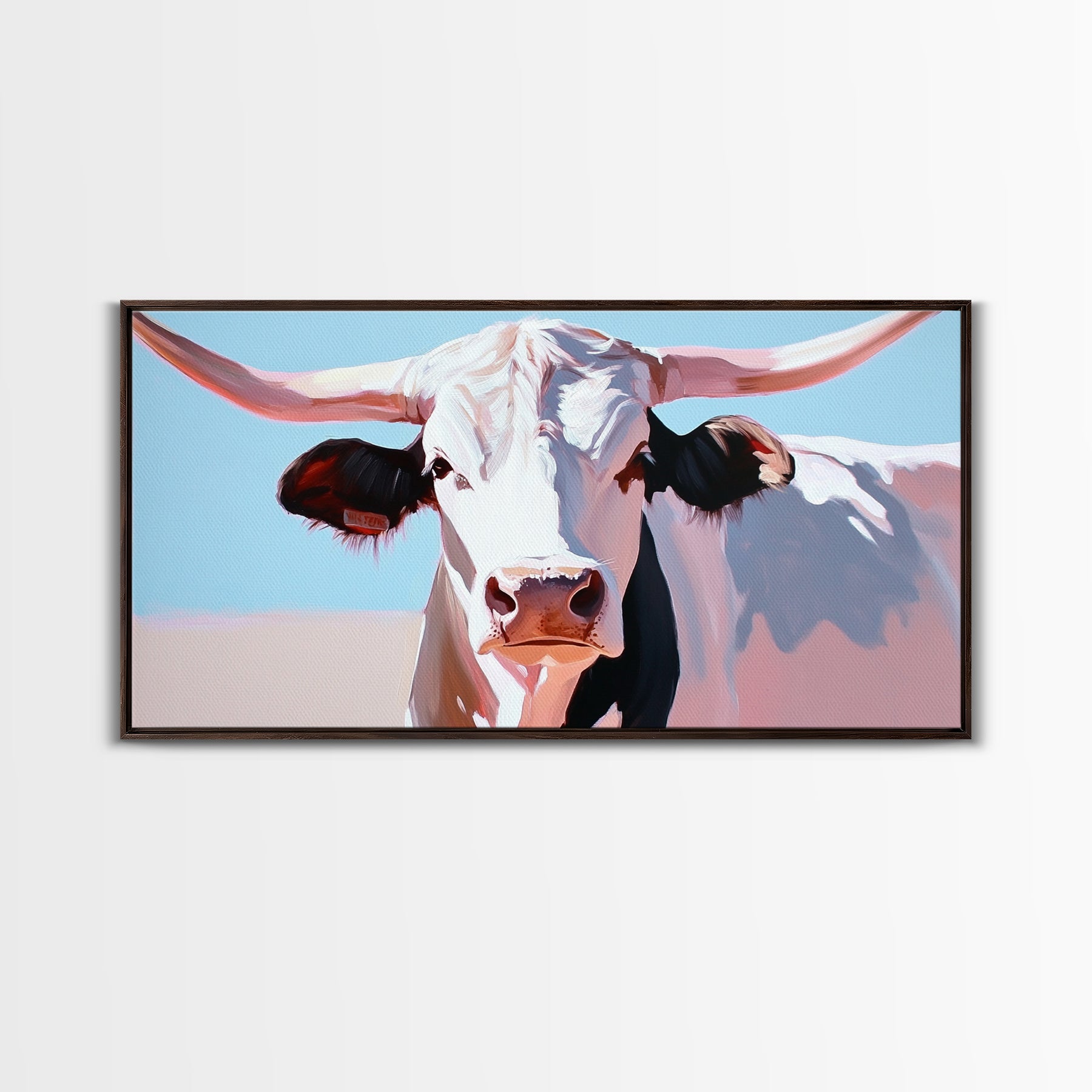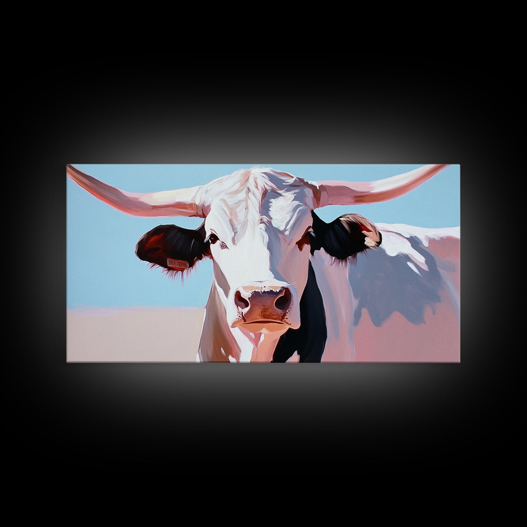 Bull And Bear Art, Rustic Wall Art, Farmhouse Art, Vintage Western Painting, Coastal Cowgirl Art, Framed Canvas Print, Above Couch Art