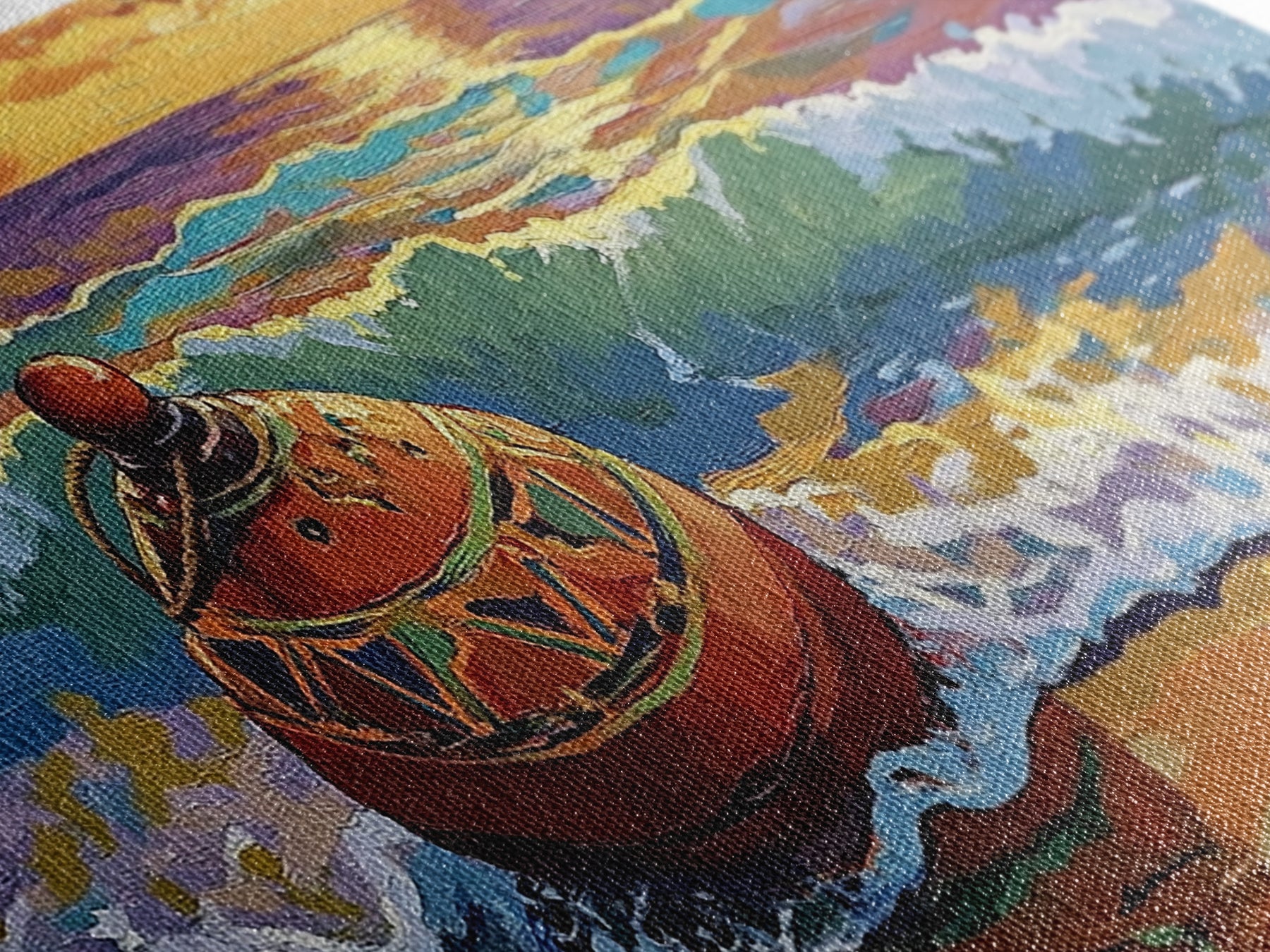 Most of our canvases are made in the USA, with the exception of canvases ordered with the light oak unstained frames, and any large canvases (24x48, 30x60, 16x48 and 20x60) ordered WITH a frame. These are temporarily made in and shipped from Europe, while we try to find a more consistent supplier in the USA.