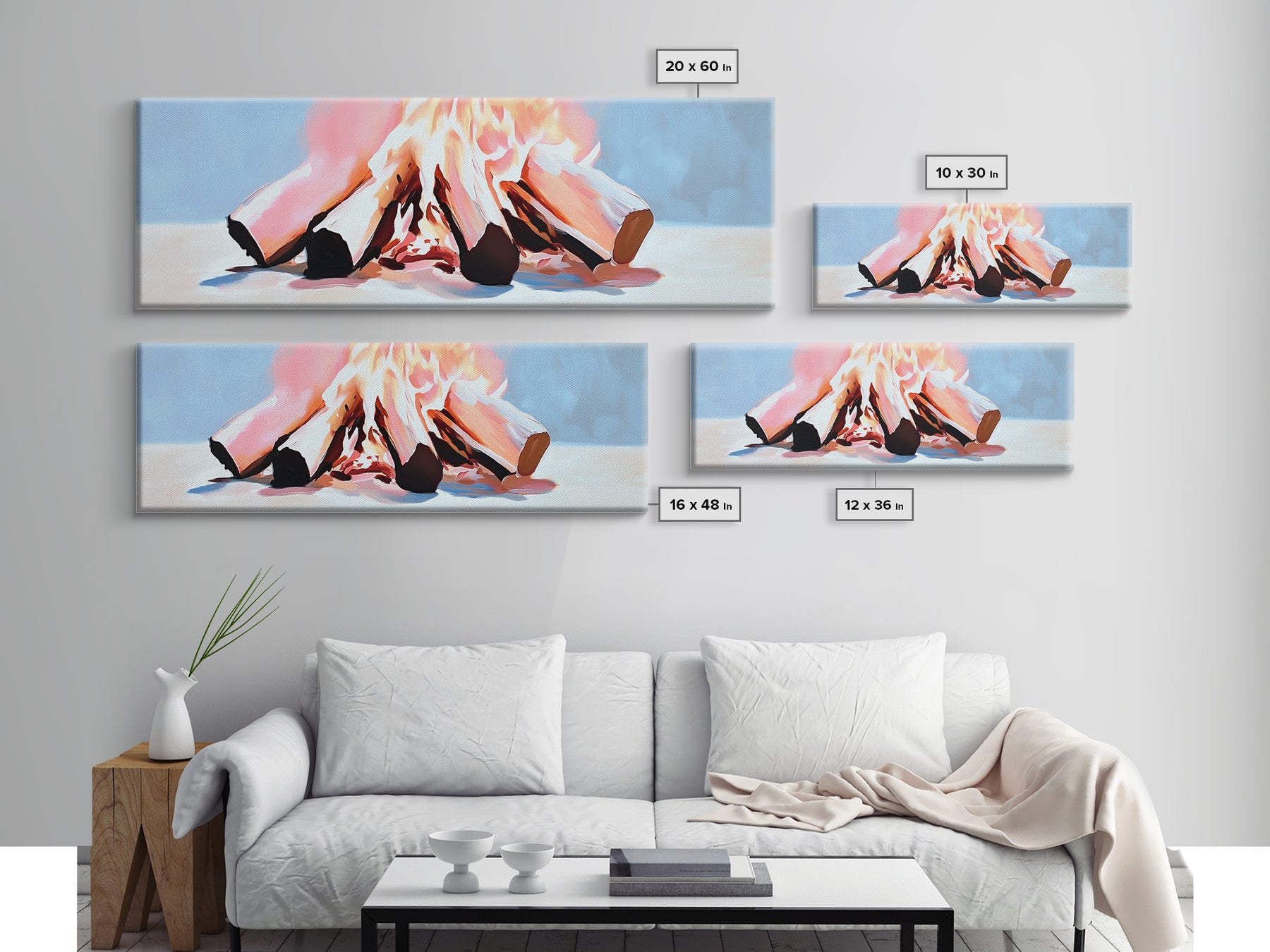 Burning Logs, Cozy Fireplace Art, Rustic Home Wall Decor, Framed Canvas Print, Warm Tones, Cabin Aesthetic, Relaxing Fire Art