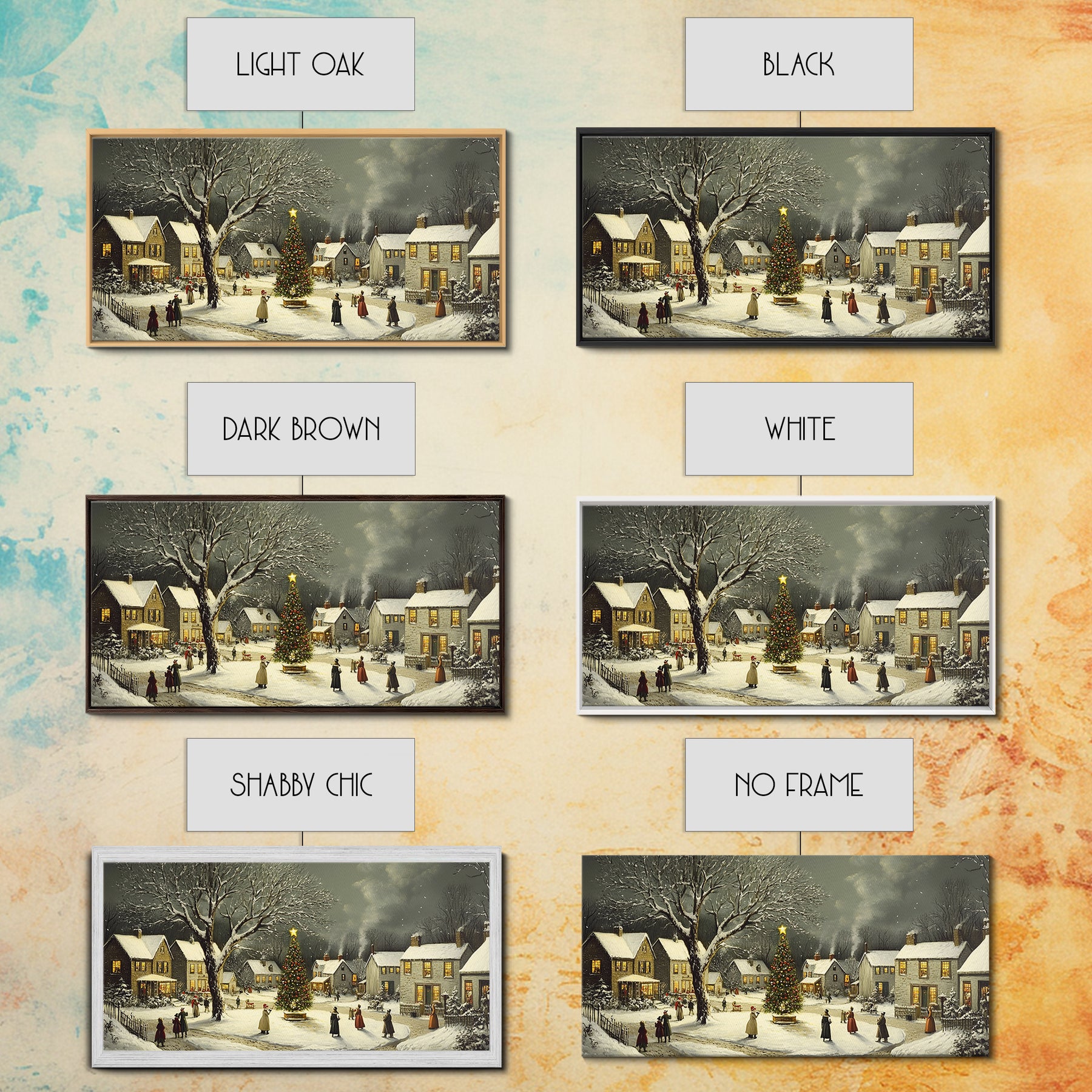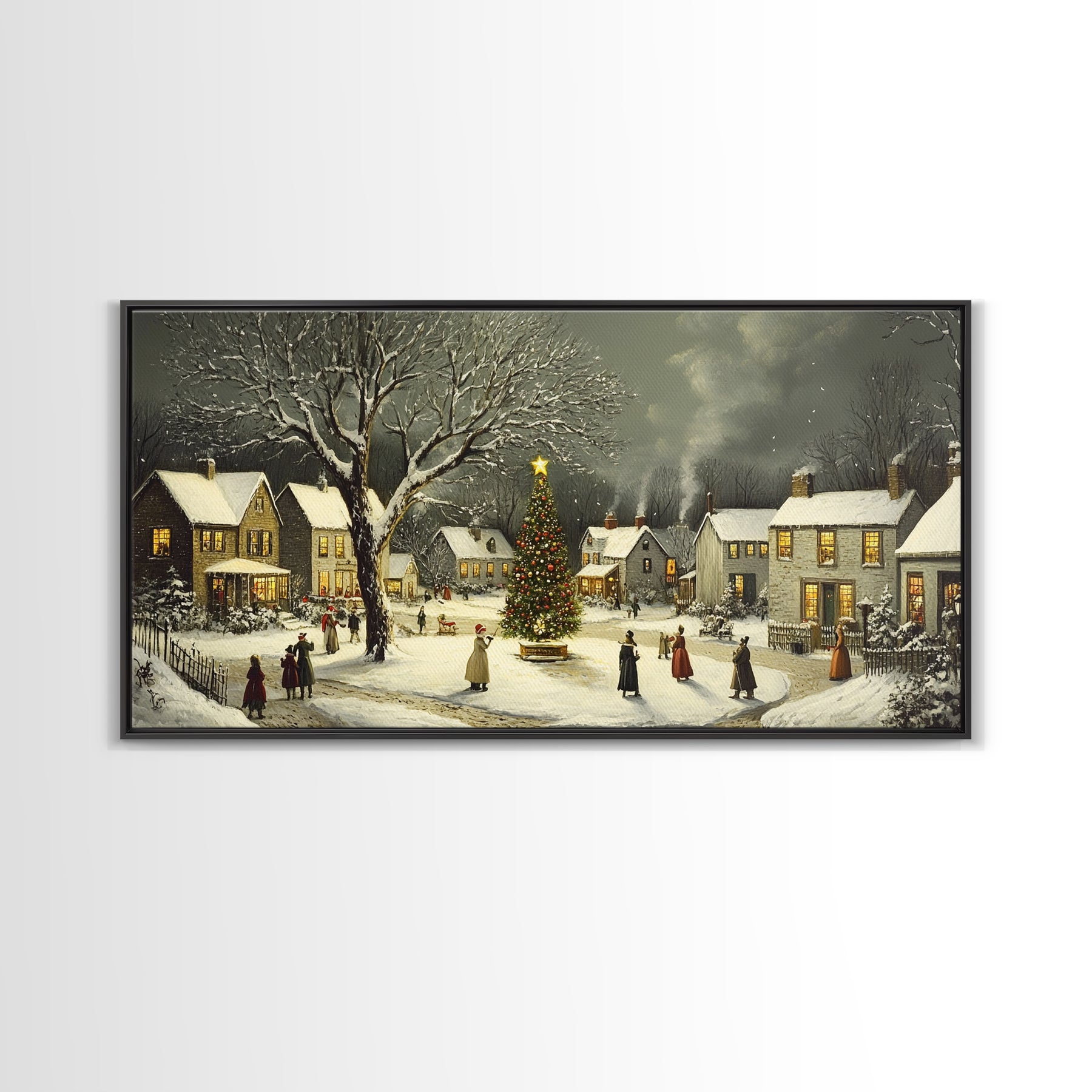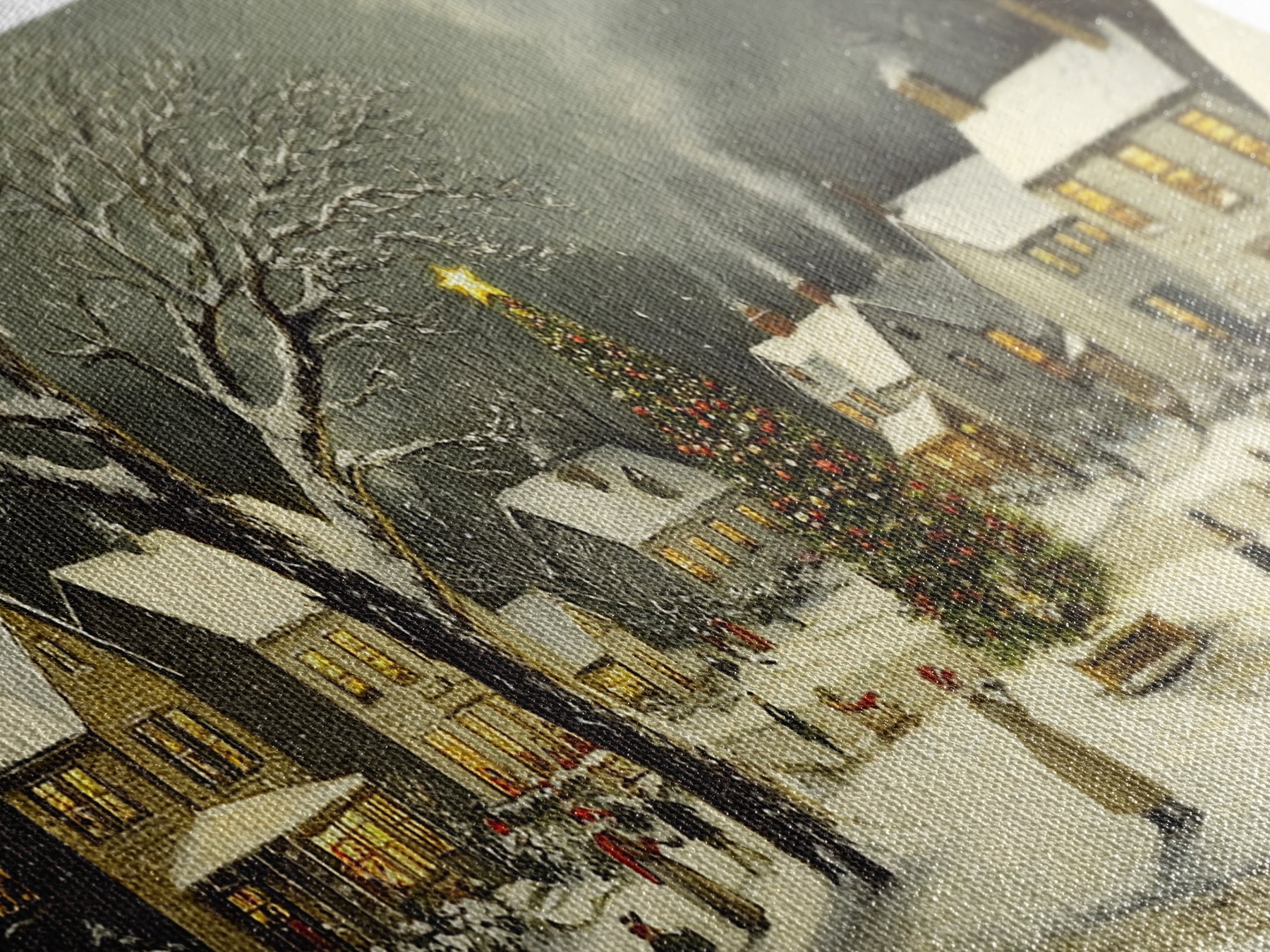 Bustling Christmas Street Scene Oil Painting Canvas Print, Snowy Holiday Night, Festive Victorian Christmas Village Oil Painting, Christmas Decor