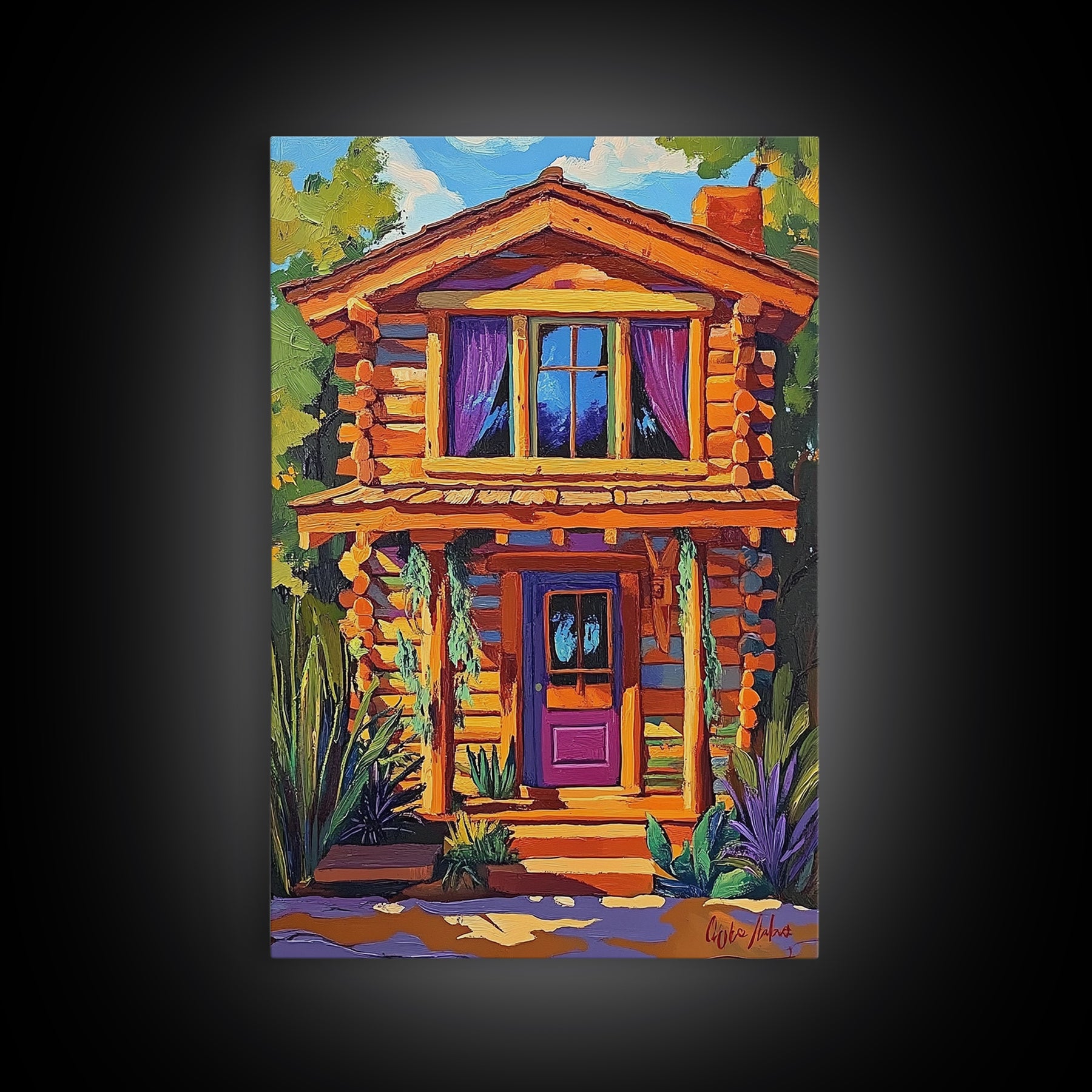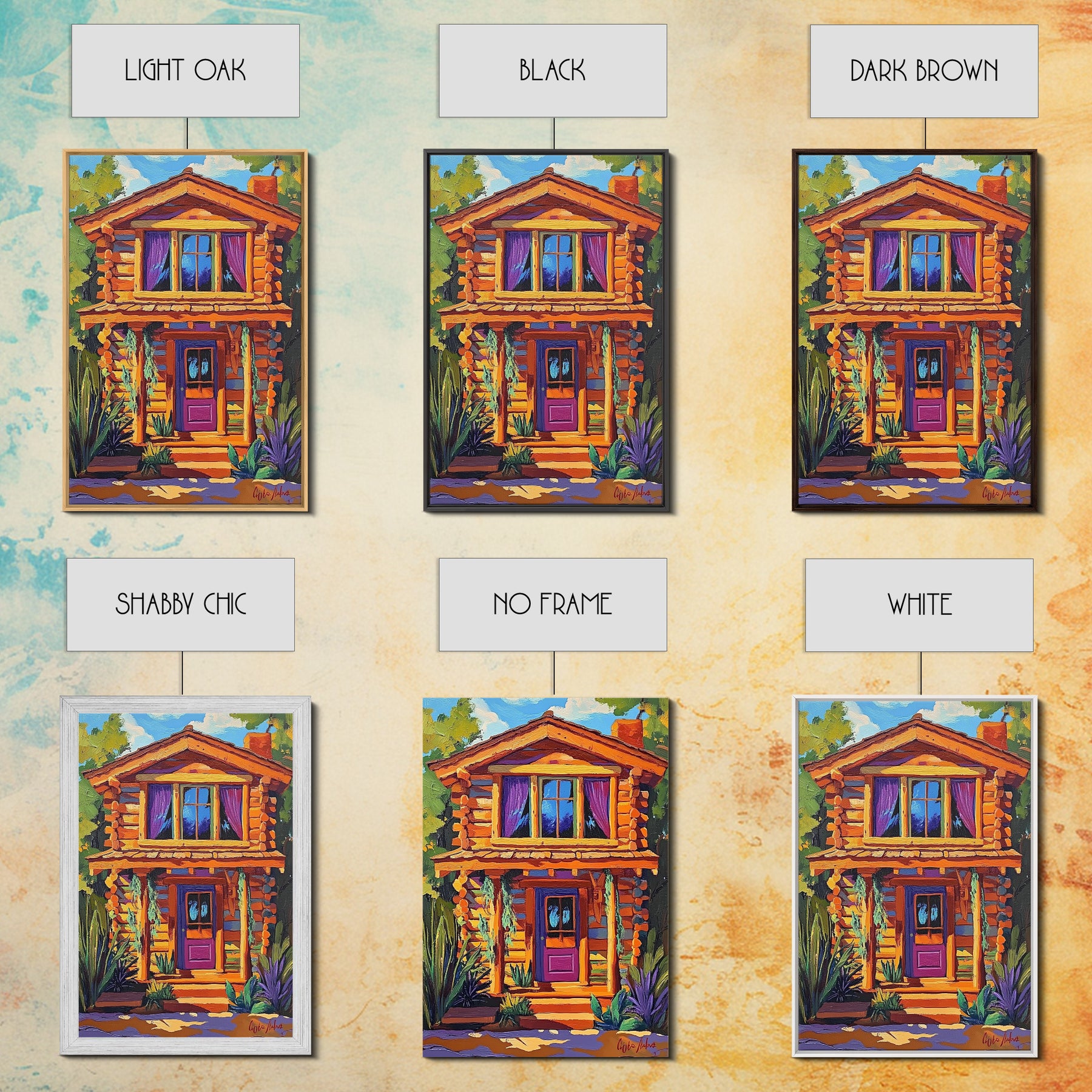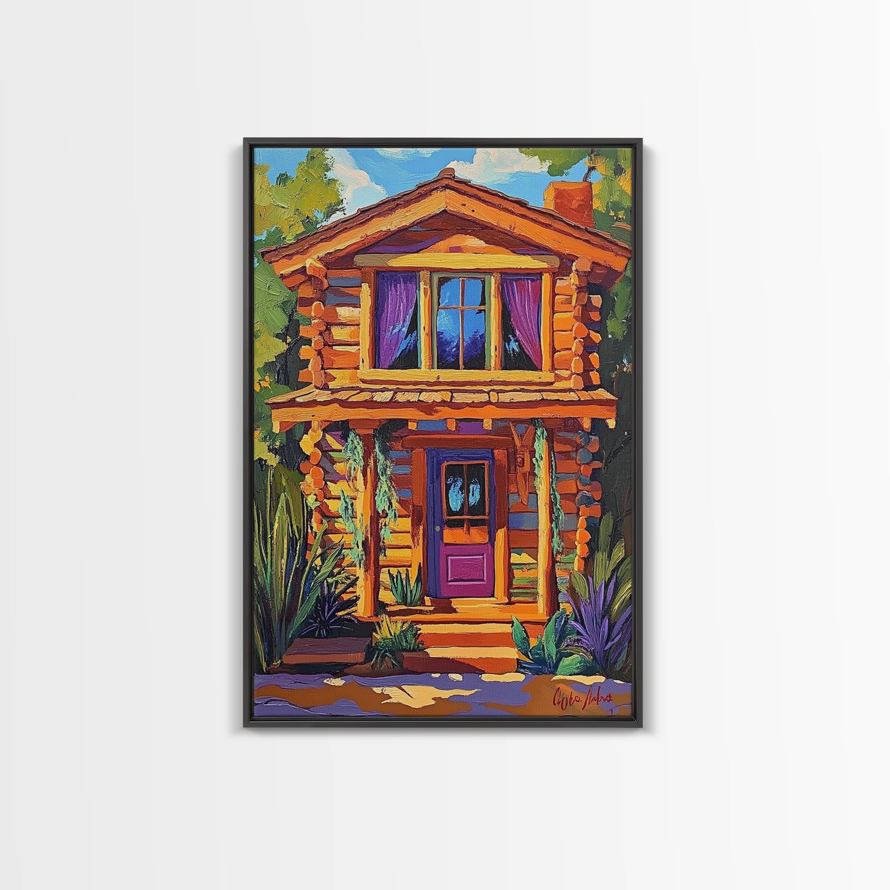 Cabin Cozy, Rustic, Nature, Framed Canvas Print log cabin wall art, autumn home decor, rustic living room print, woodland boho wall decor