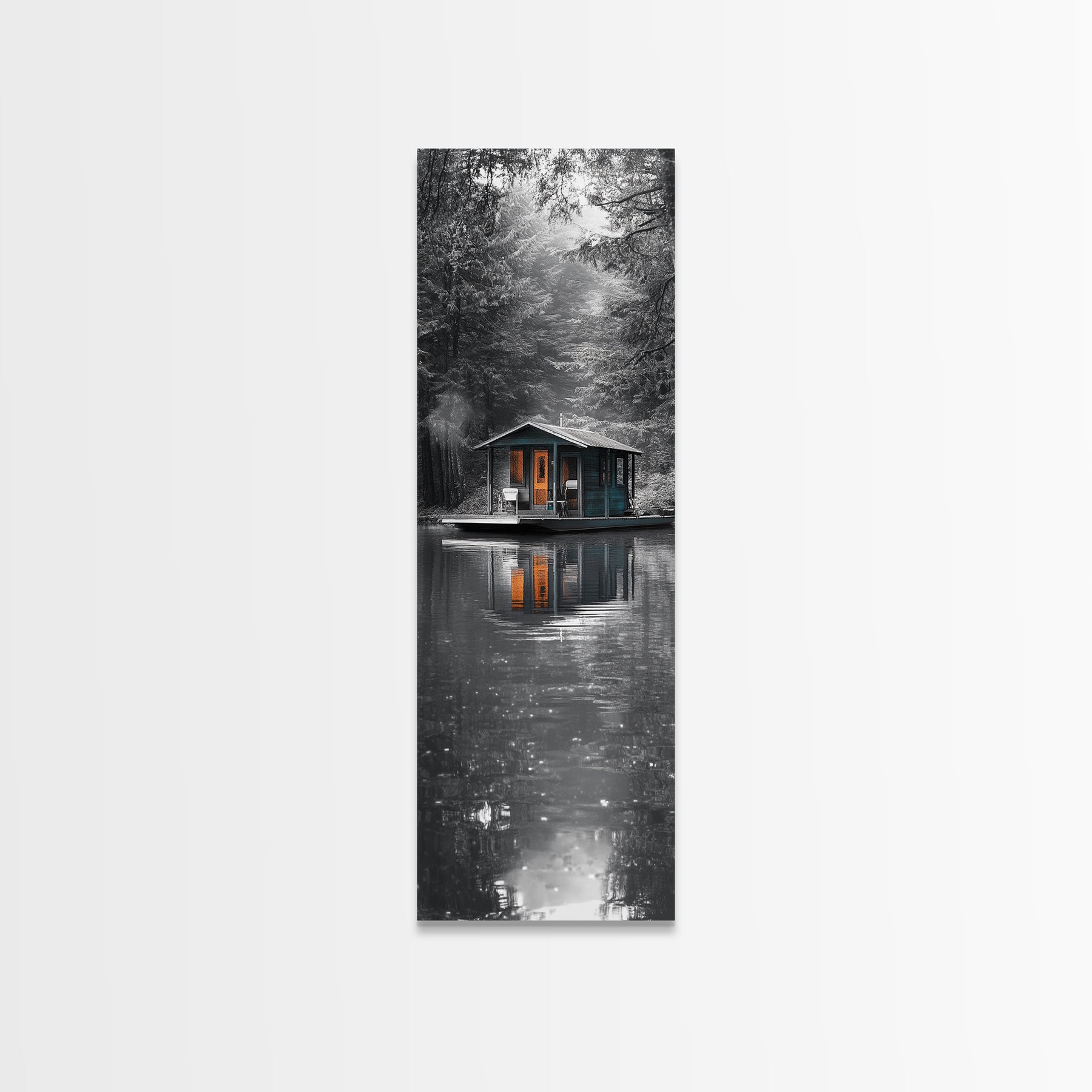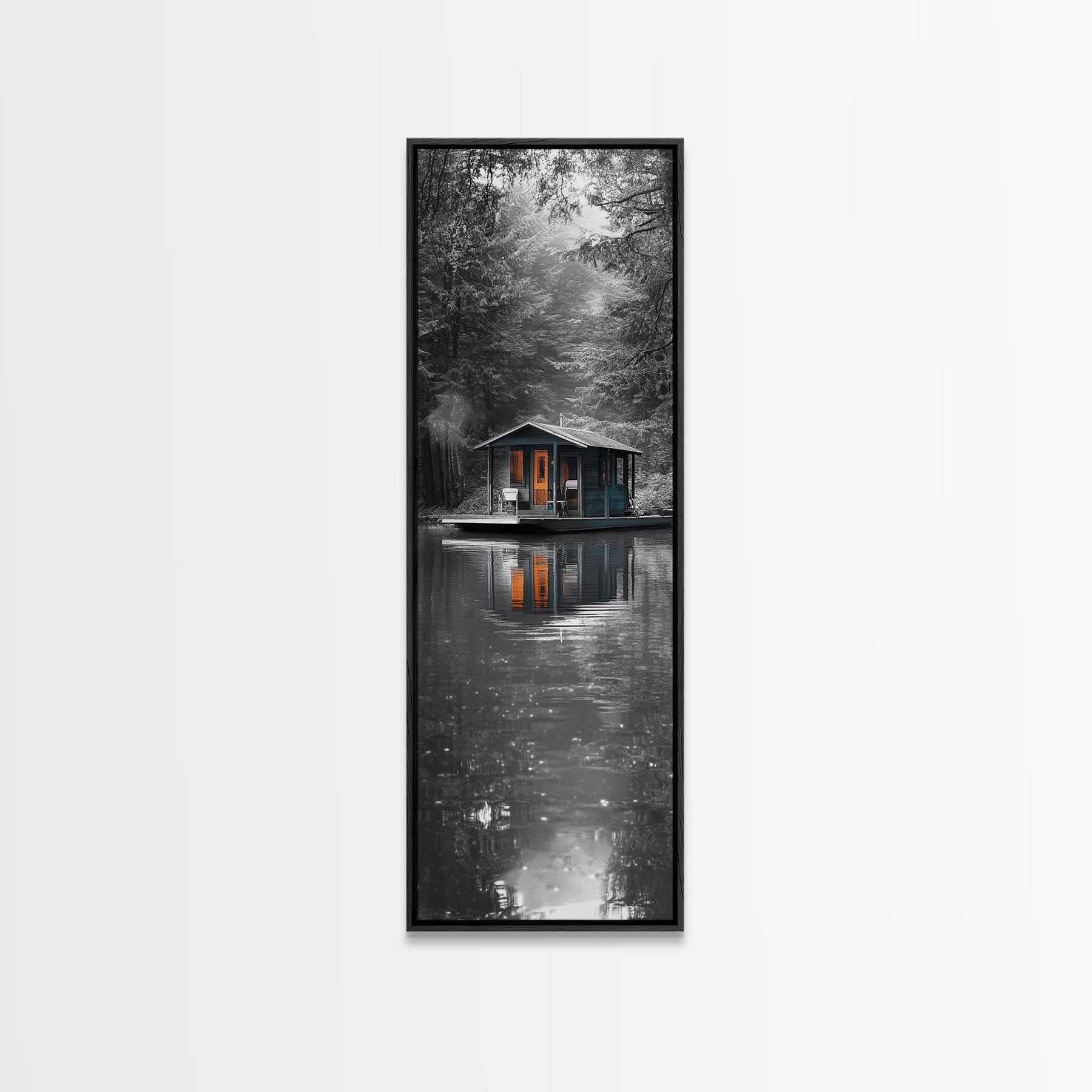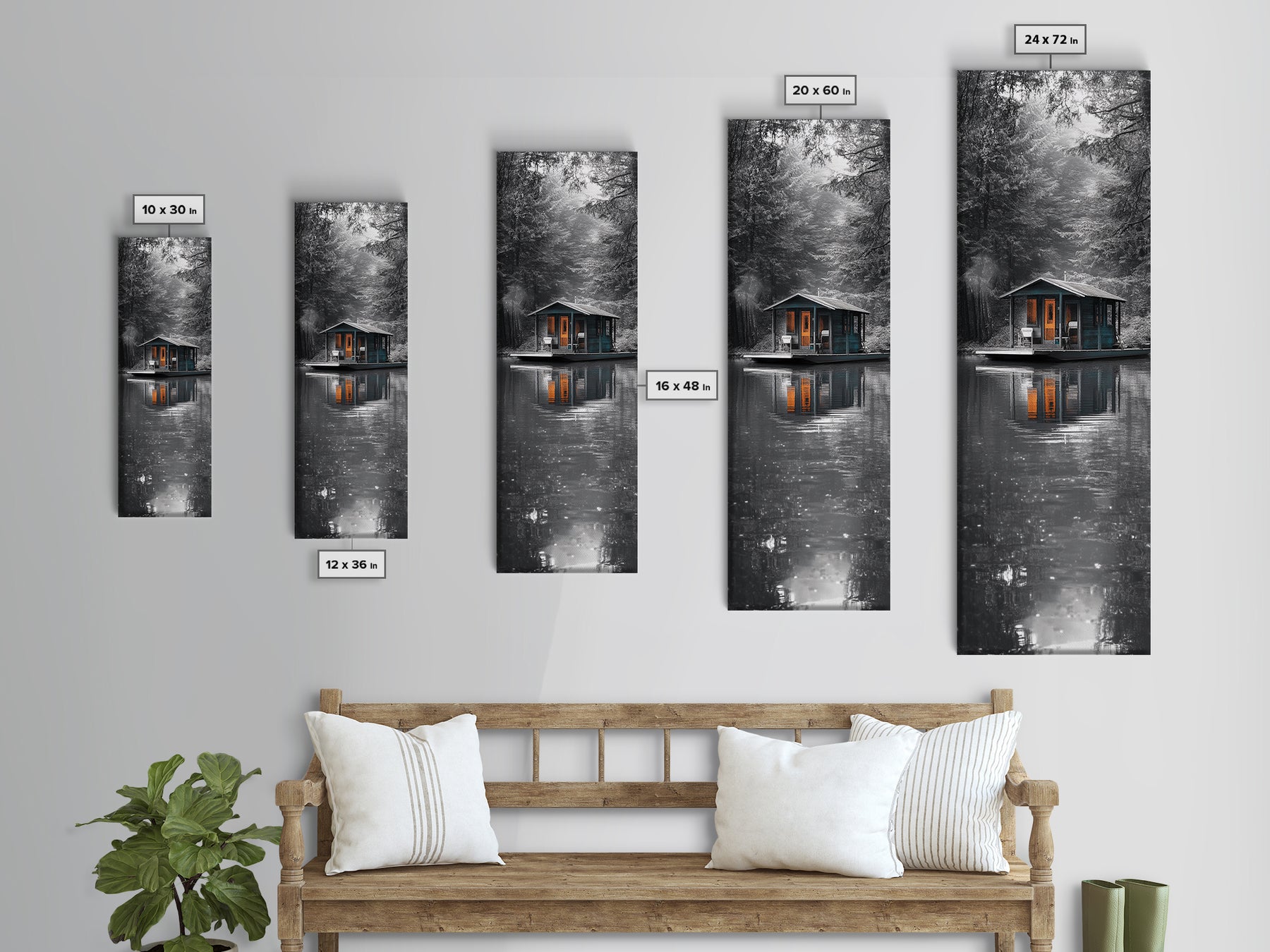 Cabin Reflection, Lake House Art, Cozy Forest Home, Canvas Print, Winter Wall Decor, Rustic Bedroom Artwork, Cabin Lover Gift
