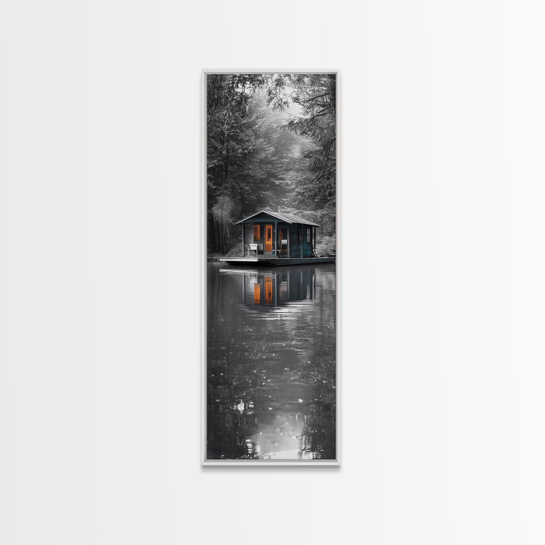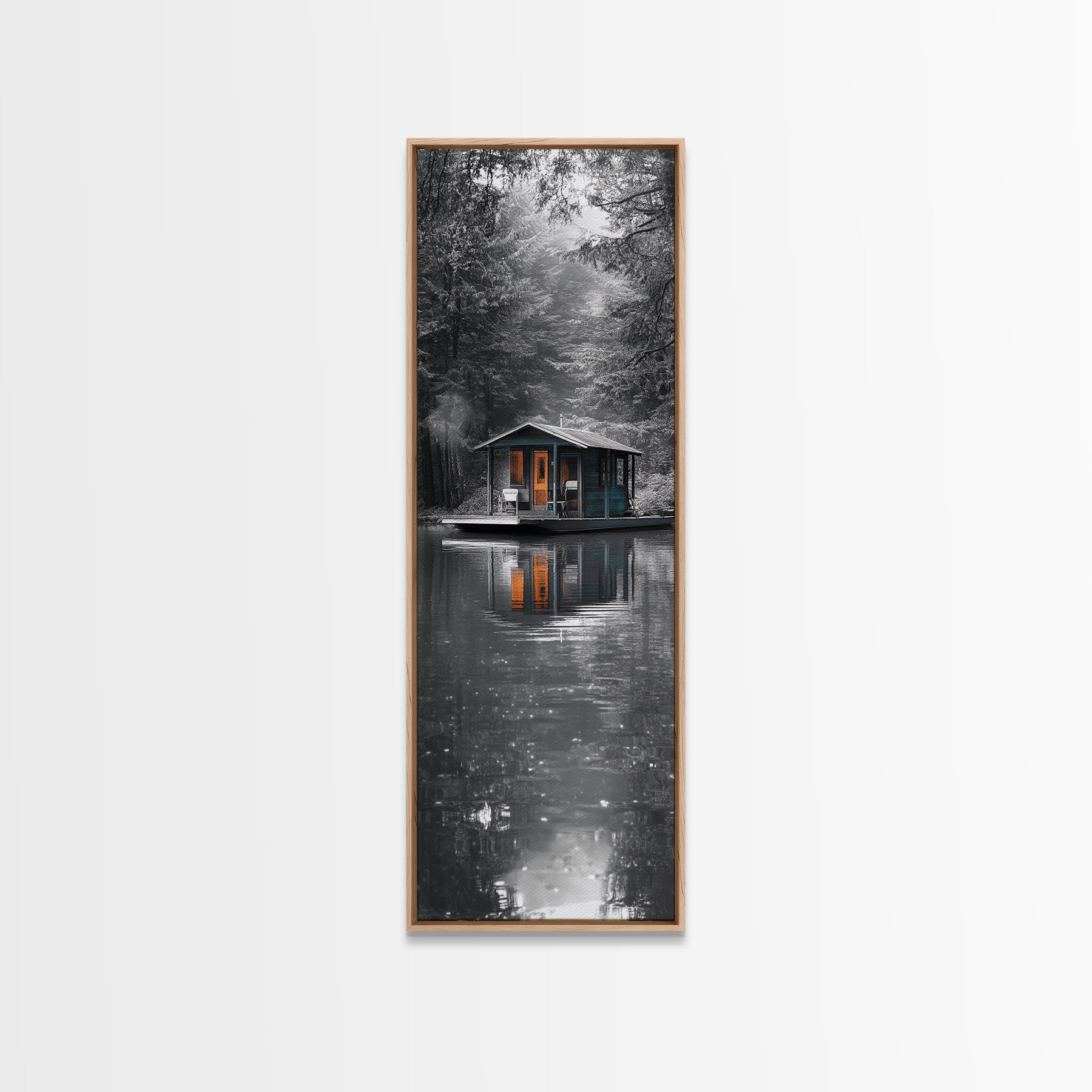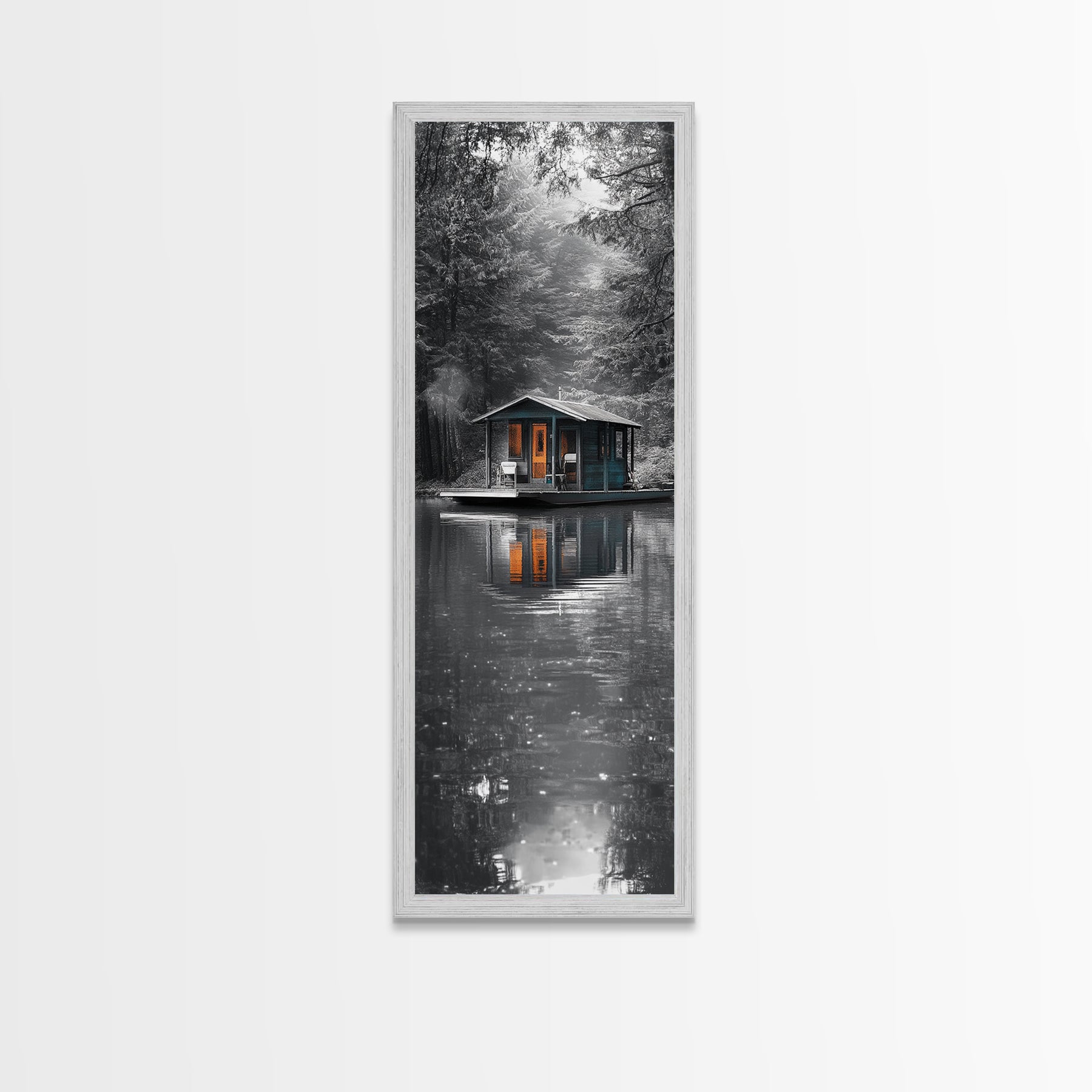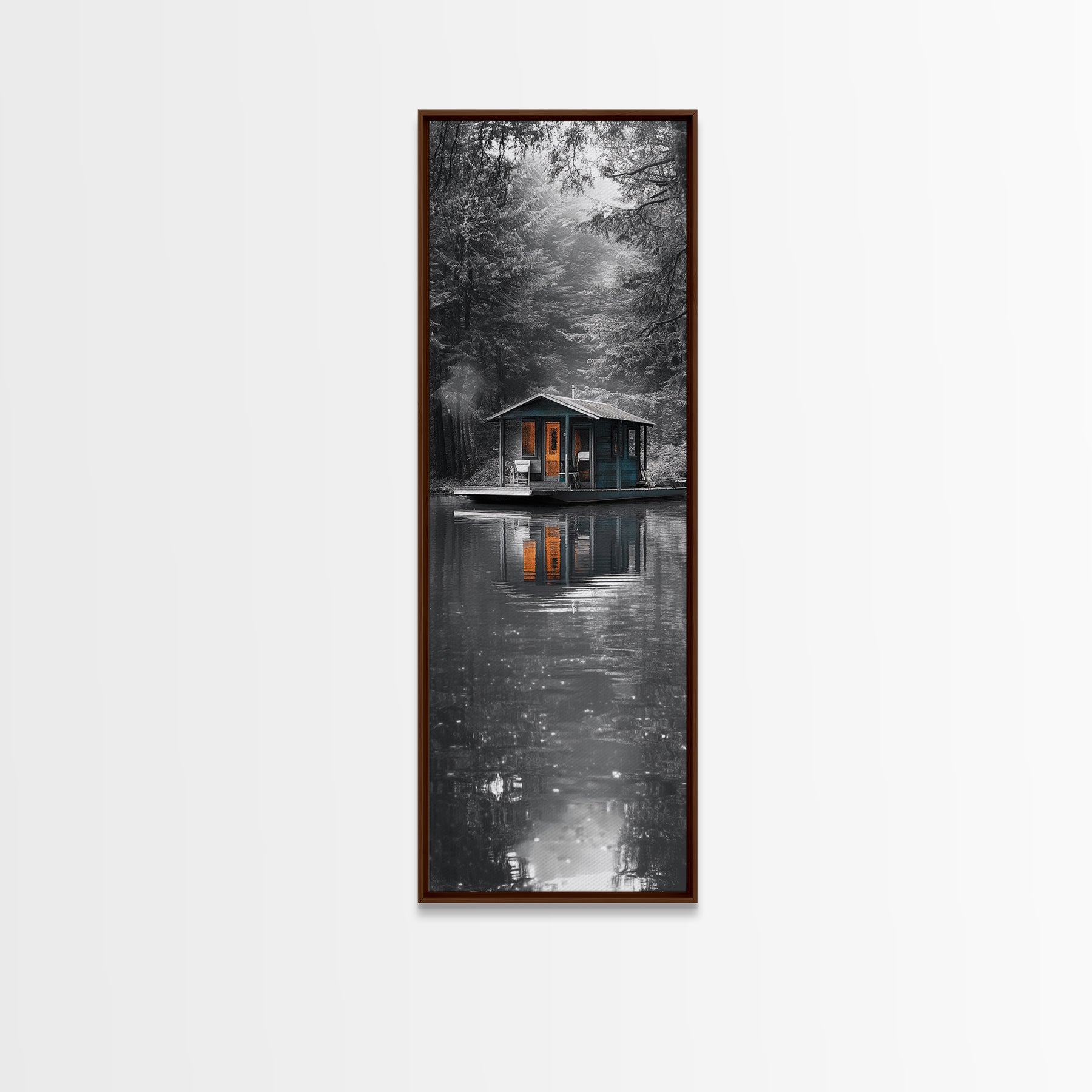 Cabin Reflection, Lake House Art, Cozy Forest Home, Canvas Print, Winter Wall Decor, Rustic Bedroom Artwork, Cabin Lover Gift