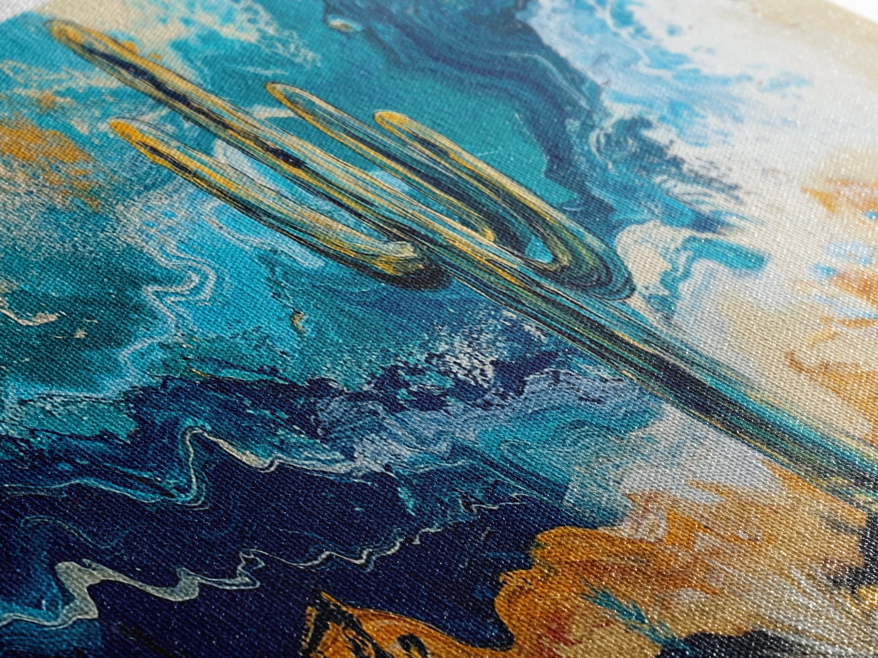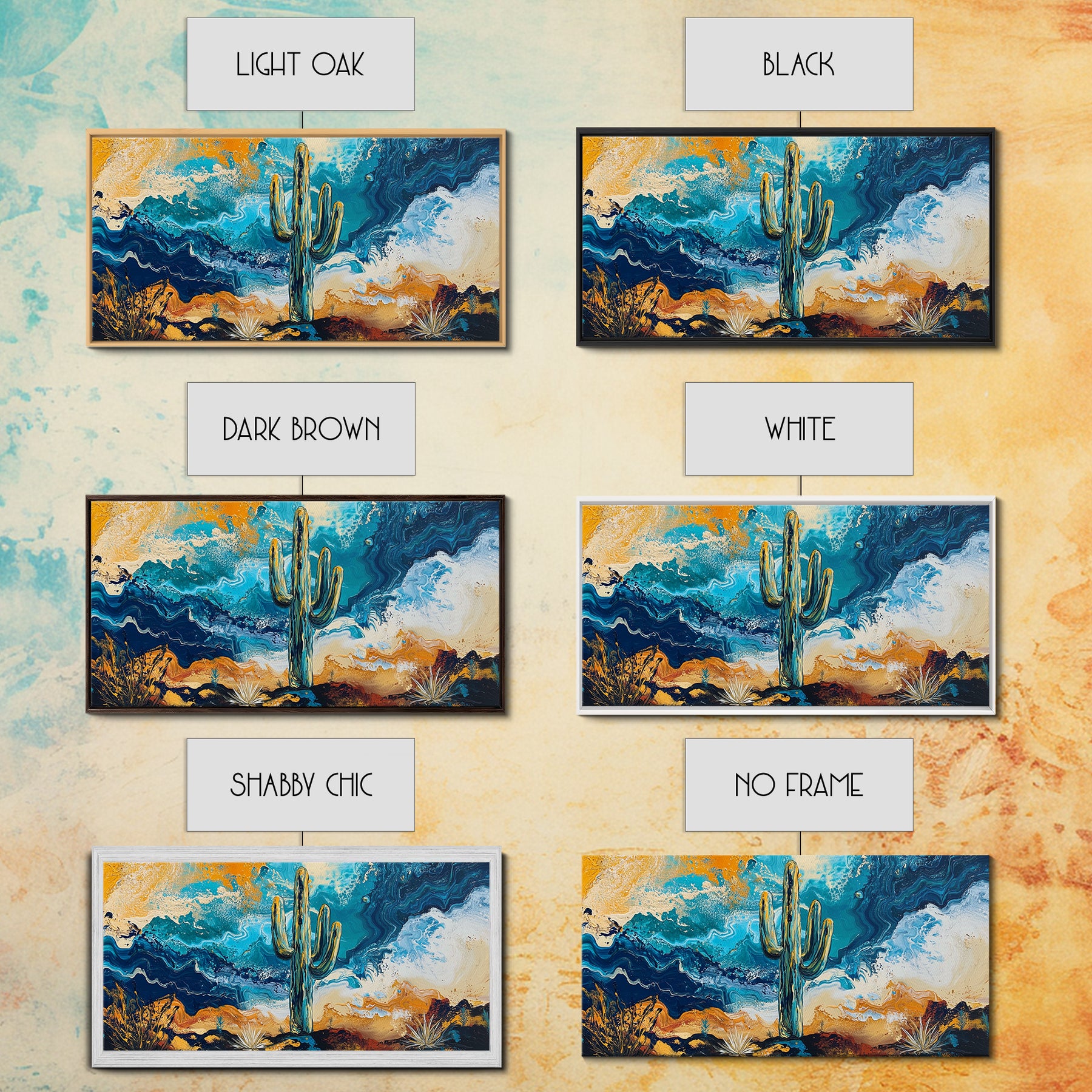 Cactus Desert Art, southwest wall art, Joshua tree art, moody art, rustic decor, extra wide art, panoramic art, Framed Canvas Print