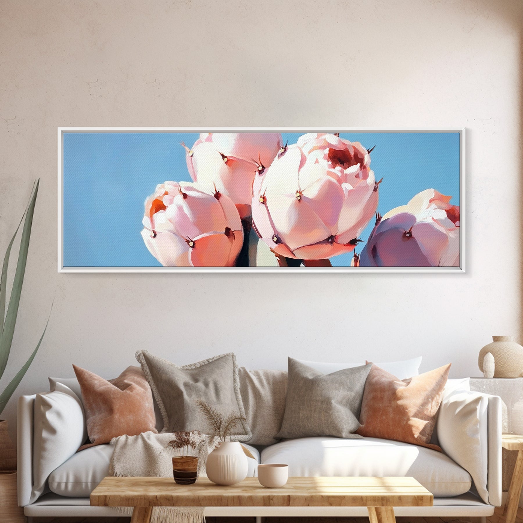 Cactus Flower Art, Desert Boho Decor, Minimalist Nature Painting, Southwest Framed Canvas Print, Rustic Wall Art, Earthy Home Aesthetic
