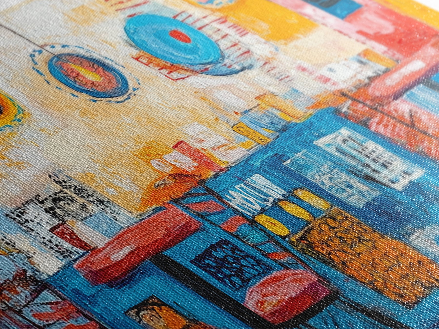 Most of our canvases are made in the USA, with the exception of canvases ordered with the light oak unstained frames, and any large canvases (24x48, 30x60, 16x48 and 20x60) ordered WITH a frame. These are temporarily made in and shipped from Europe, while we try to find a more consistent supplier in the USA.