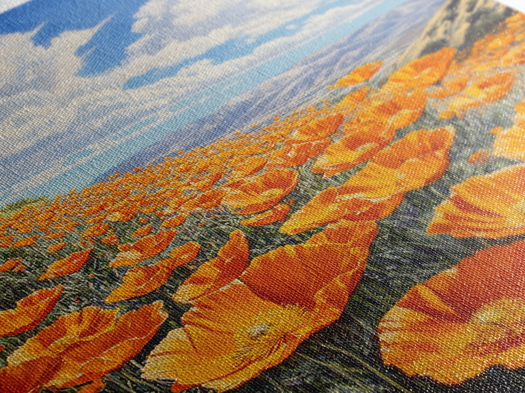 Most of our canvases are made in the USA, with the exception of canvases ordered with the light oak unstained frames, and any large canvases (24x48, 30x60, 16x48 and 20x60) ordered WITH a frame. These are temporarily made in and shipped from Europe, while we try to find a more consistent supplier in the USA.