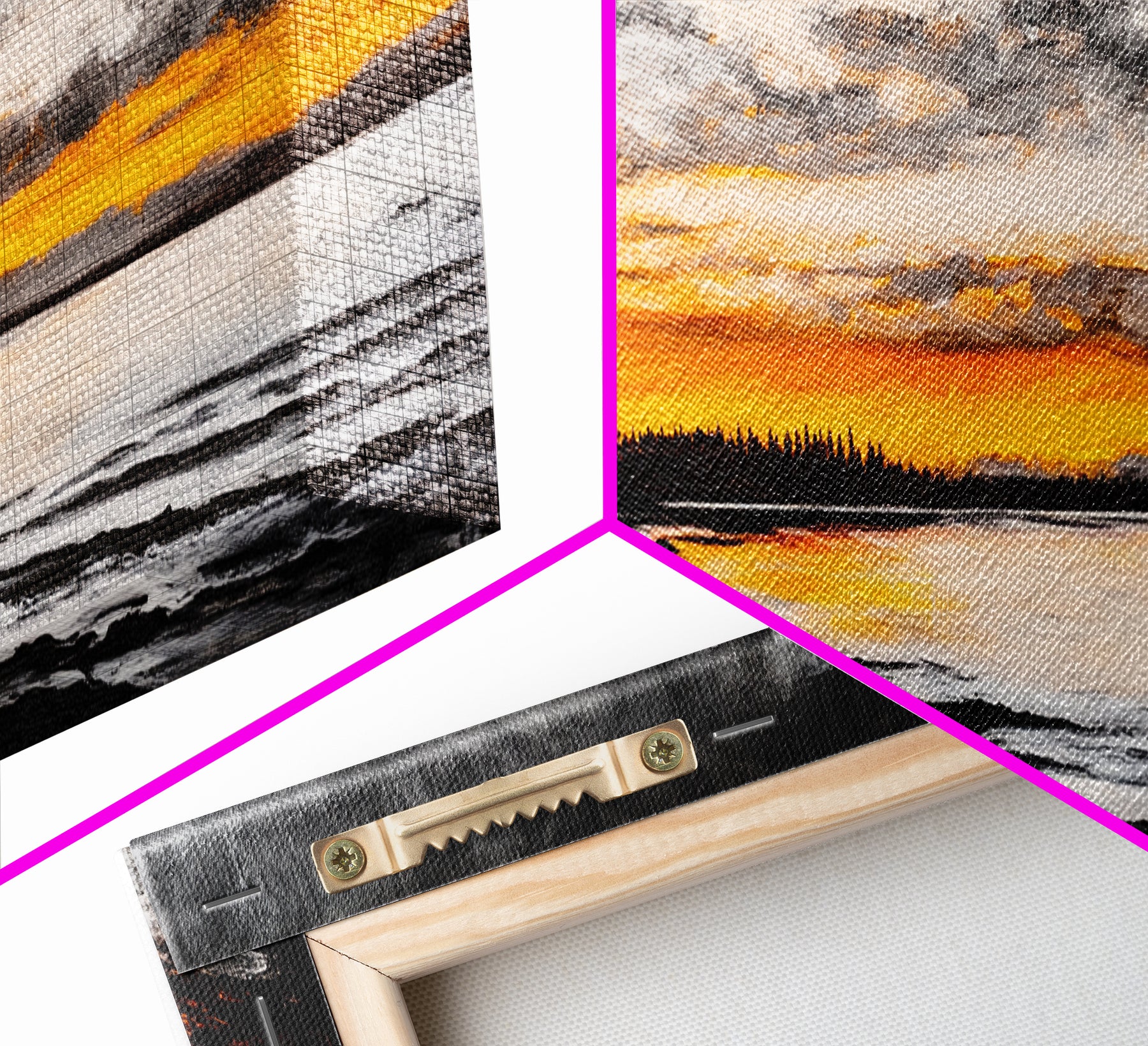 Hello and thank you for taking the time to view our modern high quality giclée artwork! We offer both posters and stretched canvas prints. Our posters are printed on Ultra Matte 60 lb / 230 GSM high quality photo paper, with a thickness of 10 mil. Our canvases are printed on museum grade 350 GSM canvas material with ECO friendly archival grade ink, then hand stretched and stapled over premium, FSC certified and shrink resistant frames. Designed and built to last a lifetime.