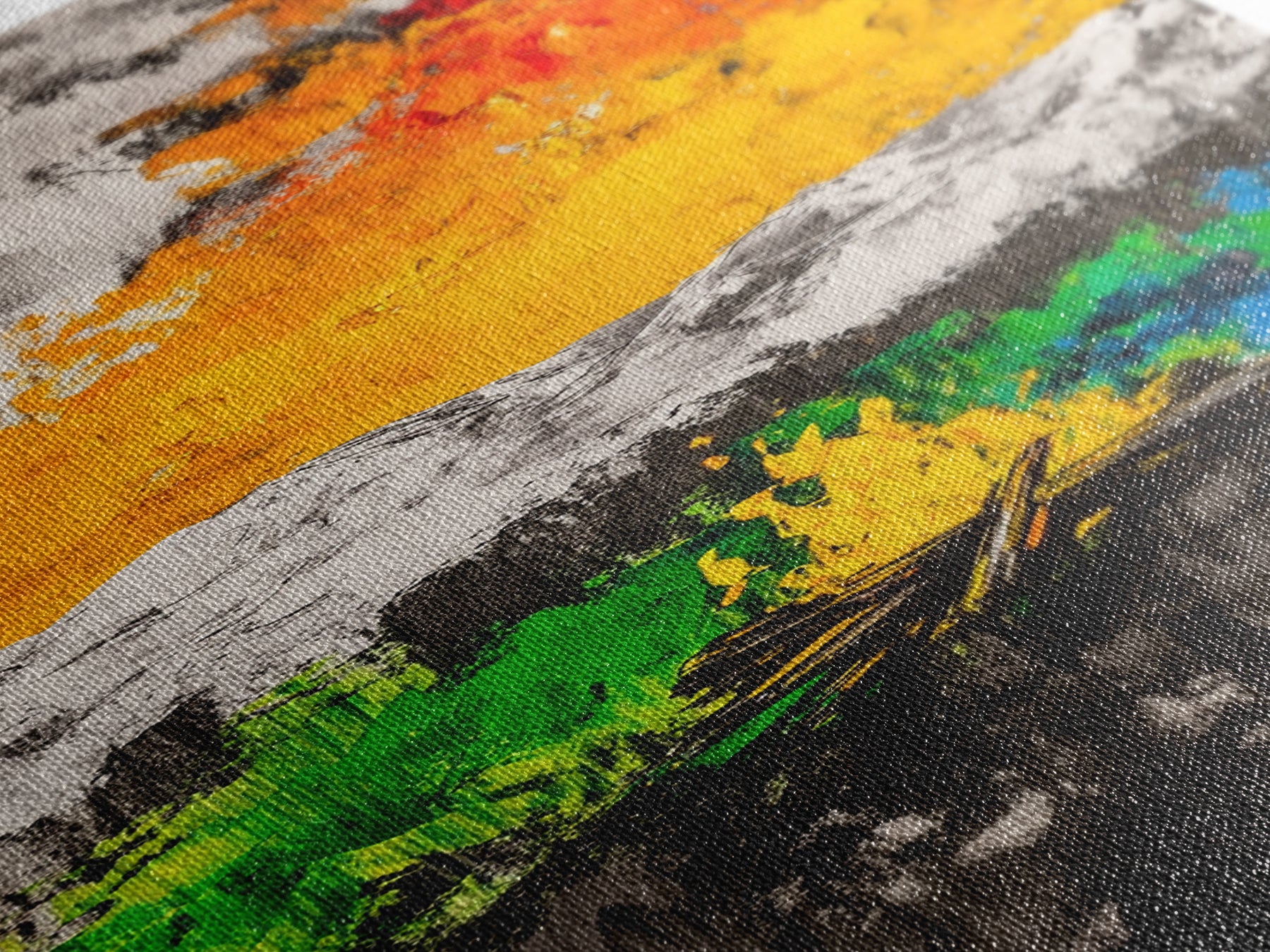 Most of our canvases are made in the USA, with the exception of canvases ordered with the light oak unstained frames, and any large canvases (24x48, 30x60, 16x48 and 20x60) ordered WITH a frame. These are temporarily made in and shipped from Europe, while we try to find a more consistent supplier in the USA.
