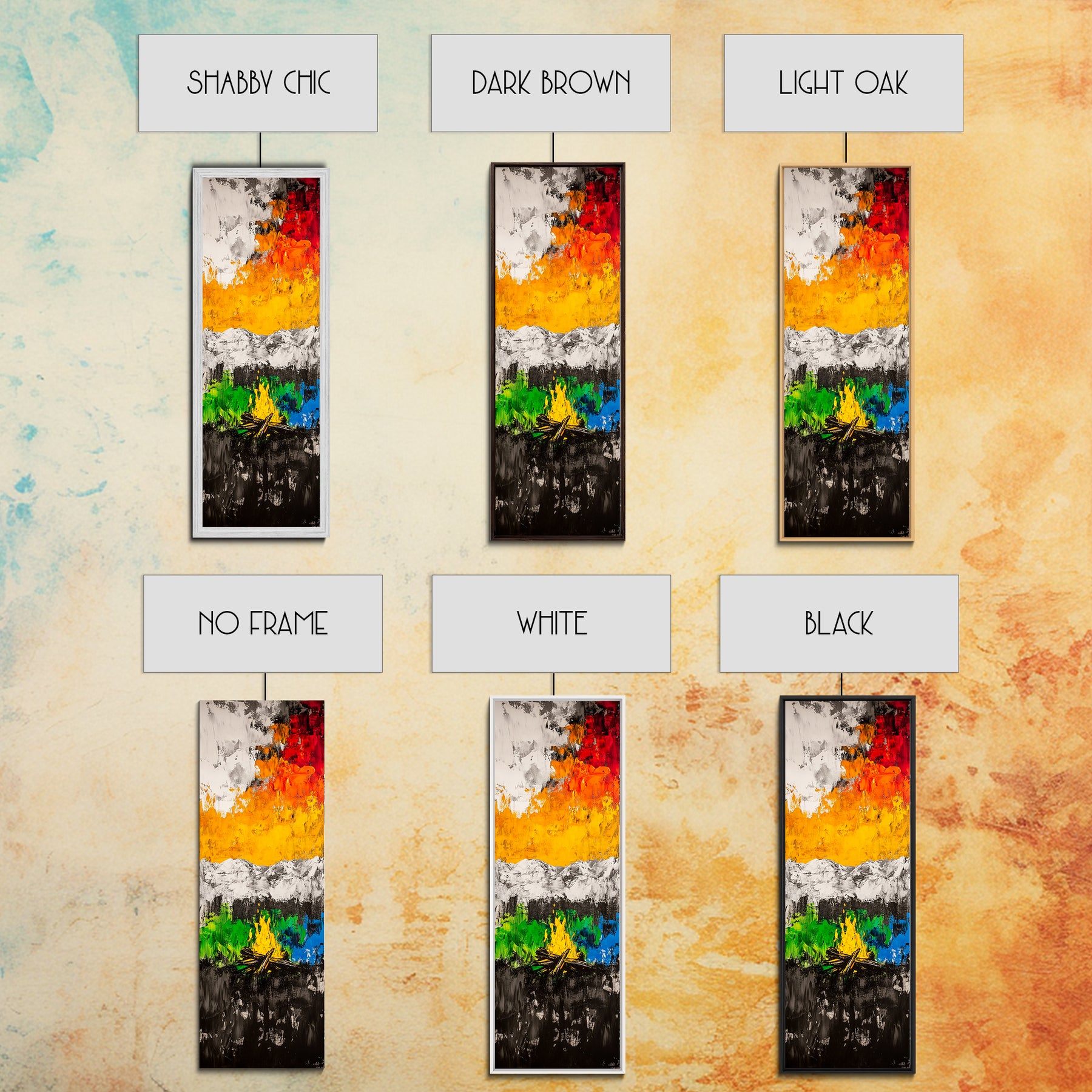 *Optional frames add a total of 1.5 inches to each dimension, for example a 10x20 canvas with a frame will be 11.5 by 21.5 inches total. All framed canvas are 1.5" total depth.