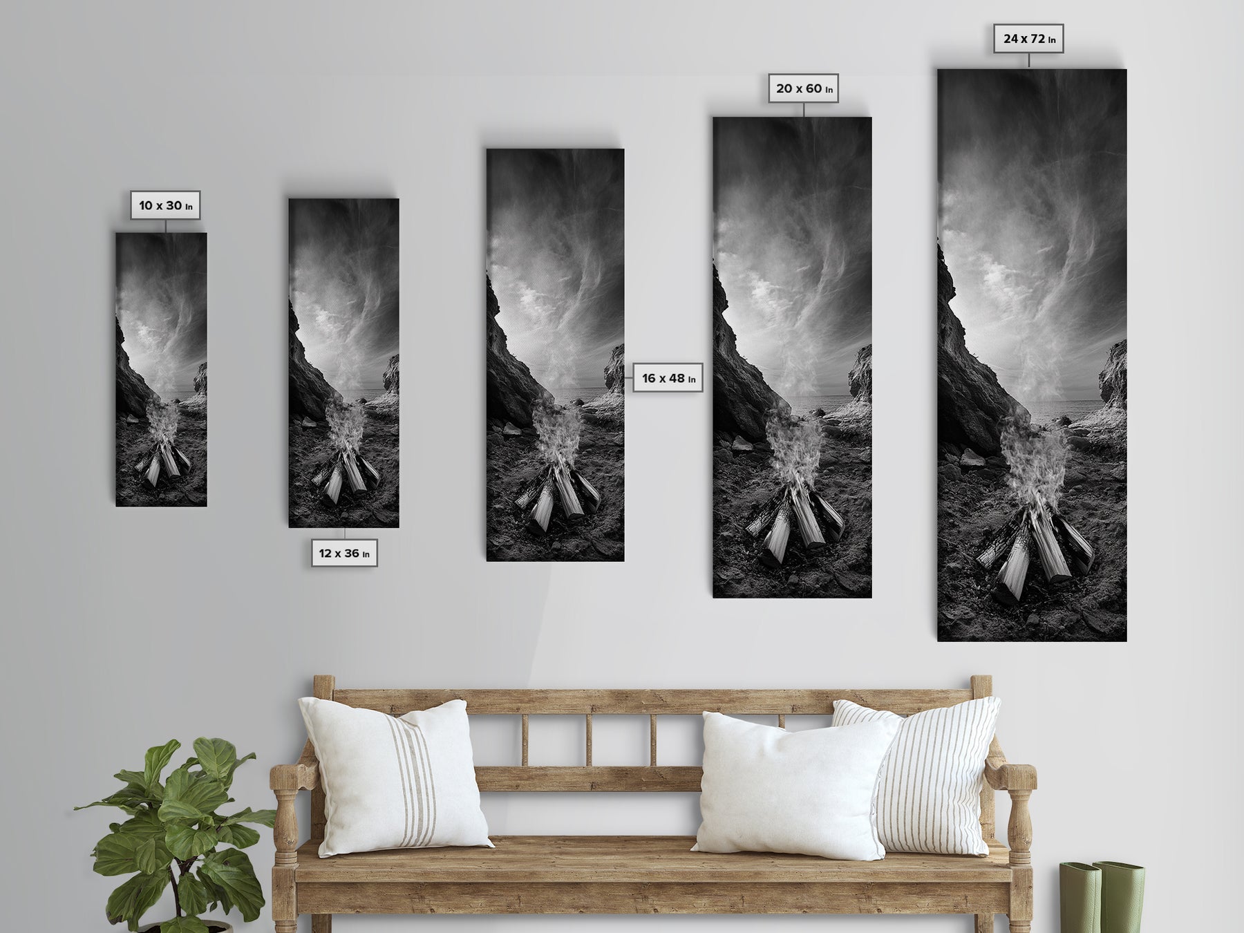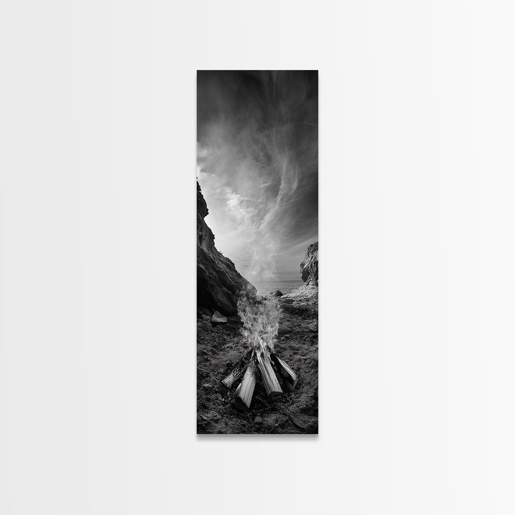 Campfire Smoke, Rocky Coastline, Moody Skies, Autumn Nature, Framed Canvas Print, Rustic Wall Decor, Cabin Aesthetic, Living Room Art