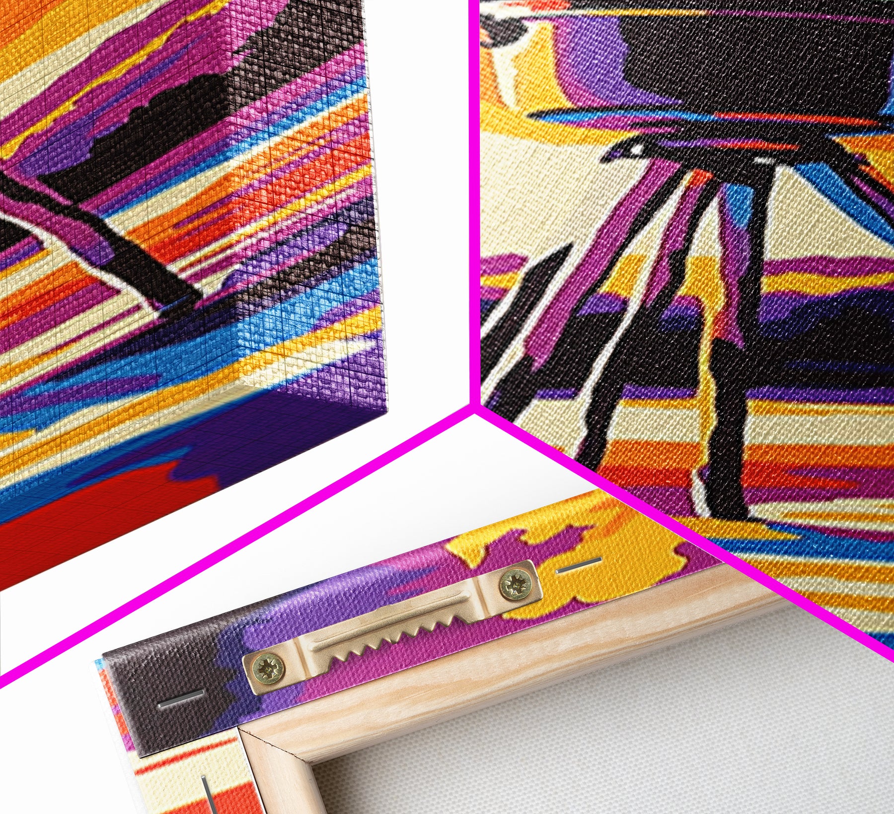 Hello and thank you for taking the time to view our modern high quality giclée artwork! We offer both posters and stretched canvas prints. Our posters are printed on Ultra Matte 60 lb / 230 GSM high quality photo paper, with a thickness of 10 mil. Our canvases are printed on museum grade 350 GSM canvas material with ECO friendly archival grade ink, then hand stretched and stapled over premium, FSC certified and shrink resistant frames. Designed and built to last a lifetime.
