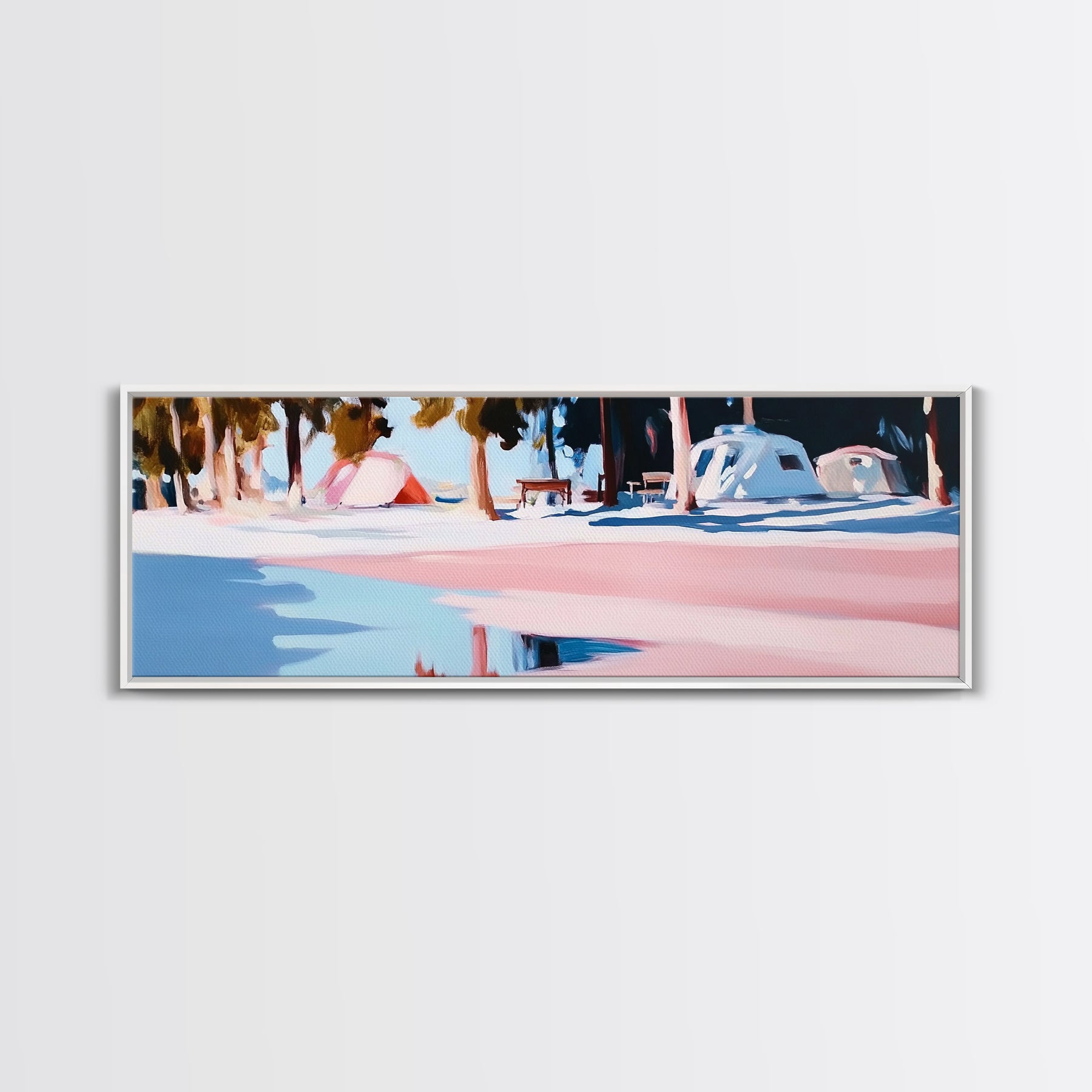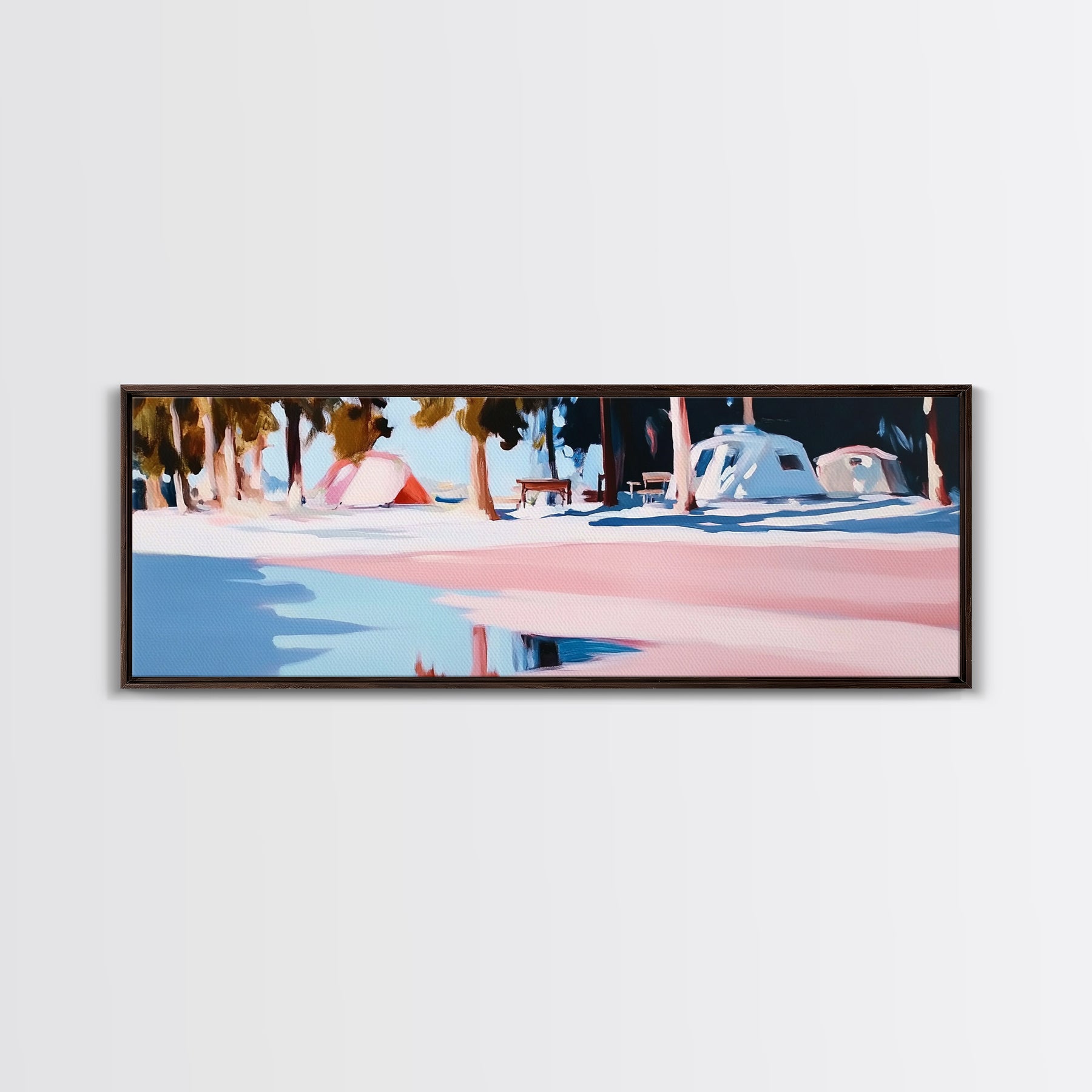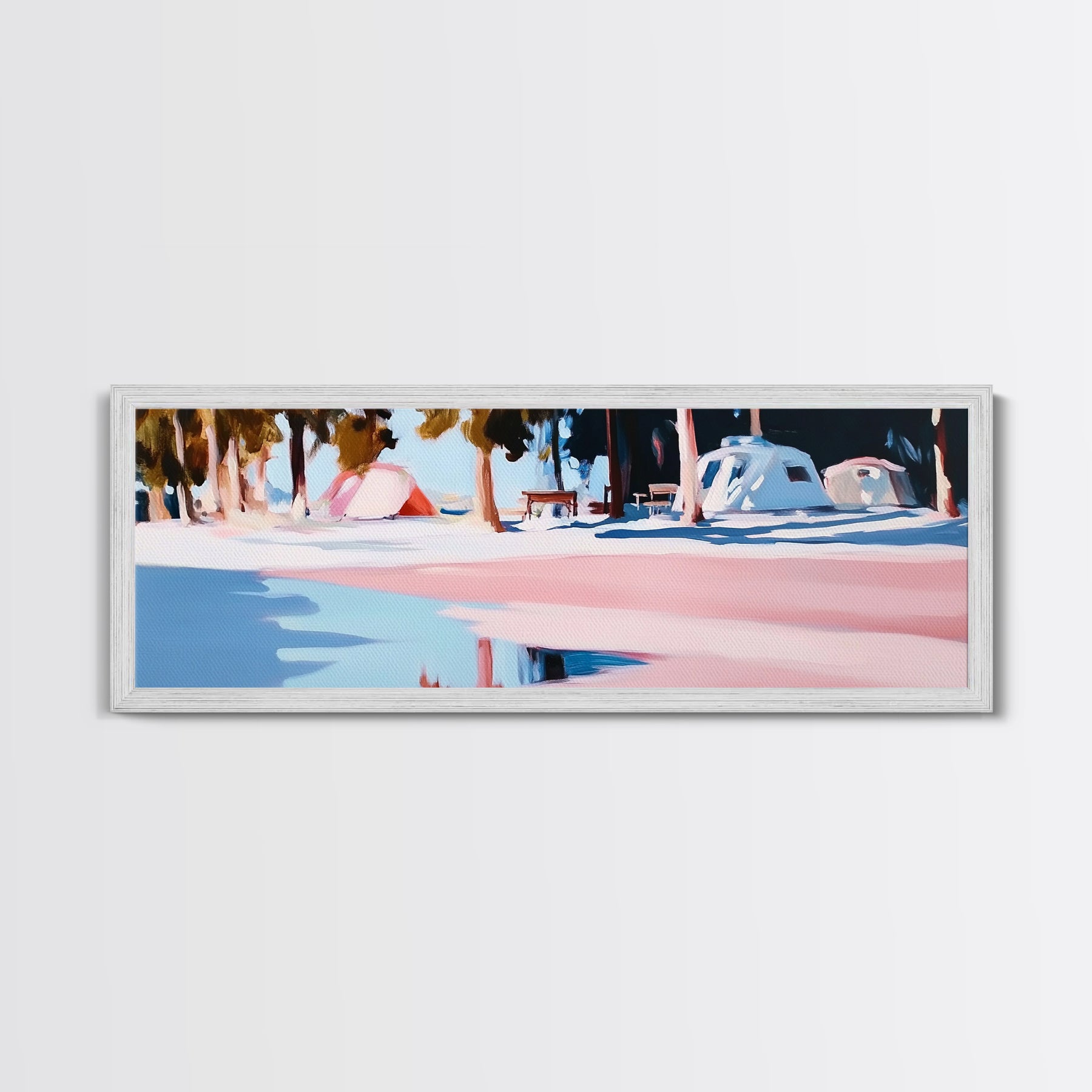 Camping Scene, Nature Landscape, Outdoor Adventure Art, Framed Canvas Print, Rustic Cabin Decor, National Park Wall Art, Minimalist Art