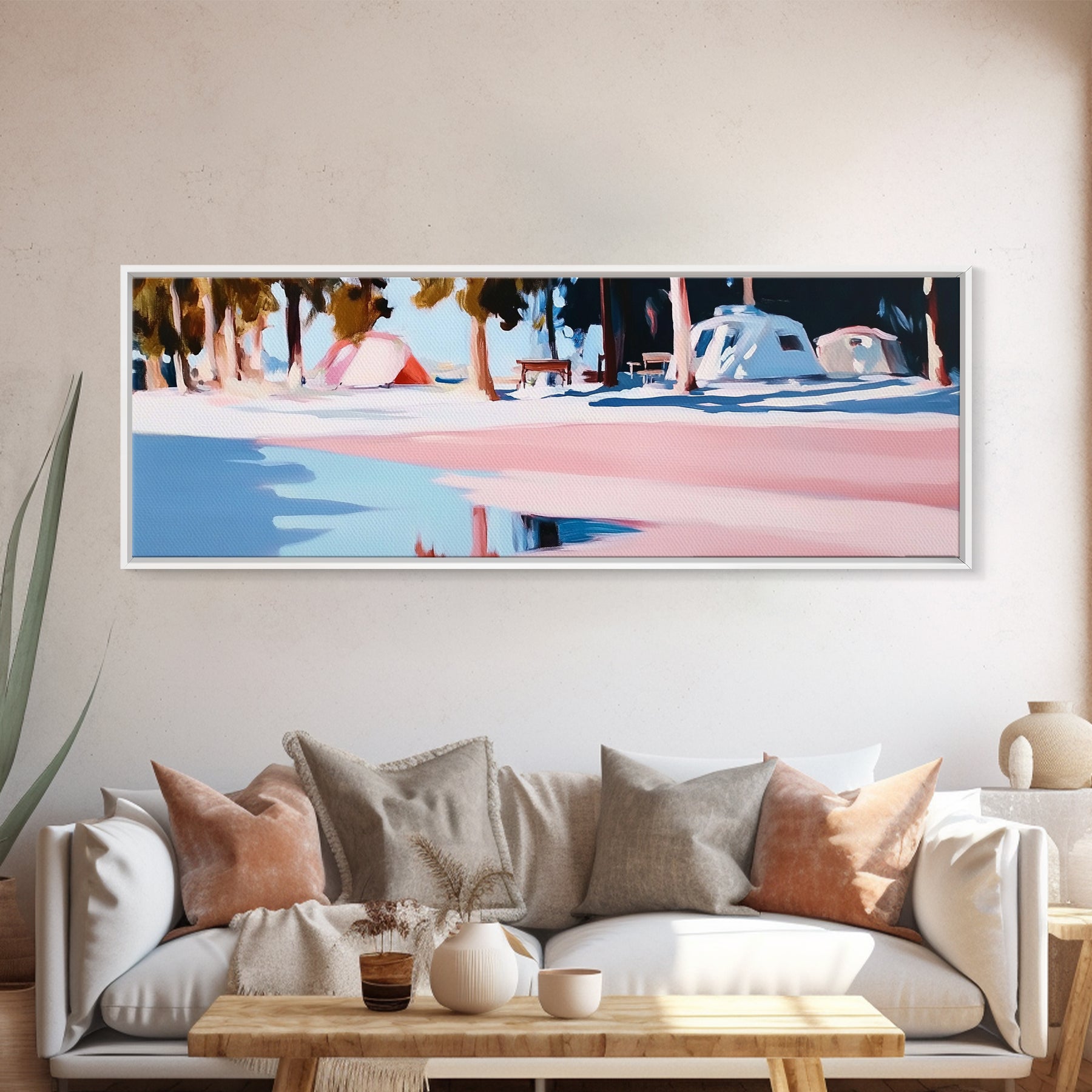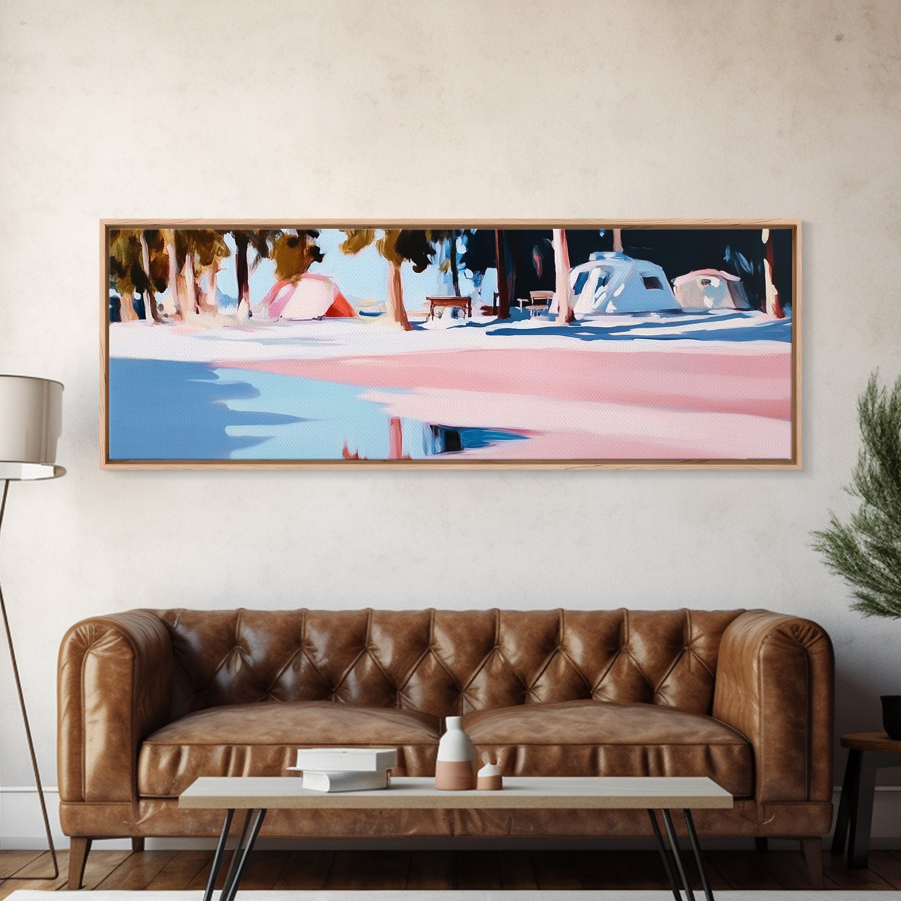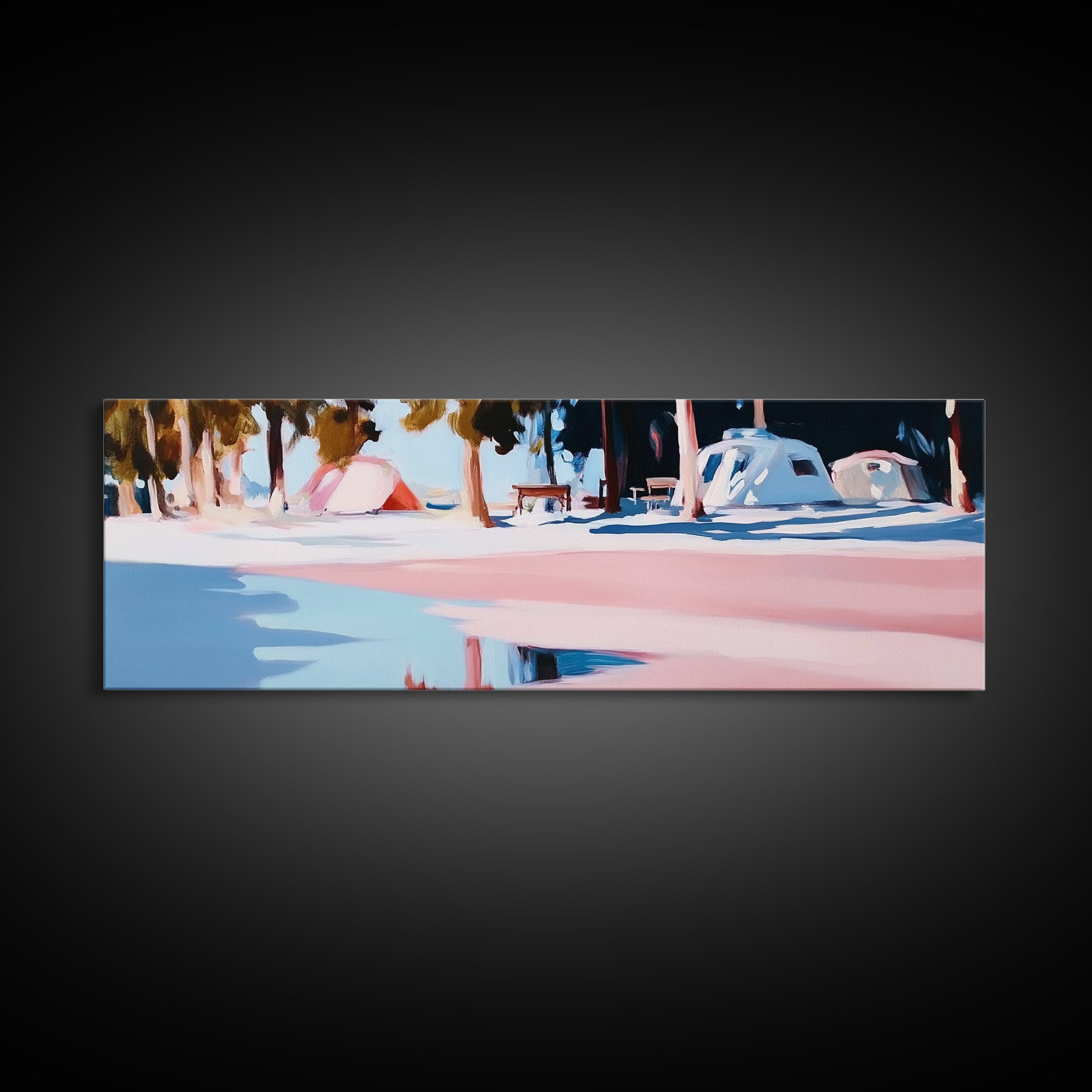 Camping Scene, Nature Landscape, Outdoor Adventure Art, Framed Canvas Print, Rustic Cabin Decor, National Park Wall Art, Minimalist Art
