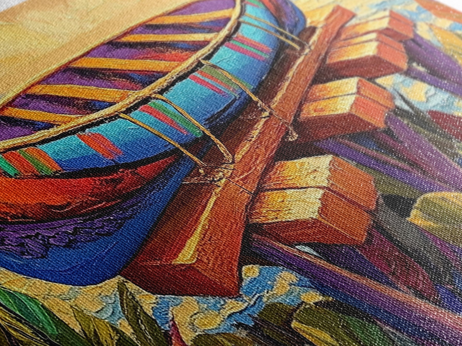 Most of our canvases are made in the USA, with the exception of canvases ordered with the light oak unstained frames, and any large canvases (24x48, 30x60, 16x48 and 20x60) ordered WITH a frame. These are temporarily made in and shipped from Europe, while we try to find a more consistent supplier in the USA.