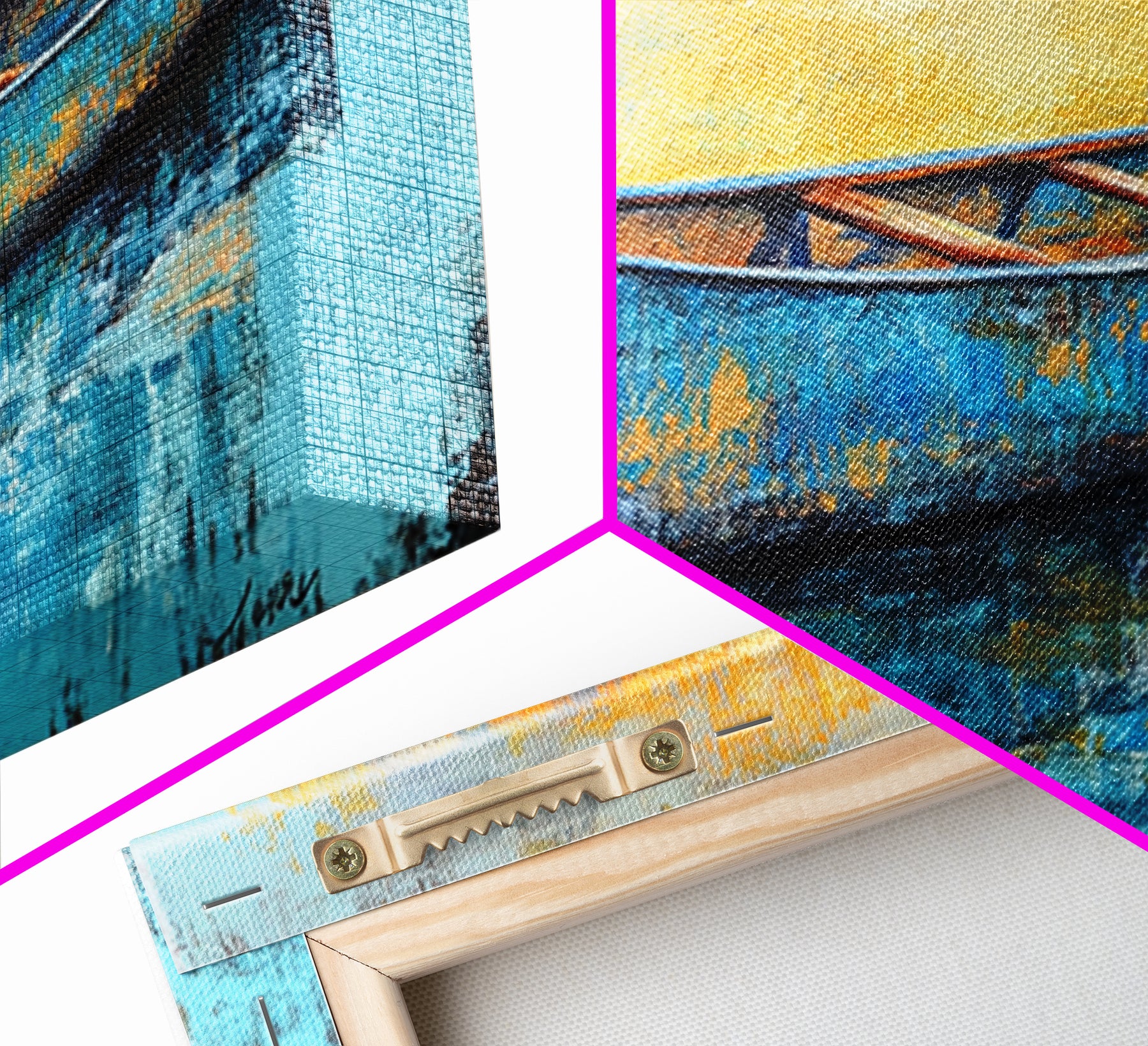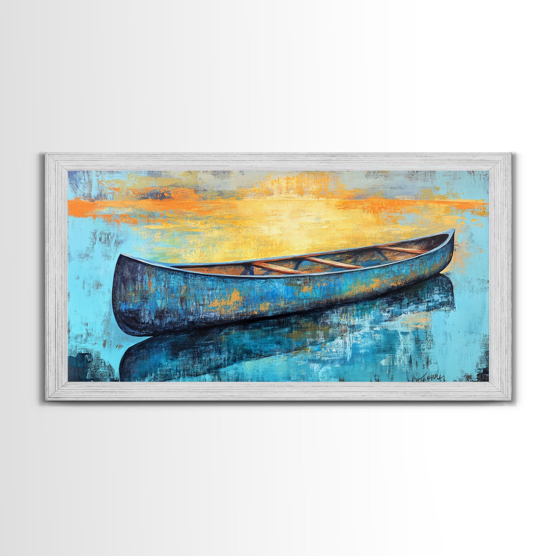Canoe, Lake Art, Fly Fishing Art, Rustic Wall Art, Coastal Painting, Above Couch Art, Horizontal Wall Art, Framed Canvas Print, Nautical Decor