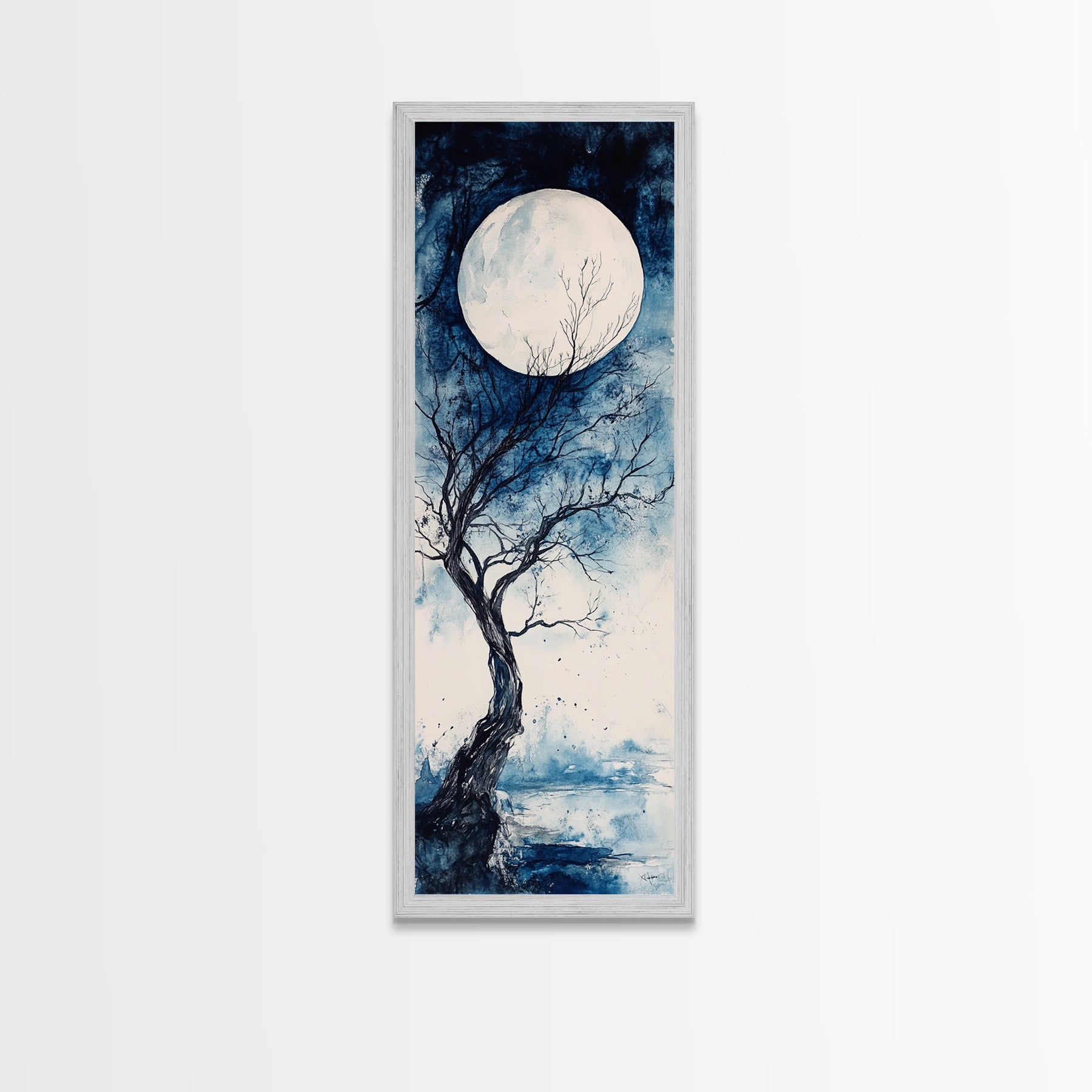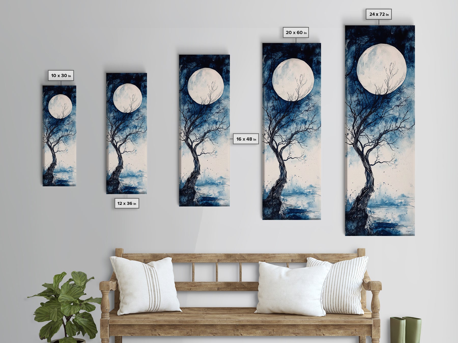 Canvas Print Full Moon with Tree Art, Dark Romance Rustic Wall Decor, Unique Above Couch Art, Moody Bedroom Decor Gift Idea