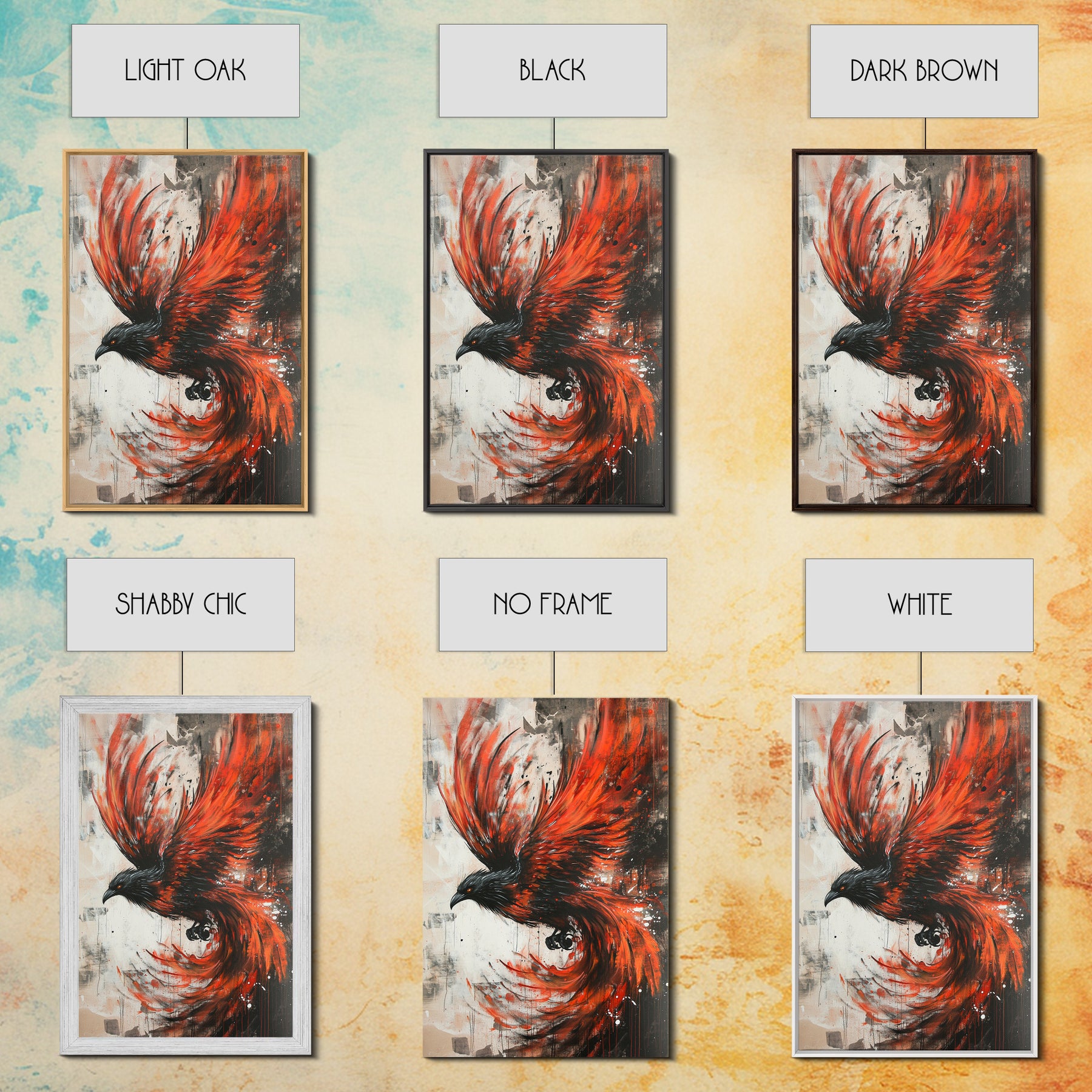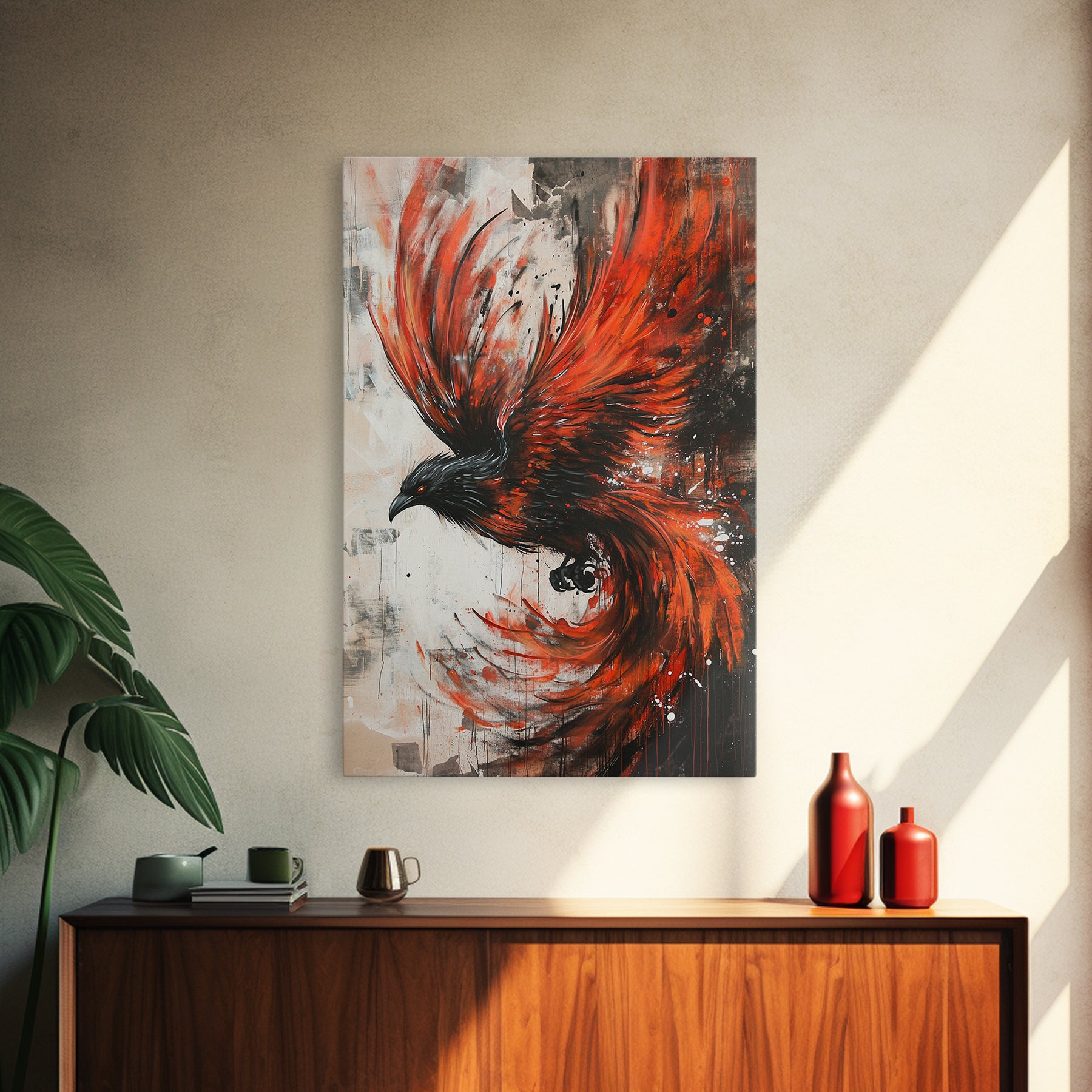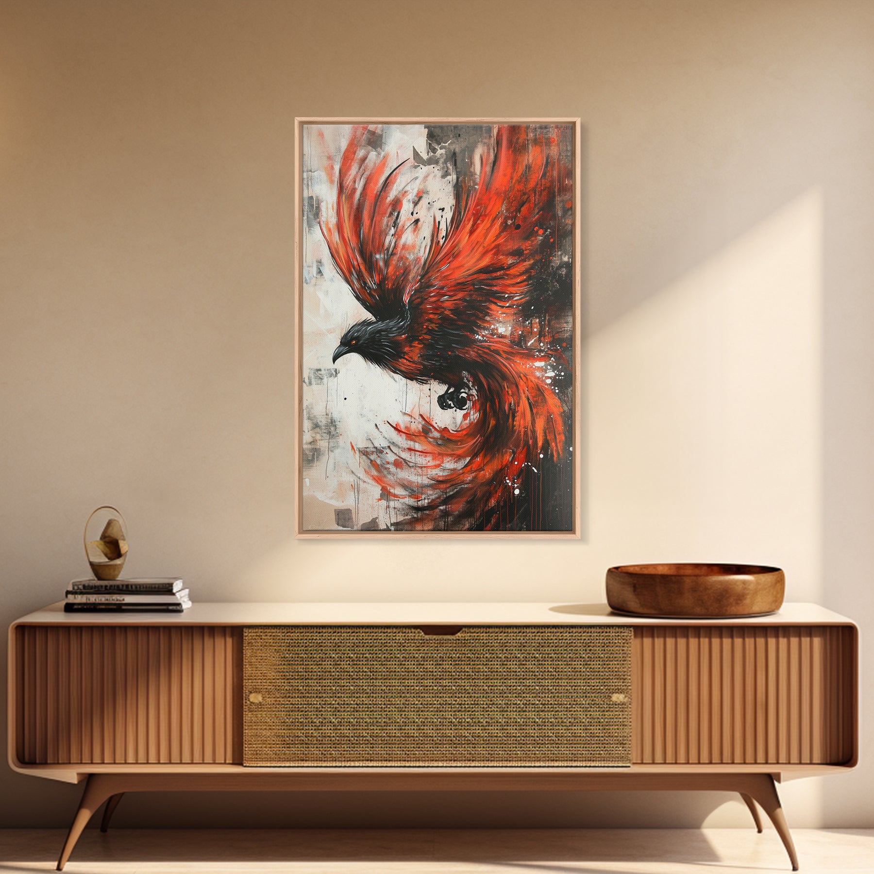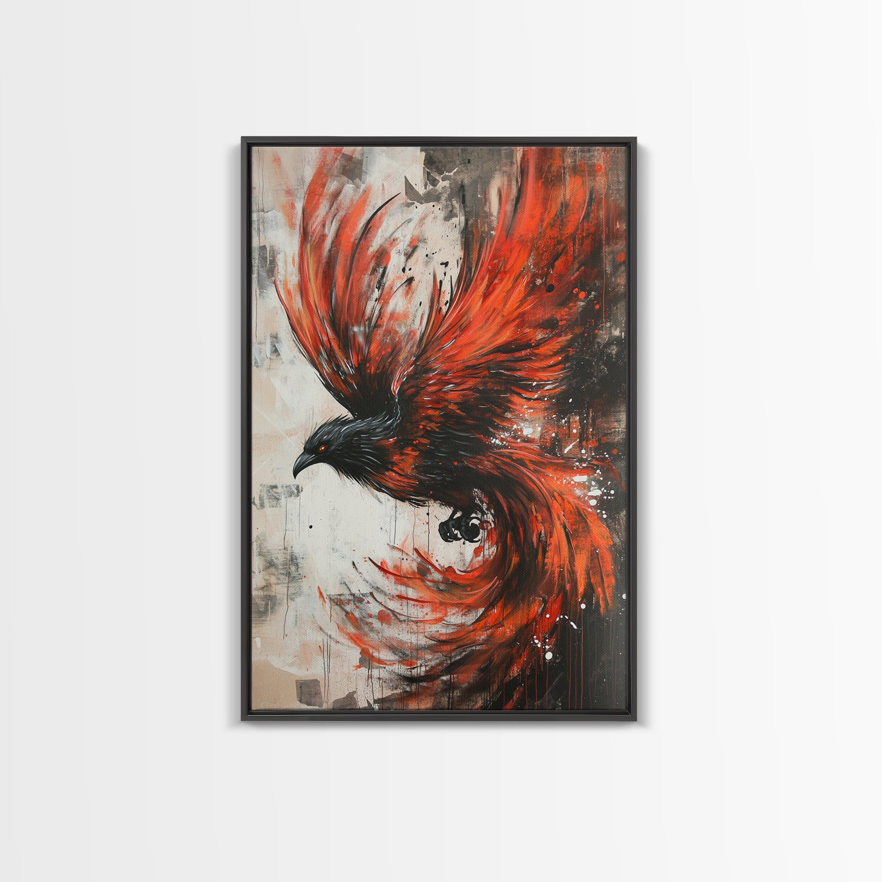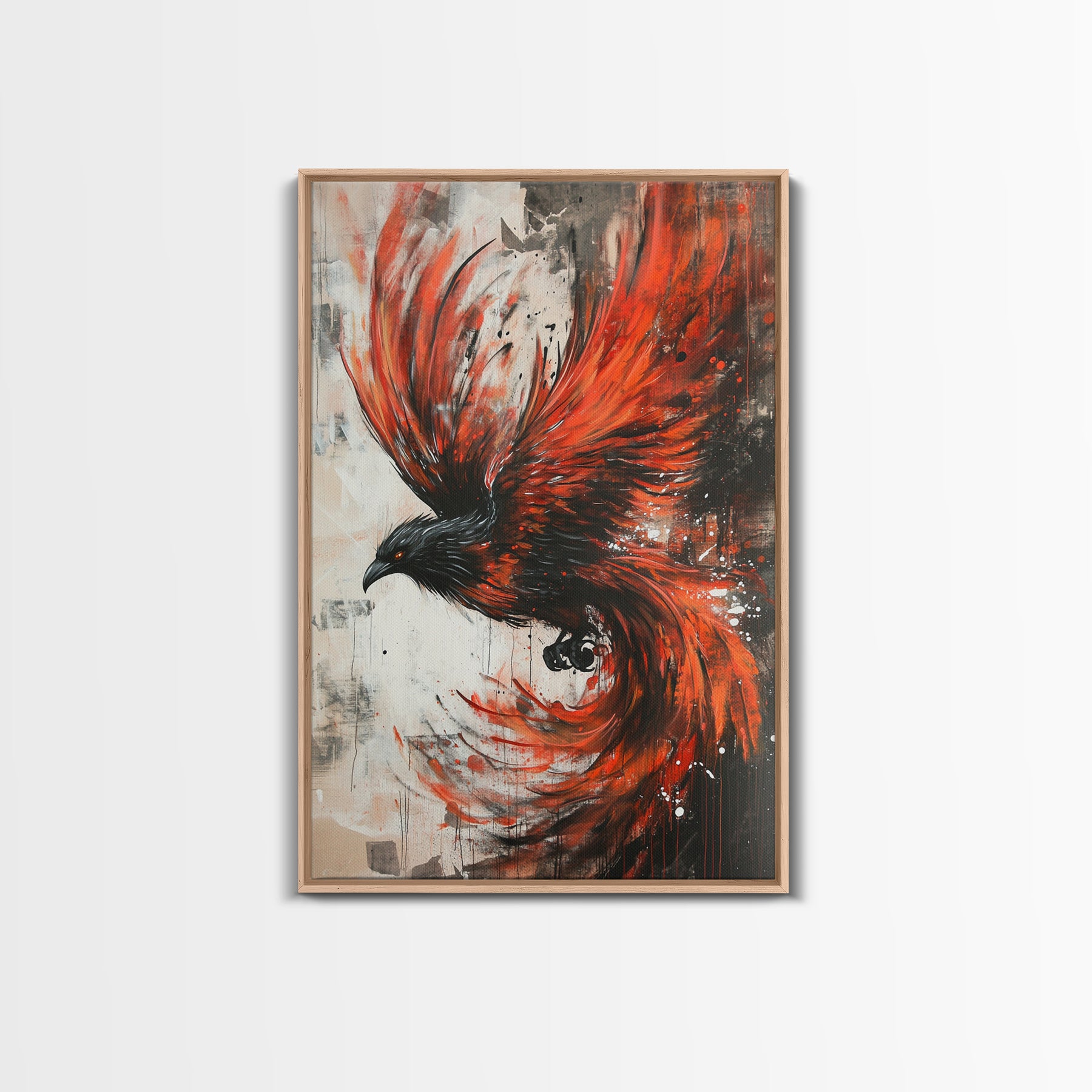 Canvas Print Of a Phoenix Painting, Wood Framed Art, Grunge Decor, Loft Art, Phoenix With Flaming Wings Wall Art