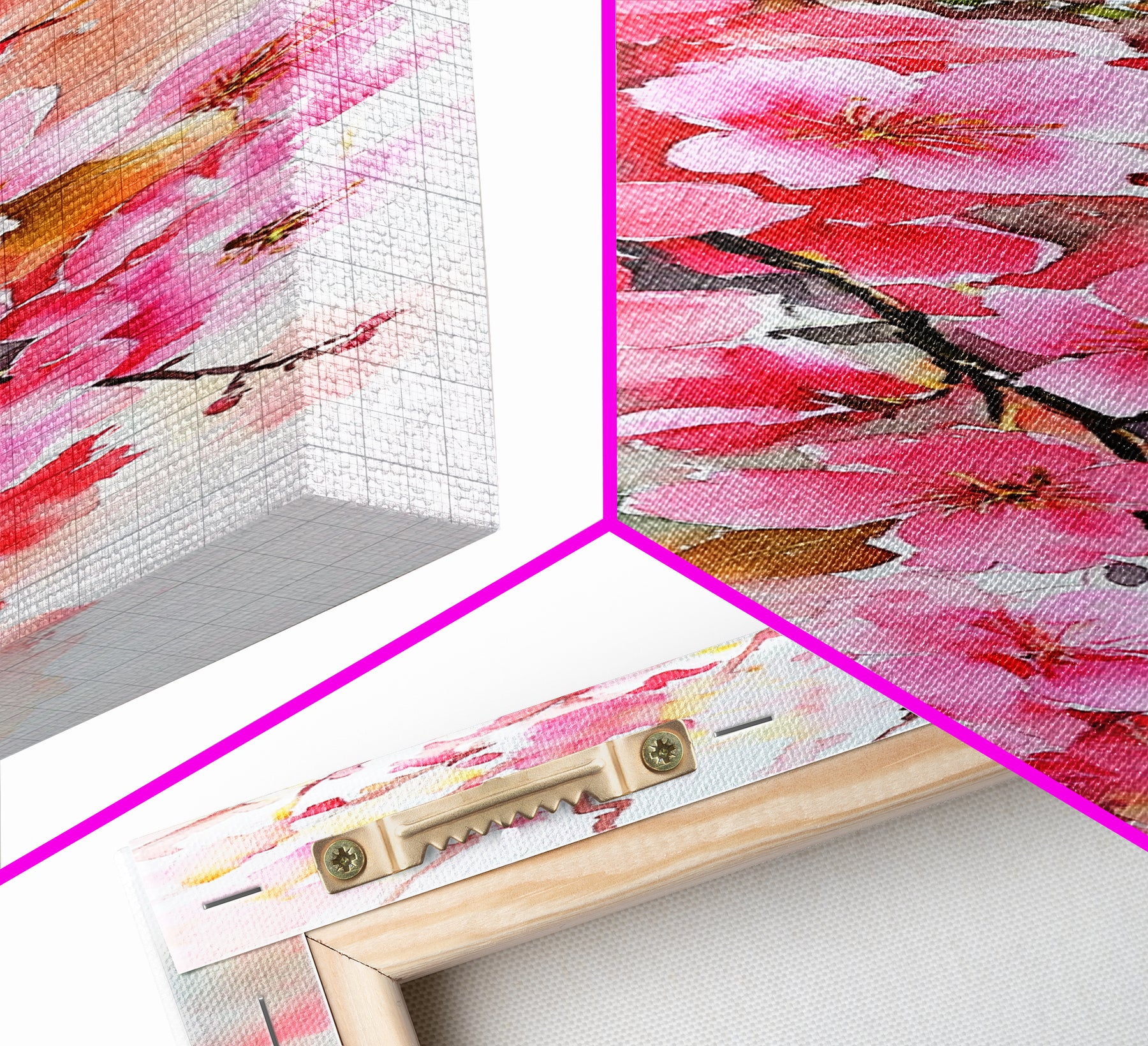Canvas Print Pink Cherry Blossom Art, Japanese Inspired Wall Decor, Romantic Botanical Artwork, Gift Idea for Bedroom or Living Room
