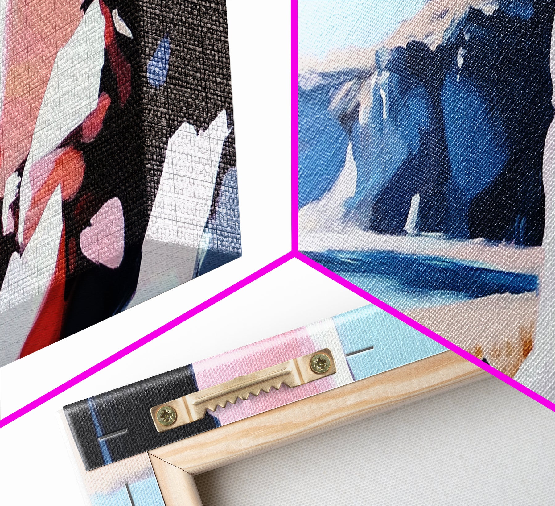 Hello and thank you for taking the time to view our modern high quality giclée artwork! We offer both posters and stretched canvas prints. Our posters are printed on Ultra Matte 60 lb / 230 GSM high quality photo paper, with a thickness of 10 mil. Our canvases are printed on museum grade 350 GSM canvas material with ECO friendly archival grade ink, then hand stretched and stapled over premium, FSC certified and shrink resistant frames. Designed and built to last a lifetime.