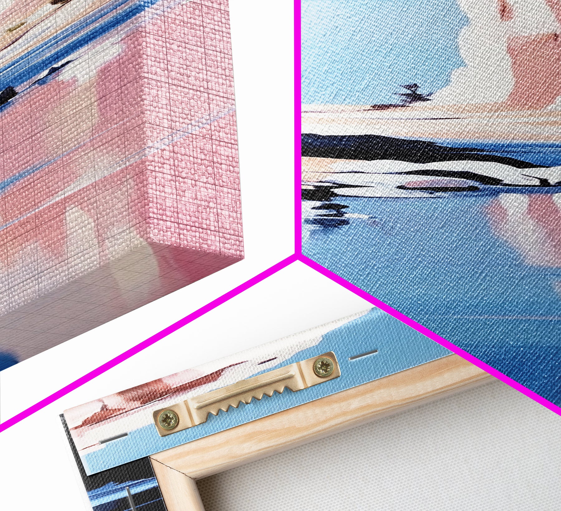 Hello and thank you for taking the time to view our modern high quality giclée artwork! We offer both posters and stretched canvas prints. Our posters are printed on Ultra Matte 60 lb / 230 GSM high quality photo paper, with a thickness of 10 mil. Our canvases are printed on museum grade 350 GSM canvas material with ECO friendly archival grade ink, then hand stretched and stapled over premium, FSC certified and shrink resistant frames. Designed and built to last a lifetime.