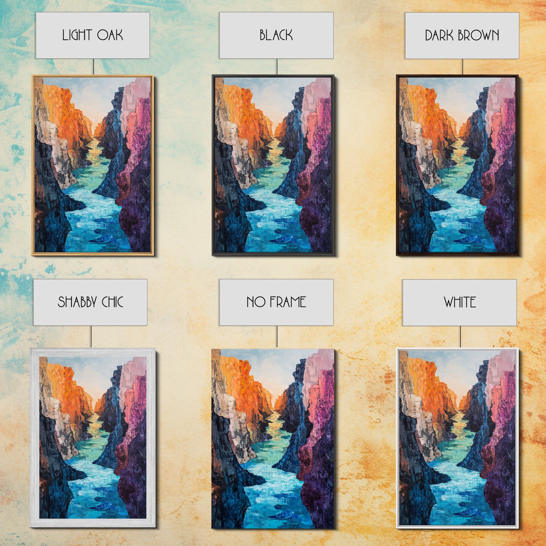 *Optional frames add a total of 1.5 inches to each dimension, for example a 10x20 canvas with a frame will be 11.5 by 21.5 inches total. All framed canvas are 1.5" total depth.