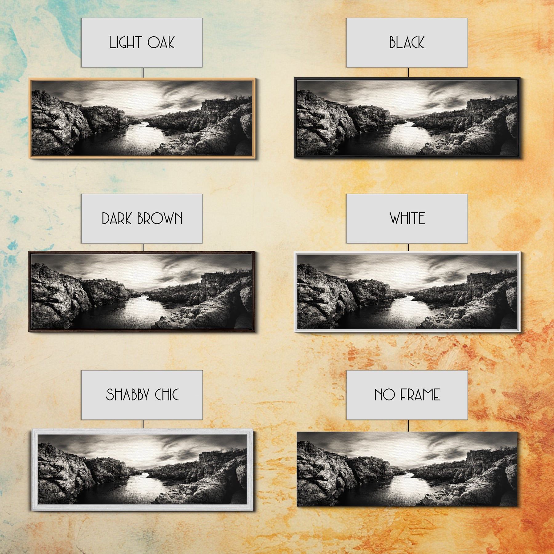 *Optional frames add a total of 1.5 inches to each dimension, for example a 10x20 canvas with a frame will be 11.5 by 21.5 inches total. All framed canvas are 1.5" total depth.