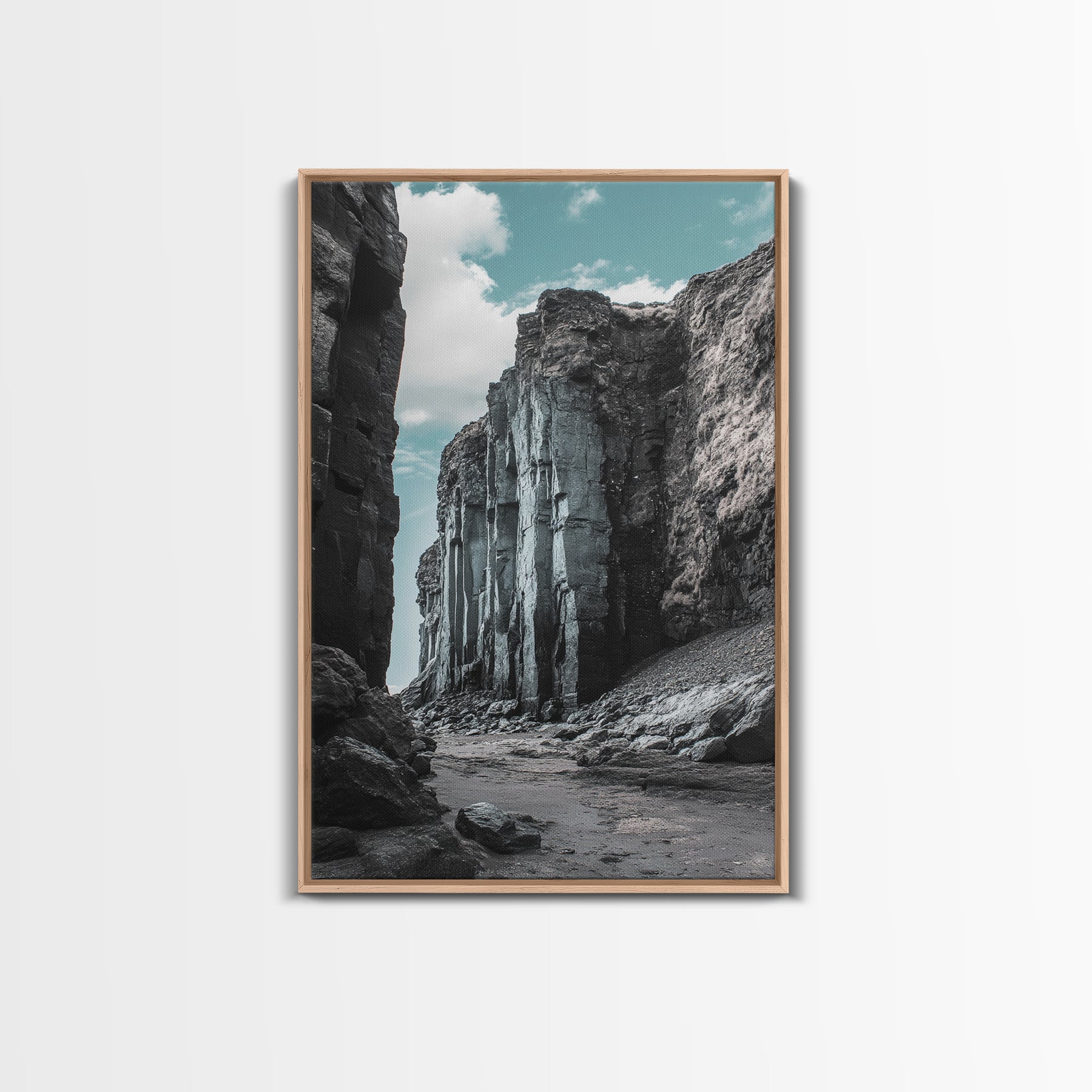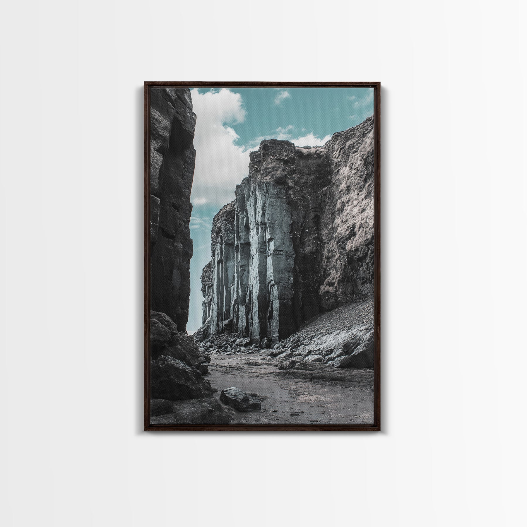 Canyon Rocks, Earth Tones, Cliff Path, Scenic Sky, Framed Canvas Print modern rustic art, desert wall decor, hallway landscape canvas