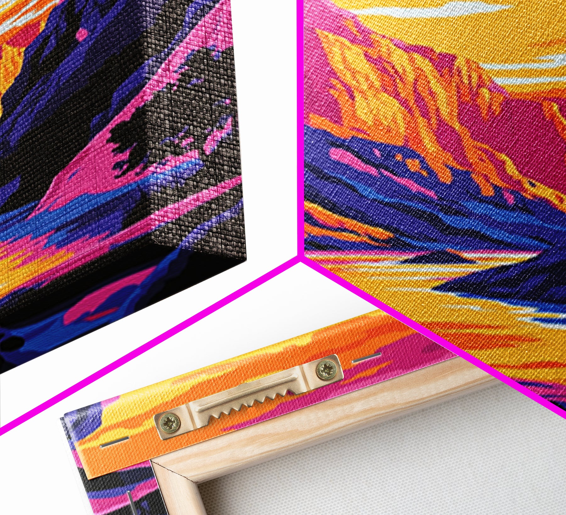 Hello and thank you for taking the time to view our modern high quality giclée artwork! We offer both posters and stretched canvas prints. Our posters are printed on Ultra Matte 60 lb / 230 GSM high quality photo paper, with a thickness of 10 mil. Our canvases are printed on museum grade 350 GSM canvas material with ECO friendly archival grade ink, then hand stretched and stapled over premium, FSC certified and shrink resistant frames. Designed and built to last a lifetime.