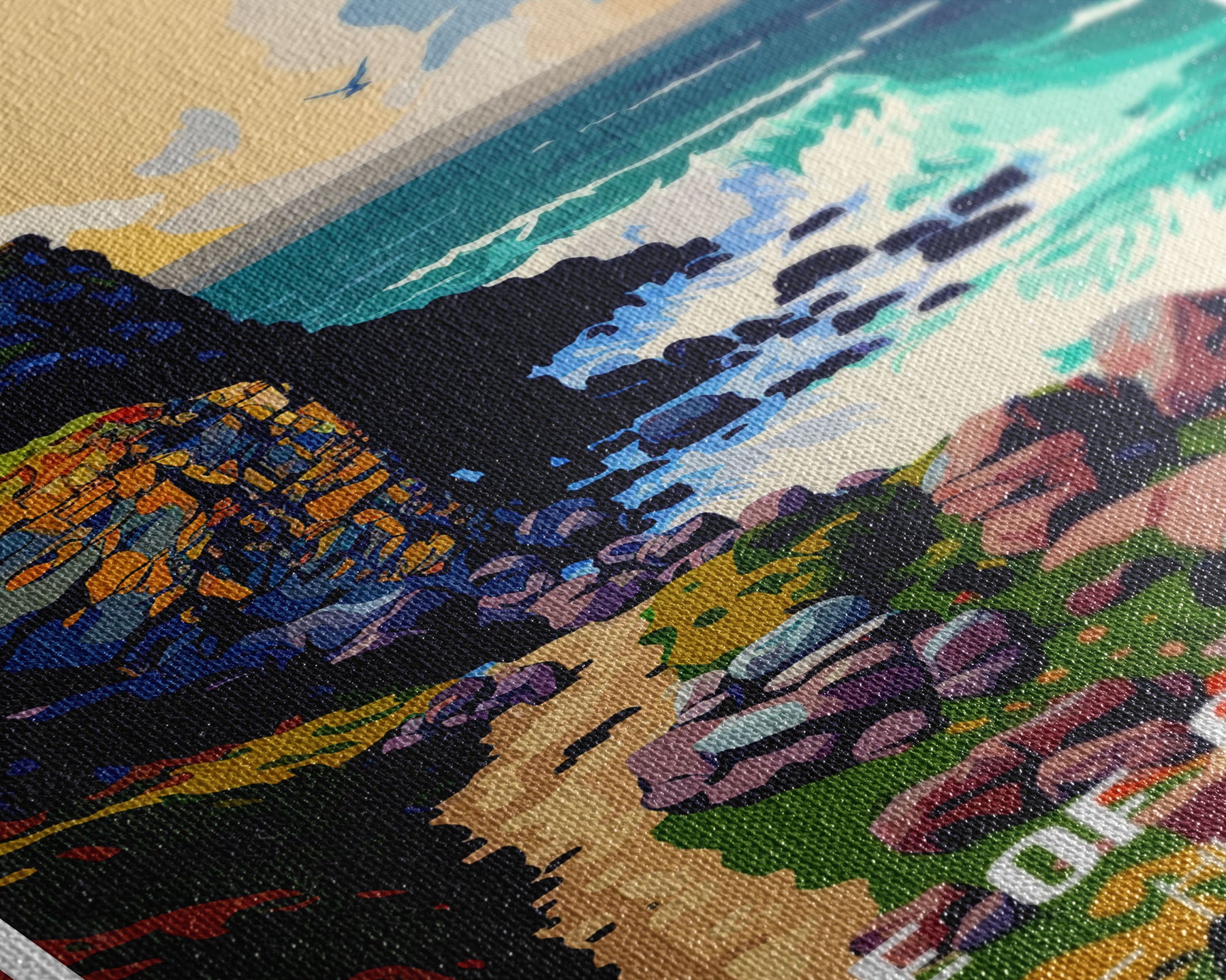Most of our canvases are made in the USA, with the exception of canvases ordered with the light oak unstained frames, and any large canvases (24x48, 30x60, 16x48 and 20x60) ordered WITH a frame. These are temporarily made in and shipped from Europe, while we try to find a more consistent supplier in the USA.