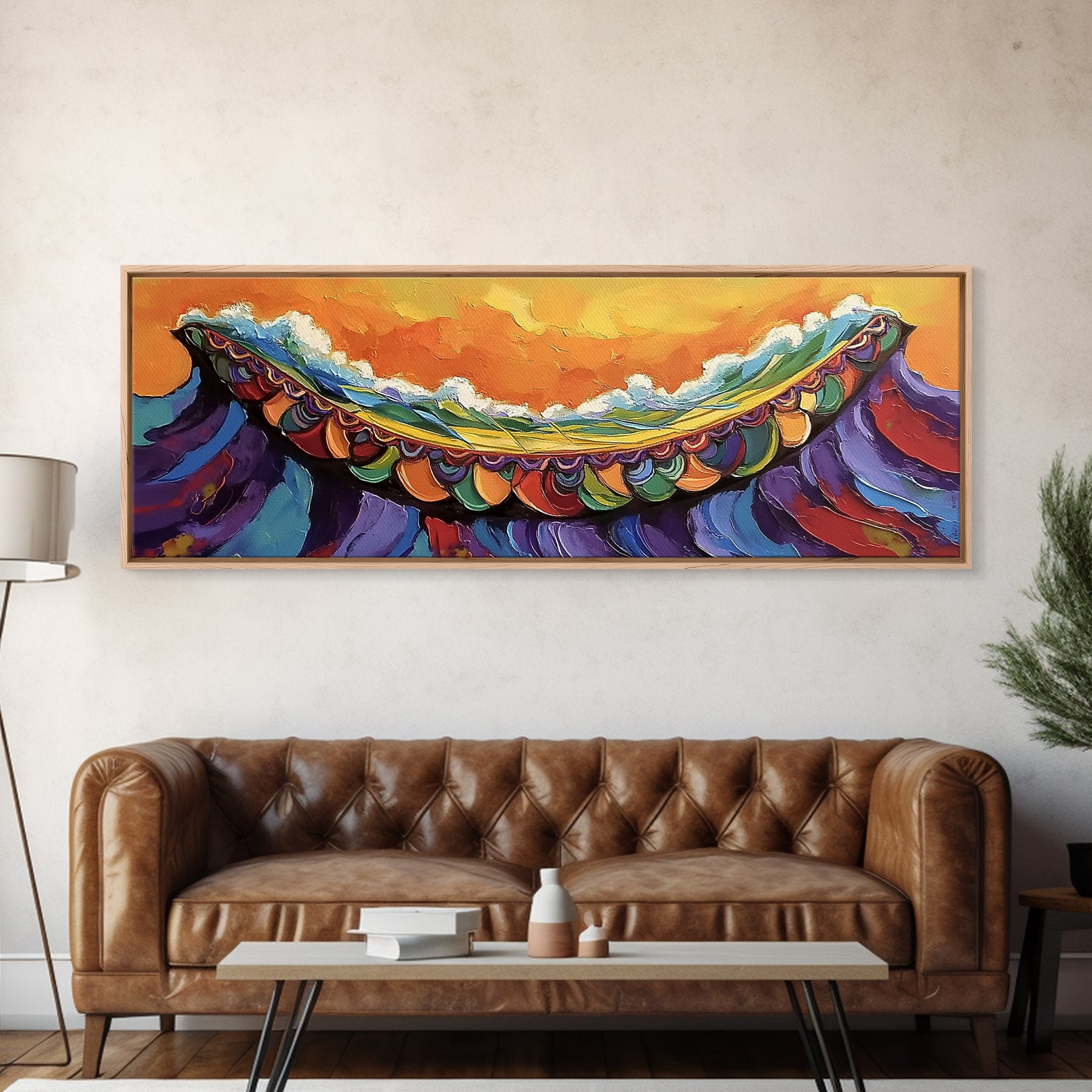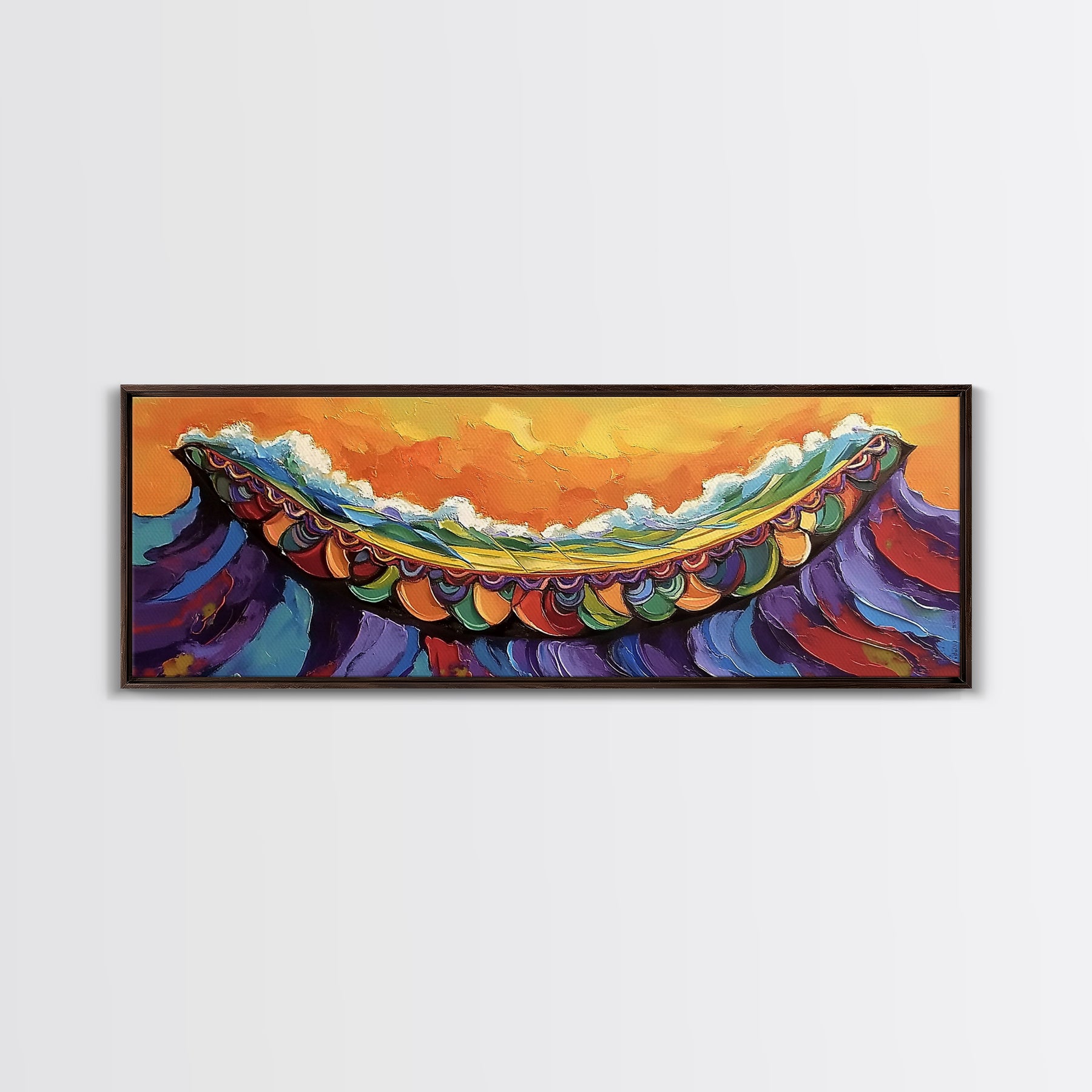 Carnival Wave, Festive Ocean, Playful Waters, Framed Canvas Print, beach bathroom art, coastal fun painting, surf wall decor