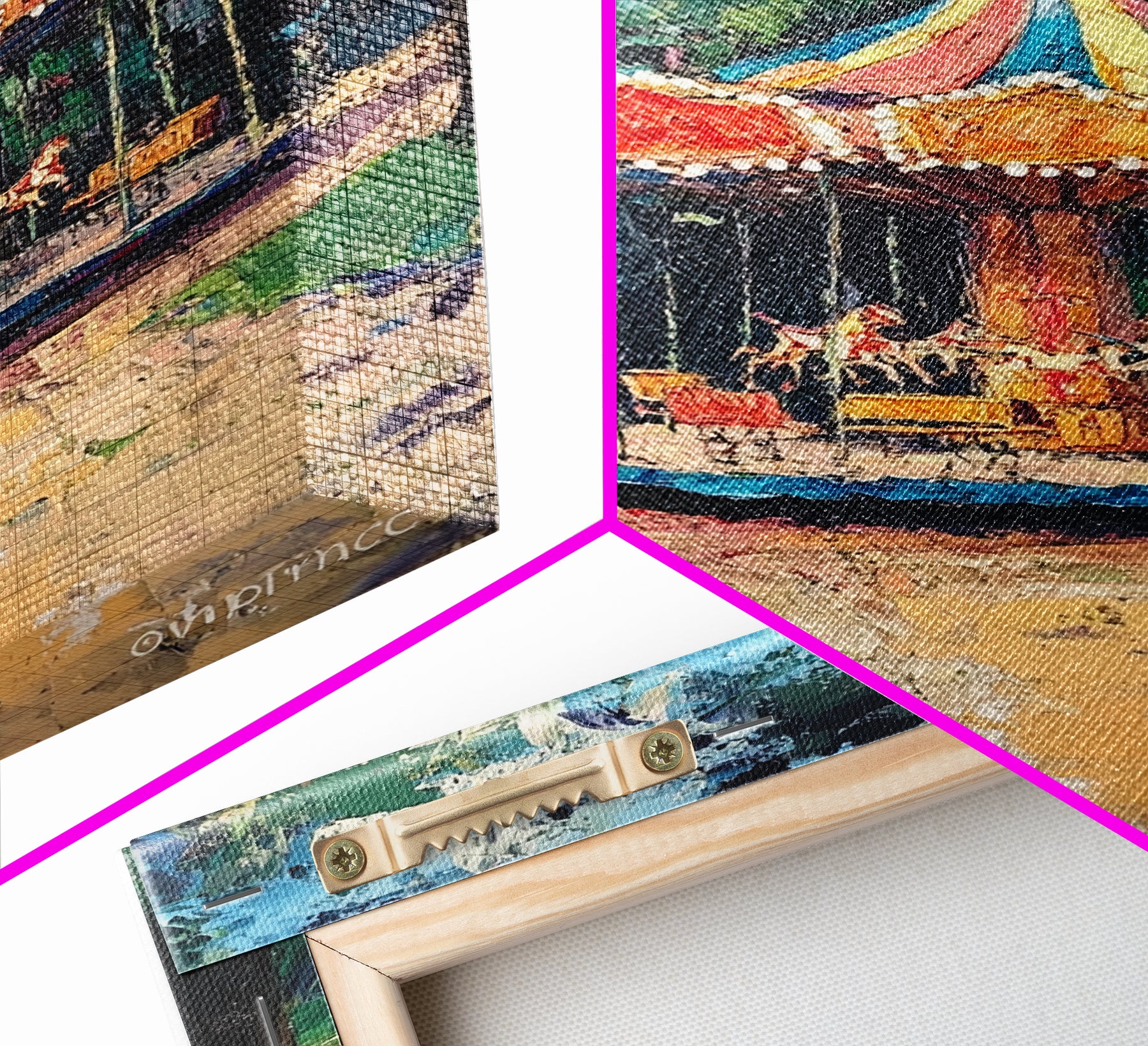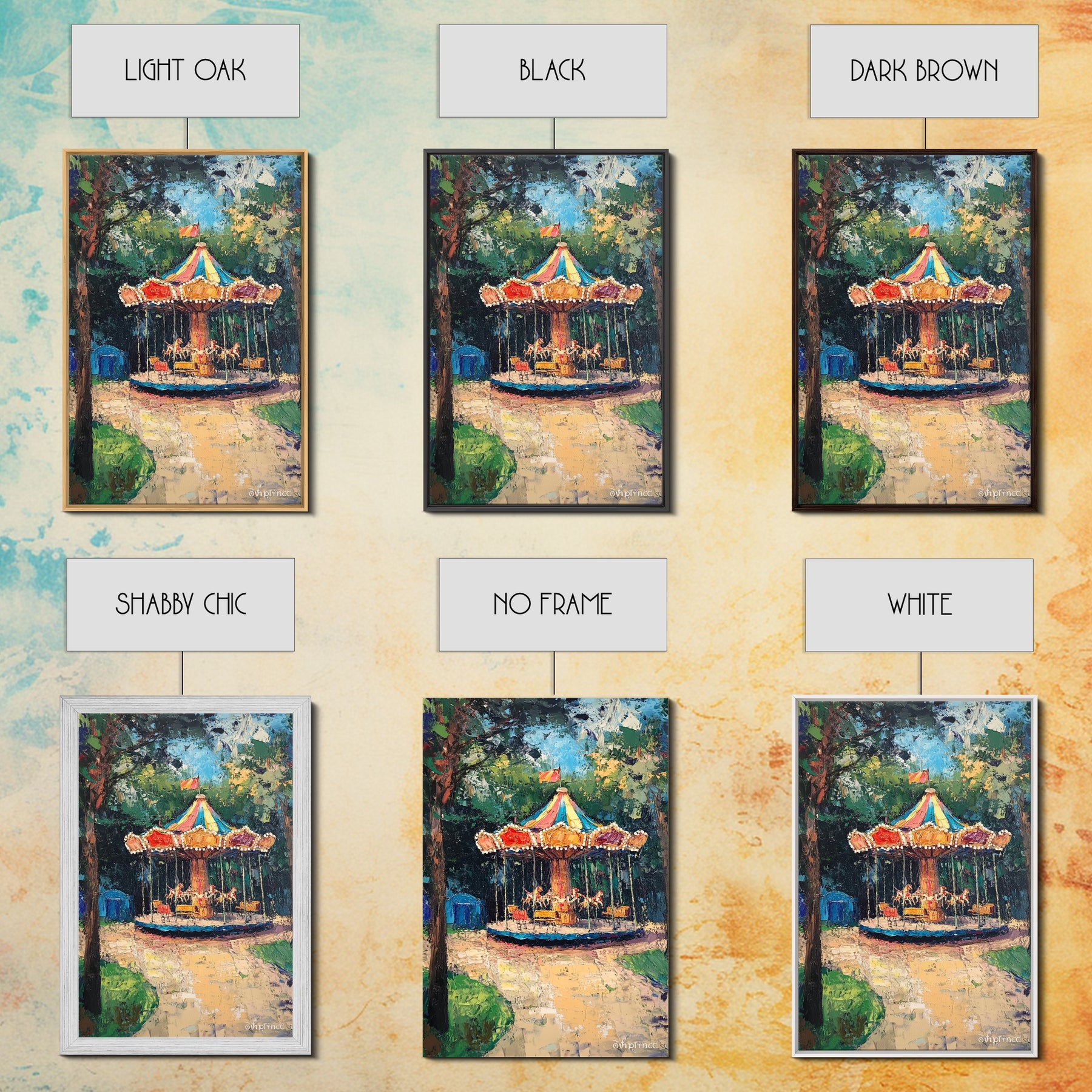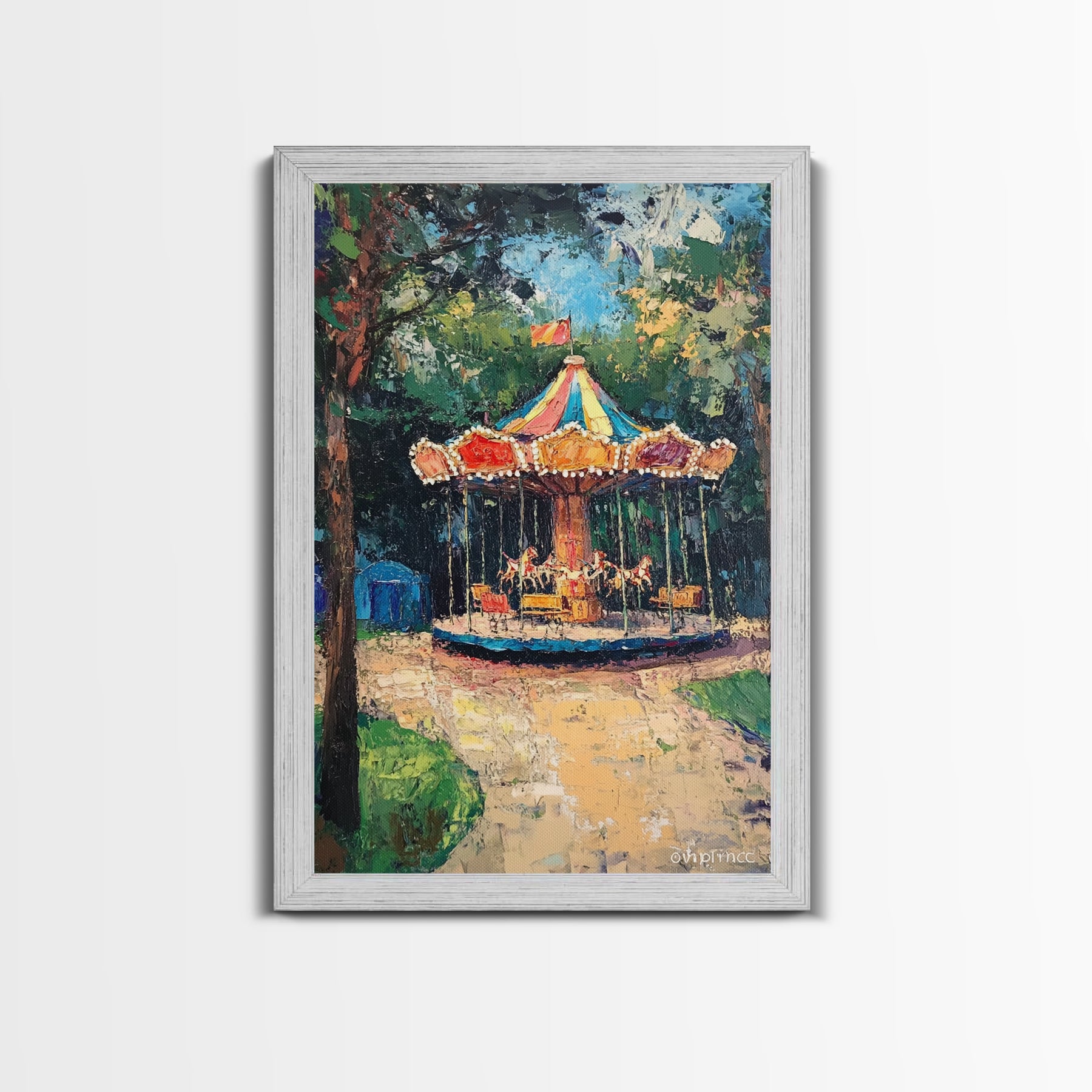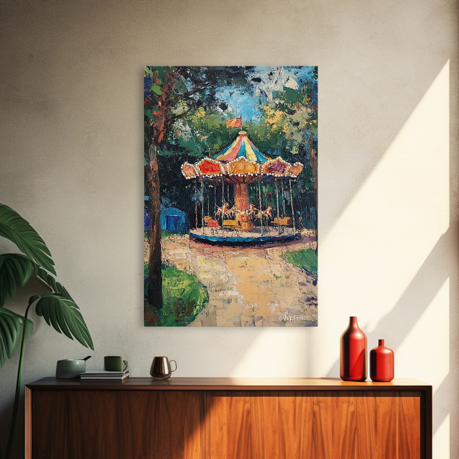 Carrousel Wall Art Framed Canvas Print, Oil Painting Carrousel, Circus Decor, Nursery Decor, Kid's Room Wall Art