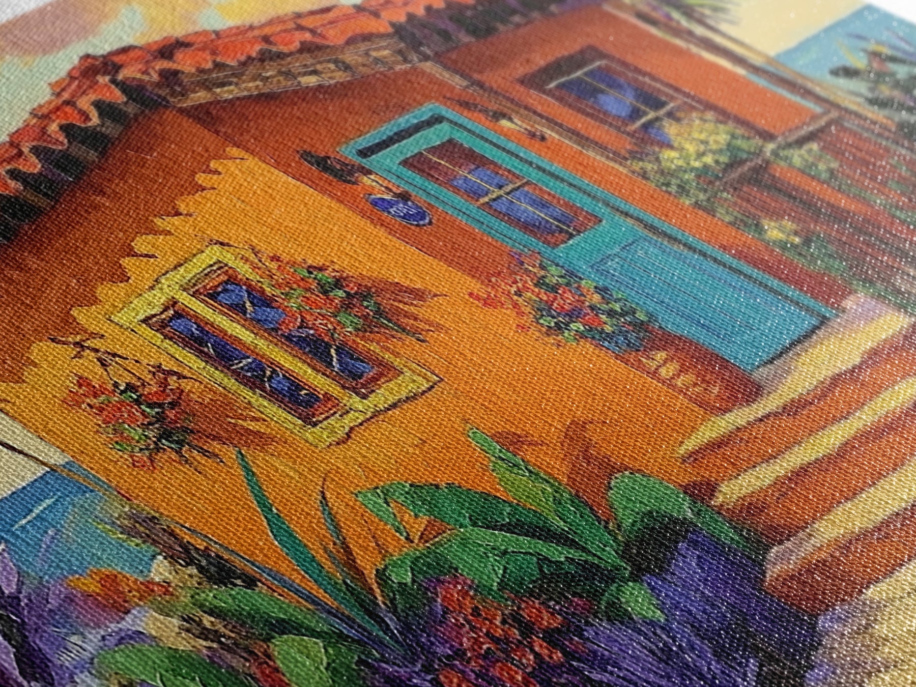 Most of our canvases are made in the USA, with the exception of canvases ordered with the light oak unstained frames, and any large canvases (24x48, 30x60, 16x48 and 20x60) ordered WITH a frame. These are temporarily made in and shipped from Europe, while we try to find a more consistent supplier in the USA.