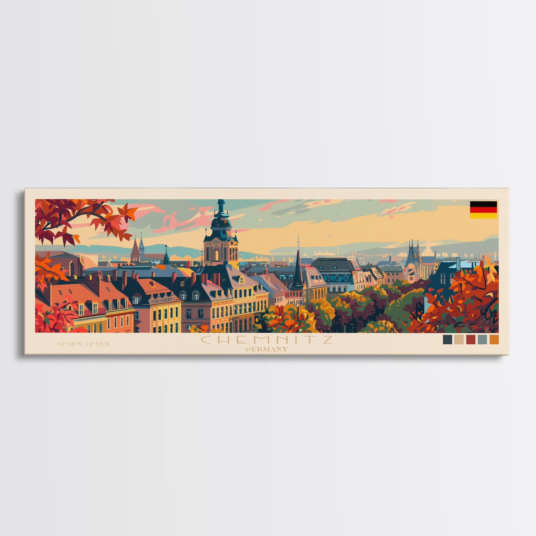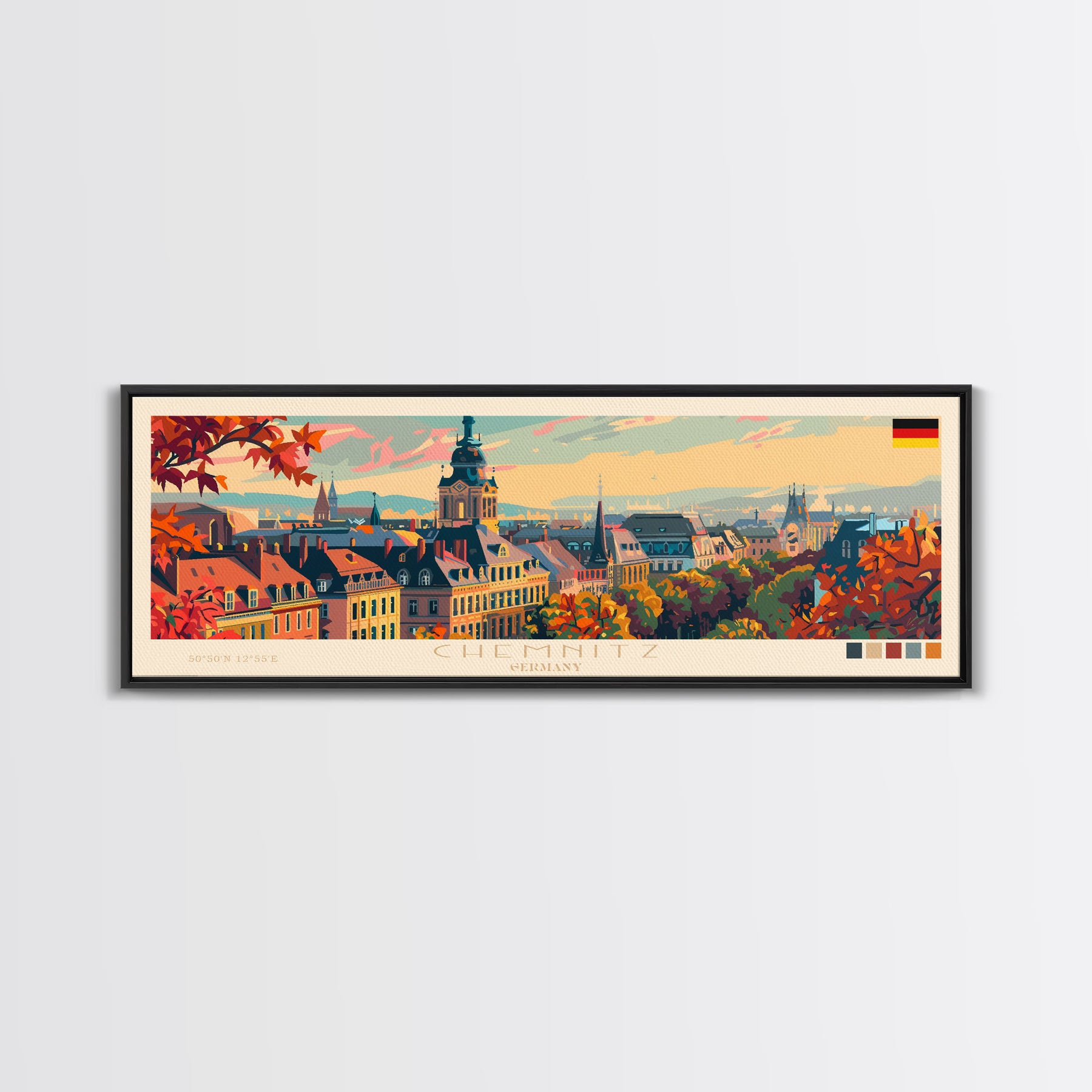 Chemnitz Germany Wall Art, Panoramic Travel Poster, Panoramic Framed Canvas Print, City Wall Art, Wall Hanging Home Decor, Travel Art