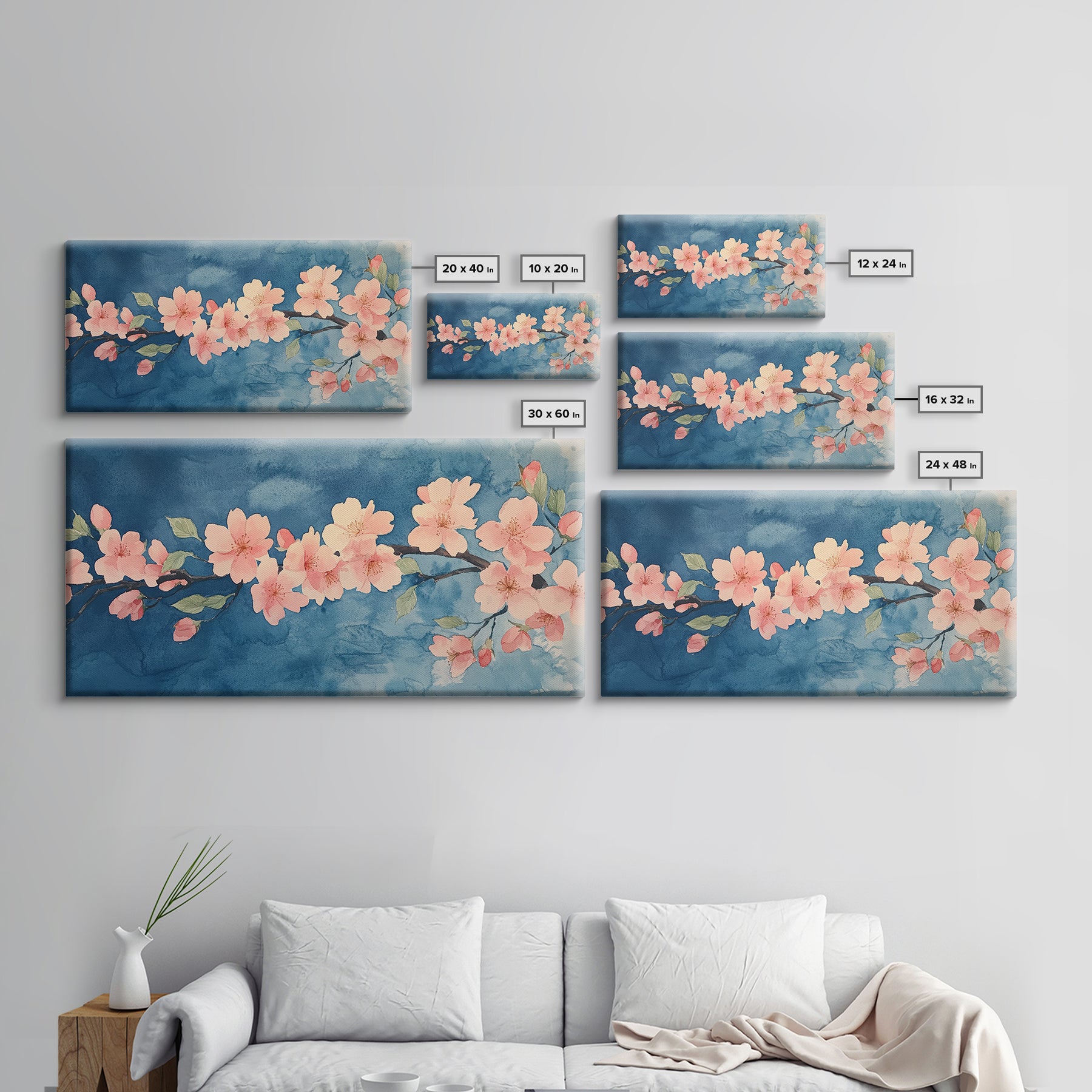 Cherry Blossoms Wall Art Canvas Print  - Pink Cherry Blossom Canvas Oil Painting - Wabi Sabi Wall Art - Purple Tree Nature Decor