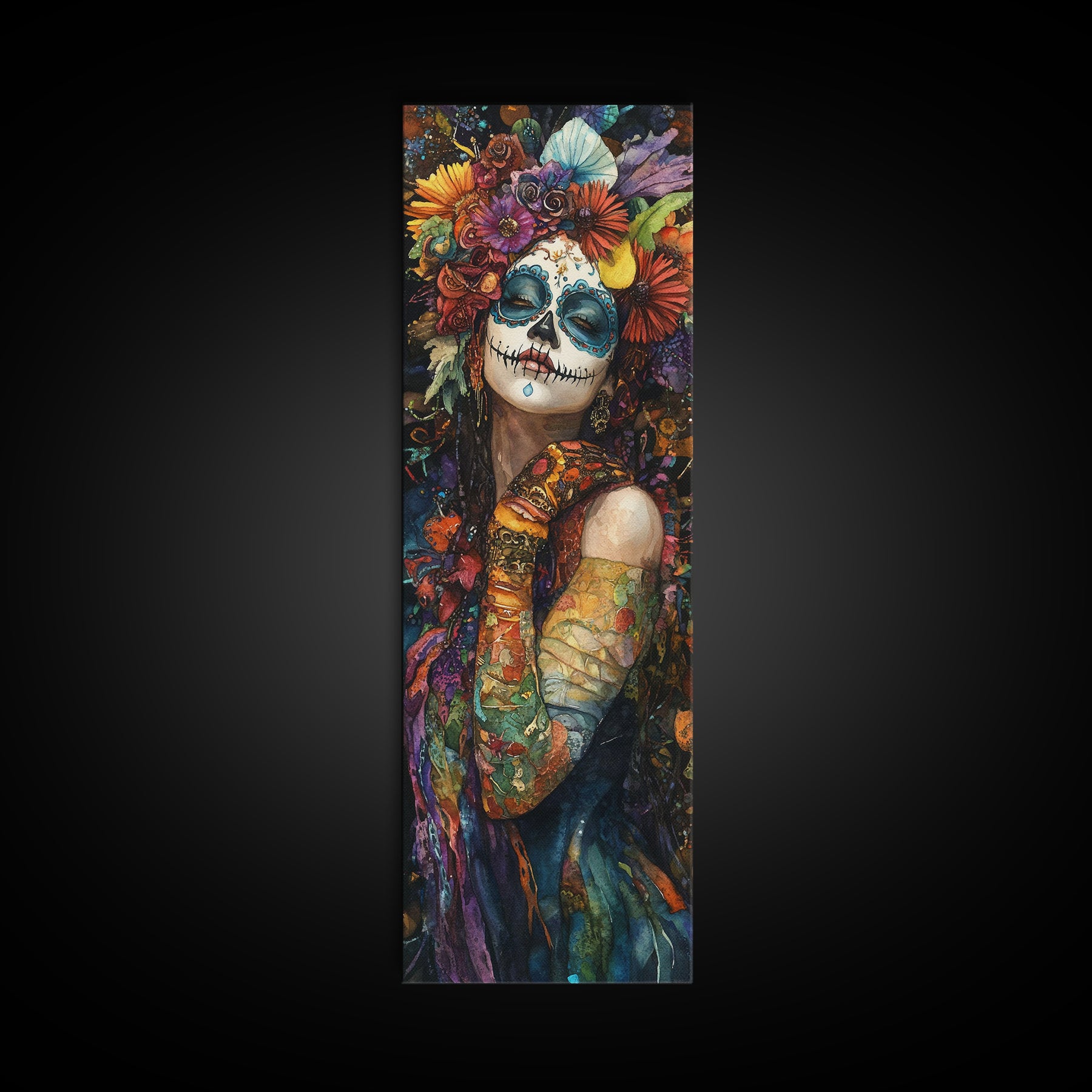 Chicano Art, Day Of The Dead Wall Art Print, Canvas Print, Mexicano Wall Art, Tall Skinny Narrow Wall Art, Mexican Art