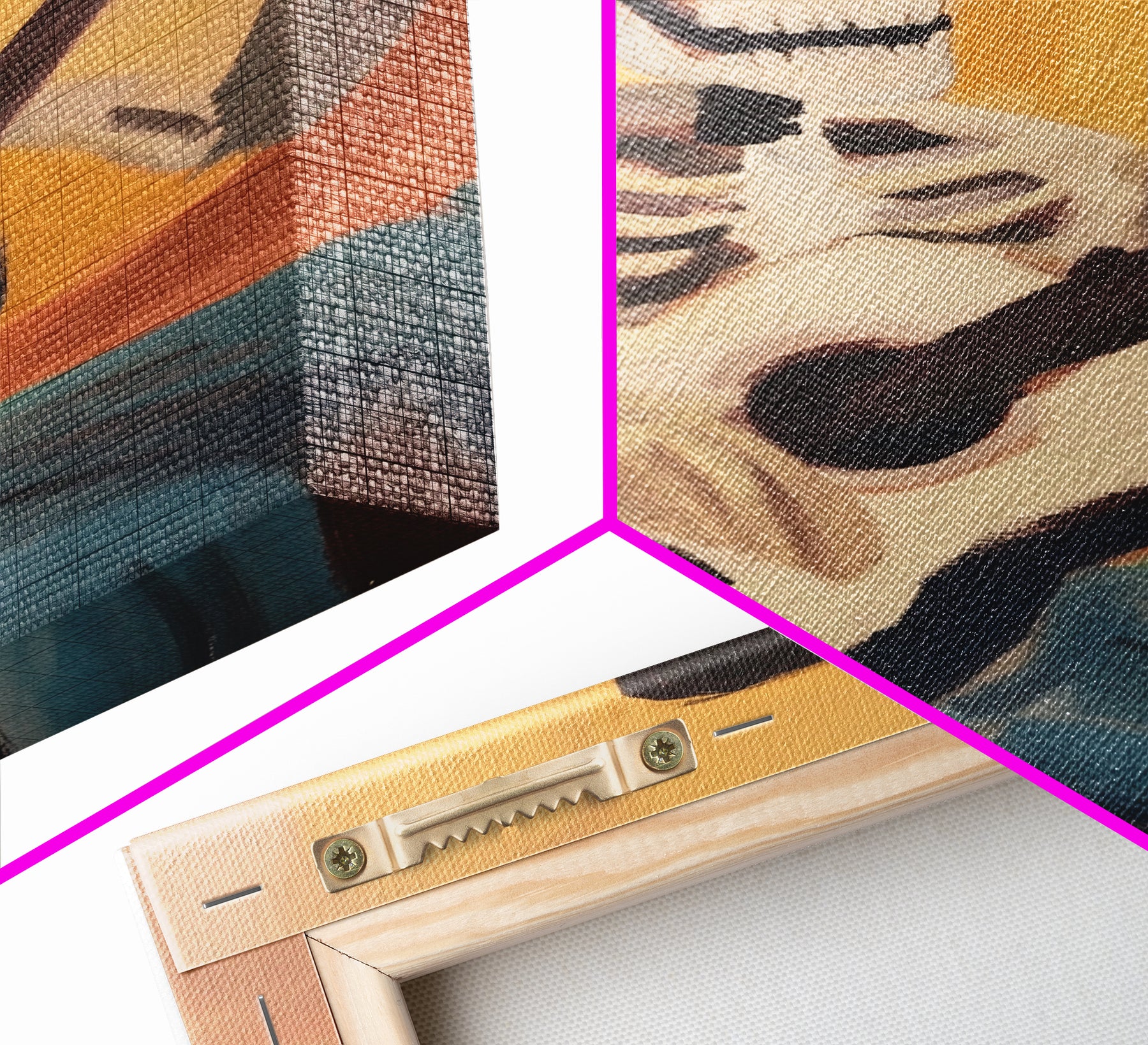 Hello and thank you for taking the time to view our modern high quality giclée artwork! We offer both posters and stretched canvas prints. Our posters are printed on Ultra Matte 60 lb / 230 GSM high quality photo paper, with a thickness of 10 mil. Our canvases are printed on museum grade 350 GSM canvas material with ECO friendly archival grade ink, then hand stretched and stapled over premium, FSC certified and shrink resistant frames. Designed and built to last a lifetime.