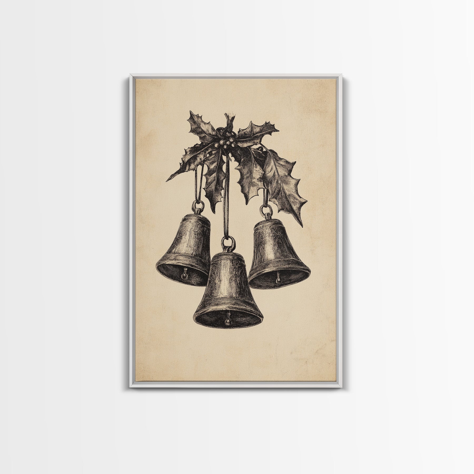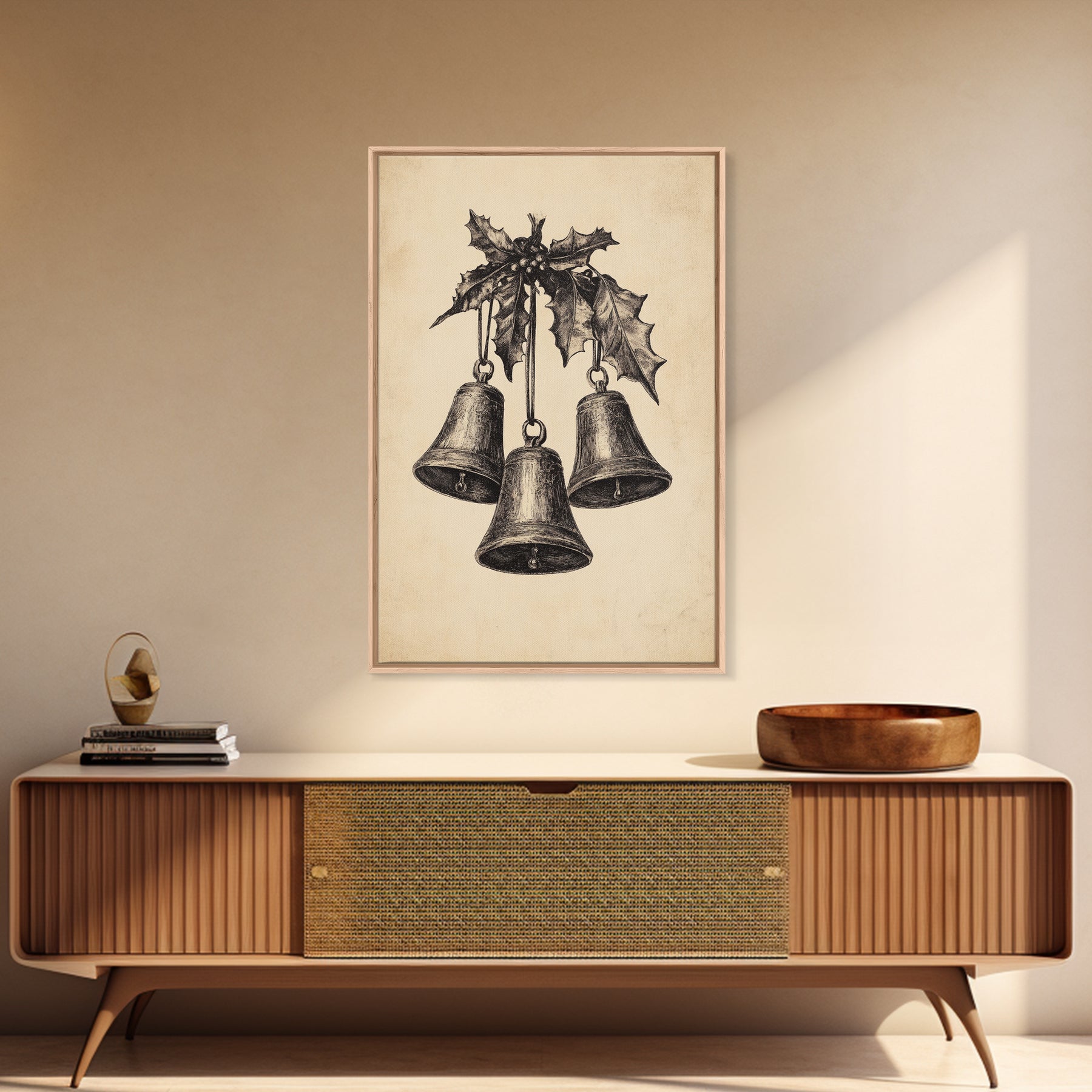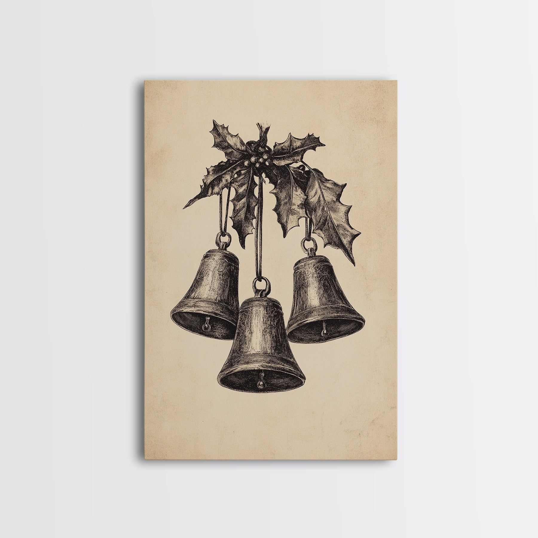 Christmas Bells Canvas Print - Framed Canvas - Minimalist Christmas Art - Boho Christmas Art - Rustic Christmas Art